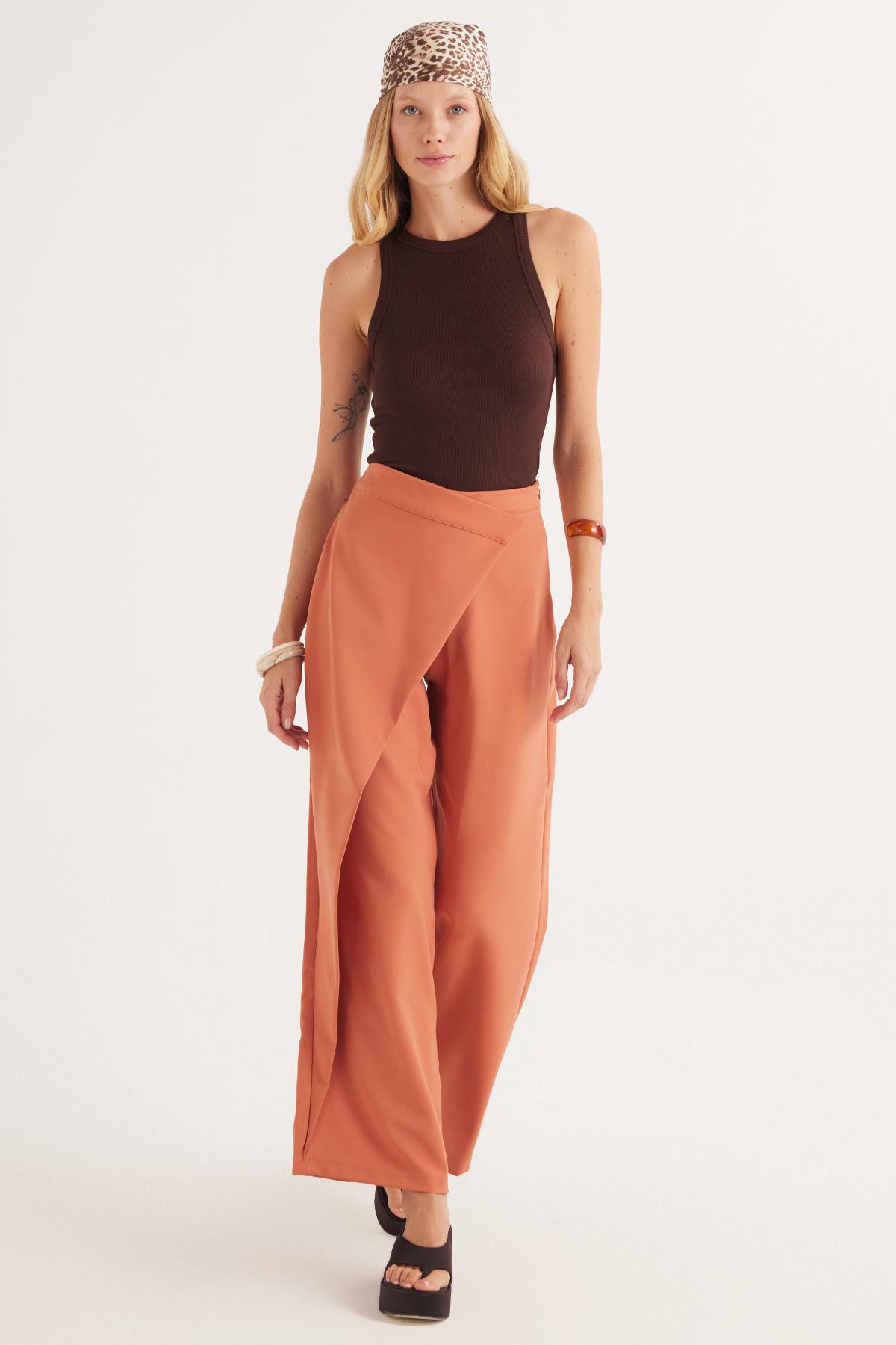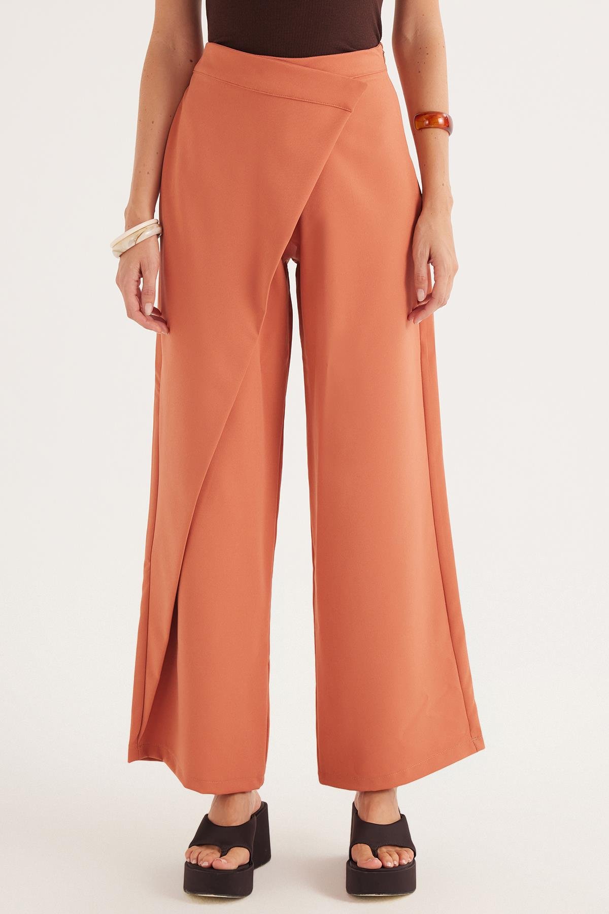 Kadın Standart Fit Geniş Paça Kiremit Double Pantolon