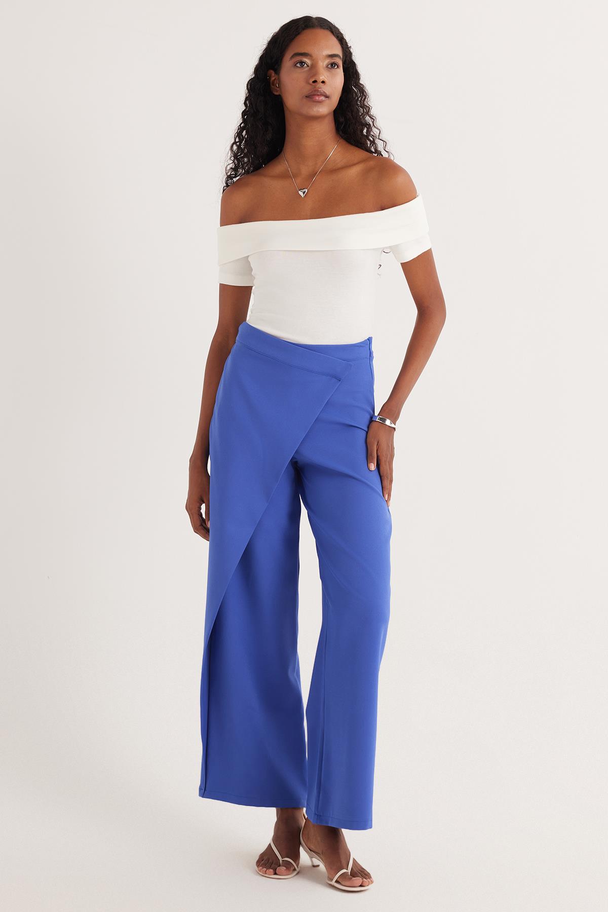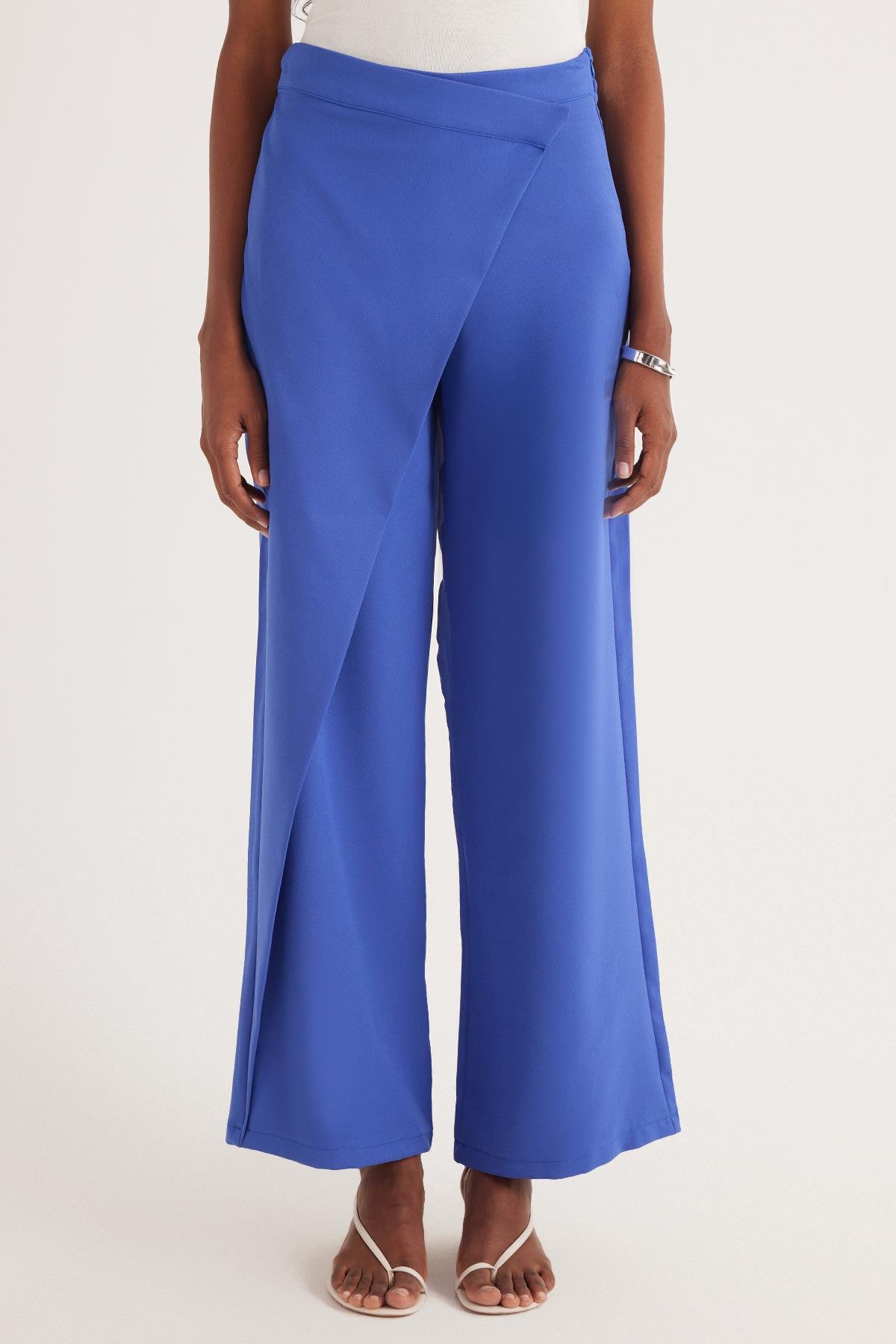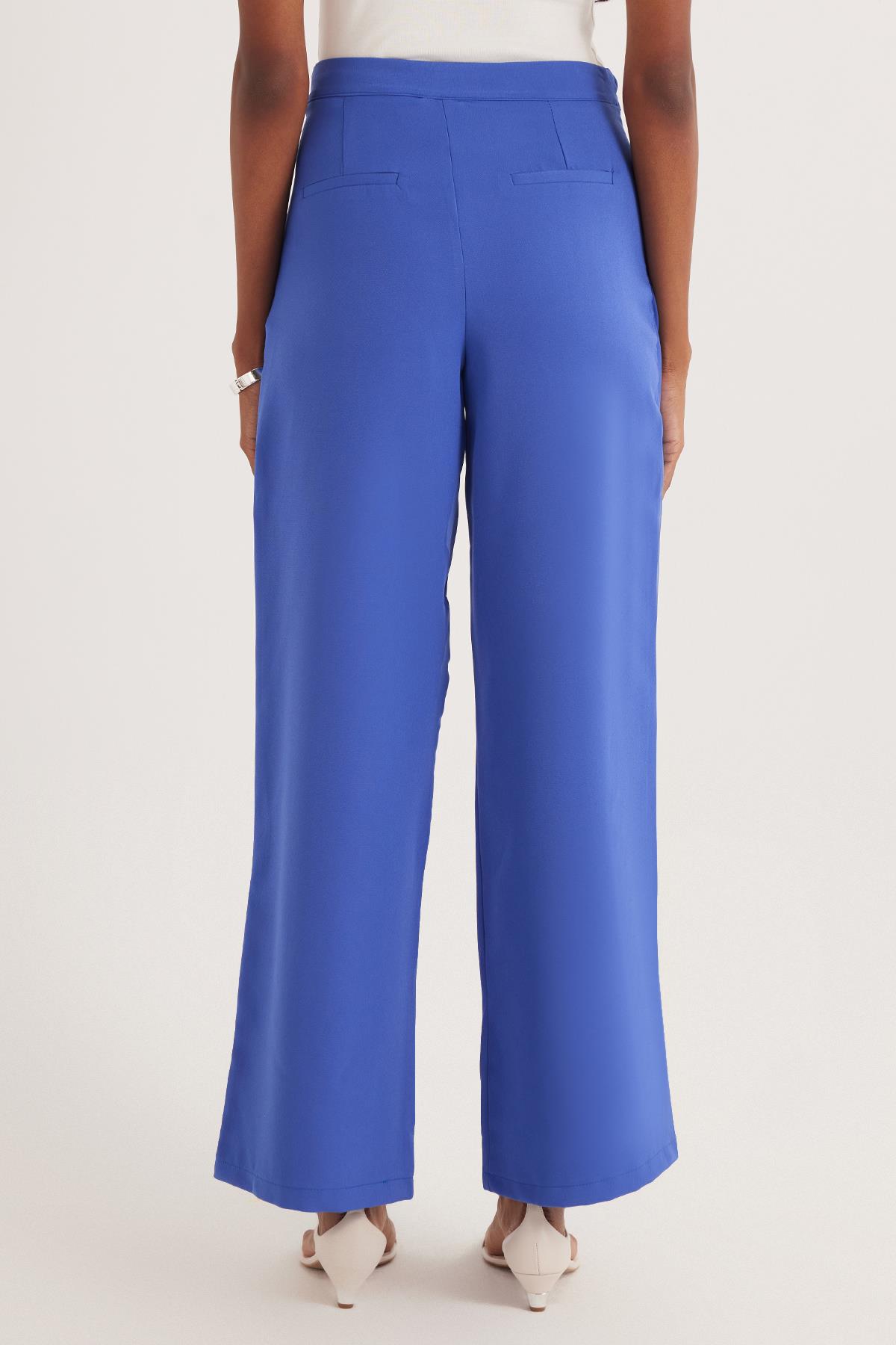 Kadın Standart Fit Geniş Paça Mavi Double Pantolon (PN250020-22)