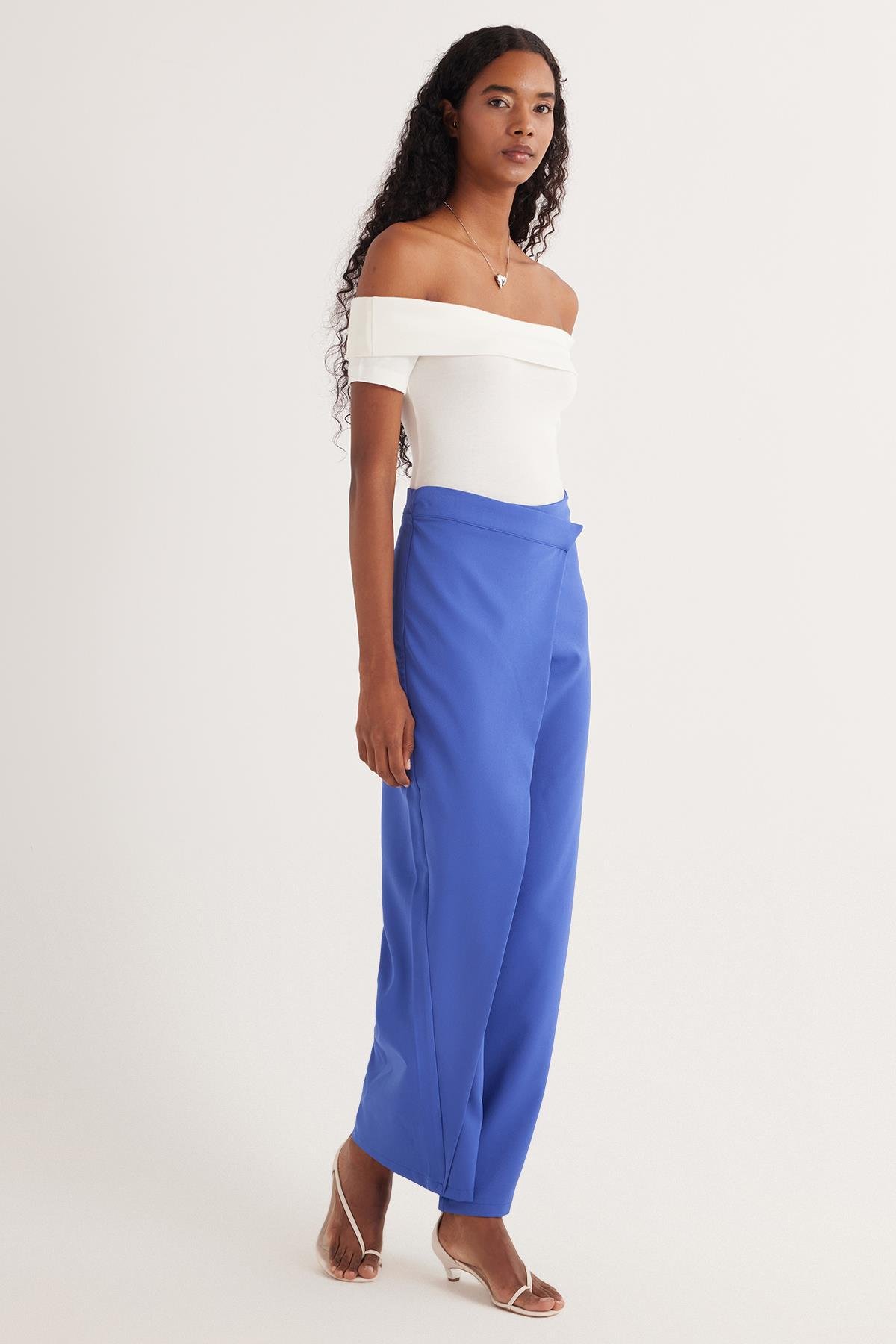 Kadın Standart Fit Geniş Paça Mavi Double Pantolon