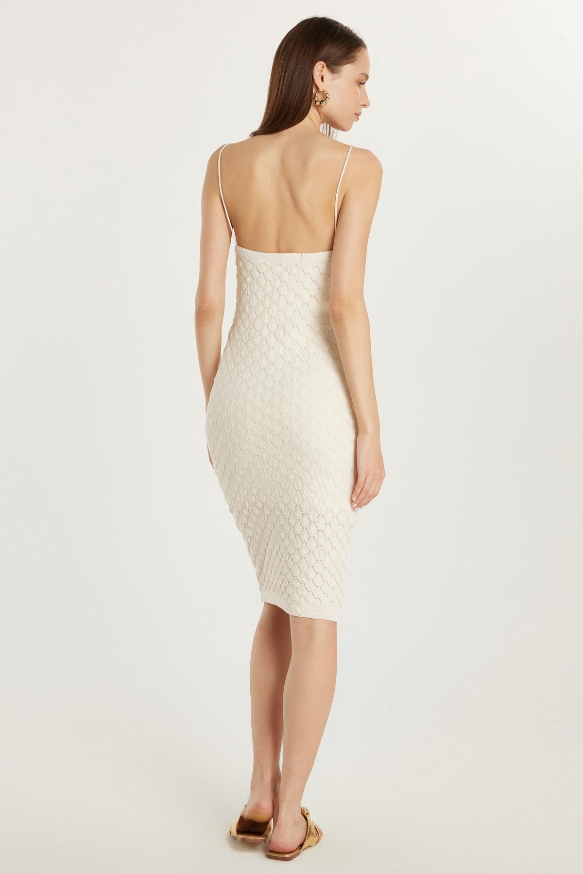 Kadın Standart Fit İnce Askılı Desenli U Yaka Ekru Elbise