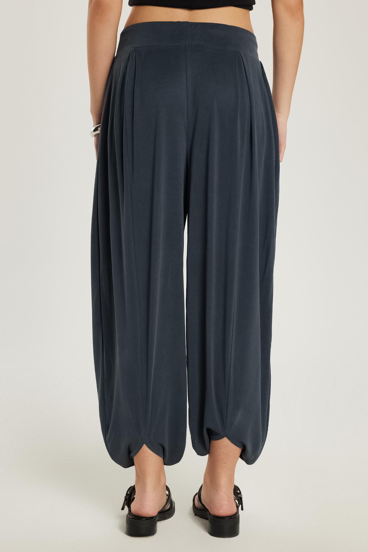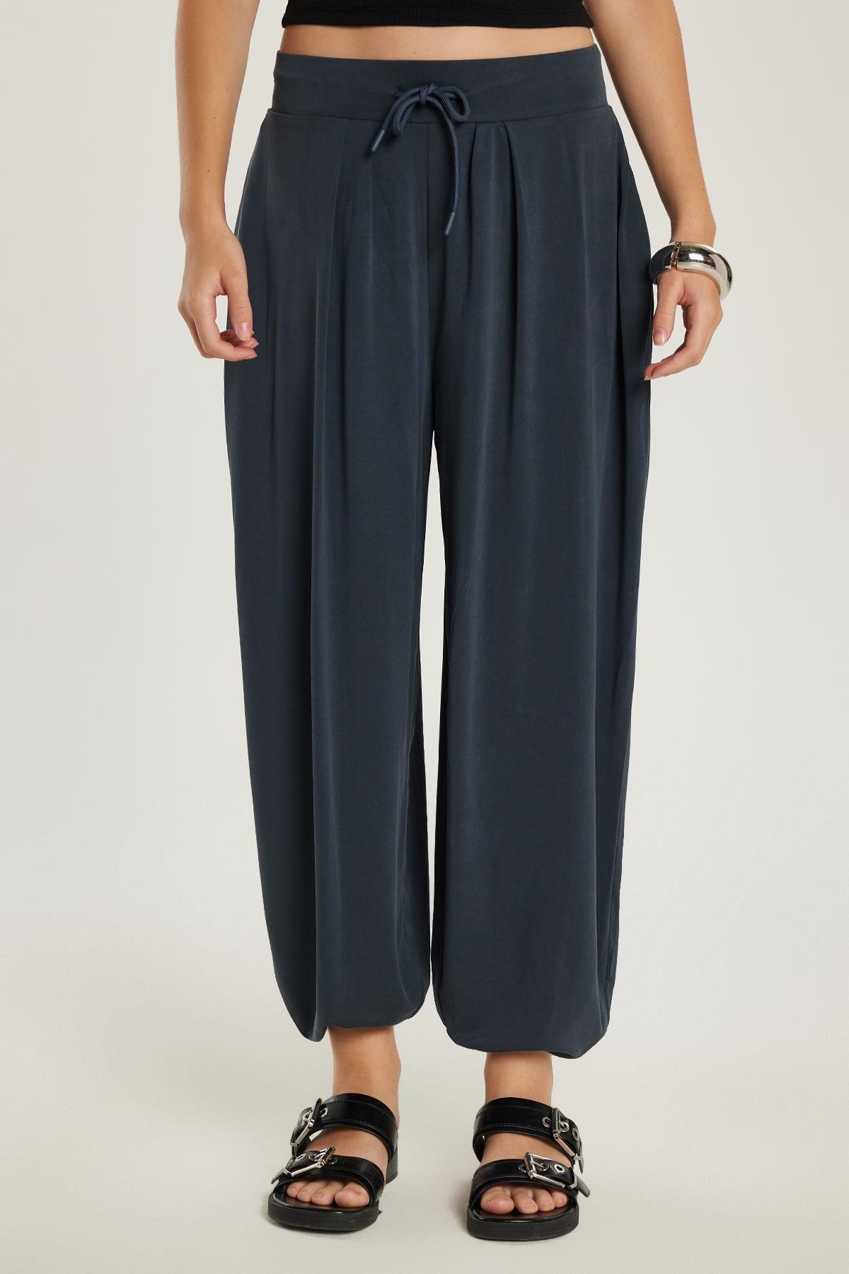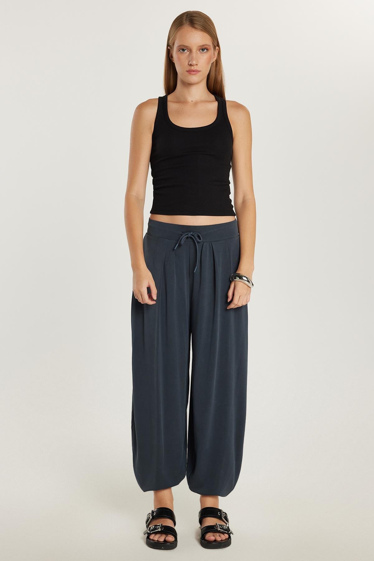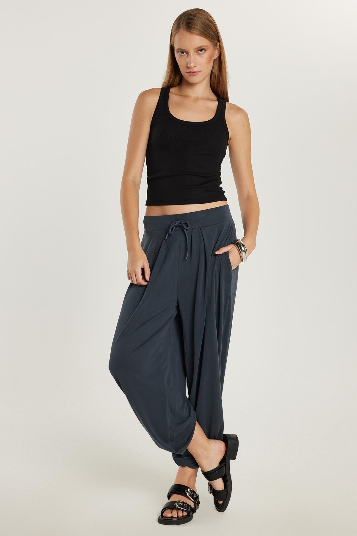 Kadın Standart Fit Modal Kumaş Cepli Beli Bağcıklı Antrasit Balon Pantolon