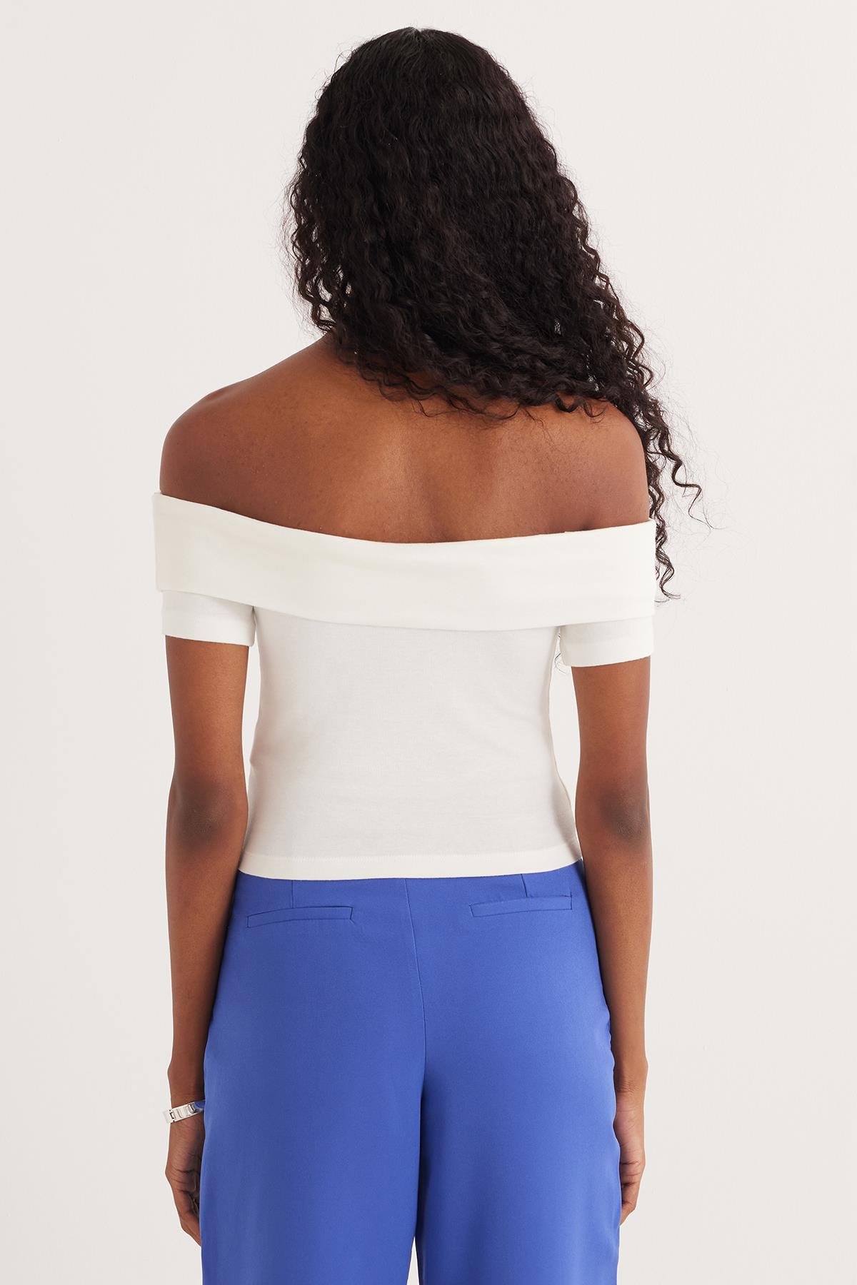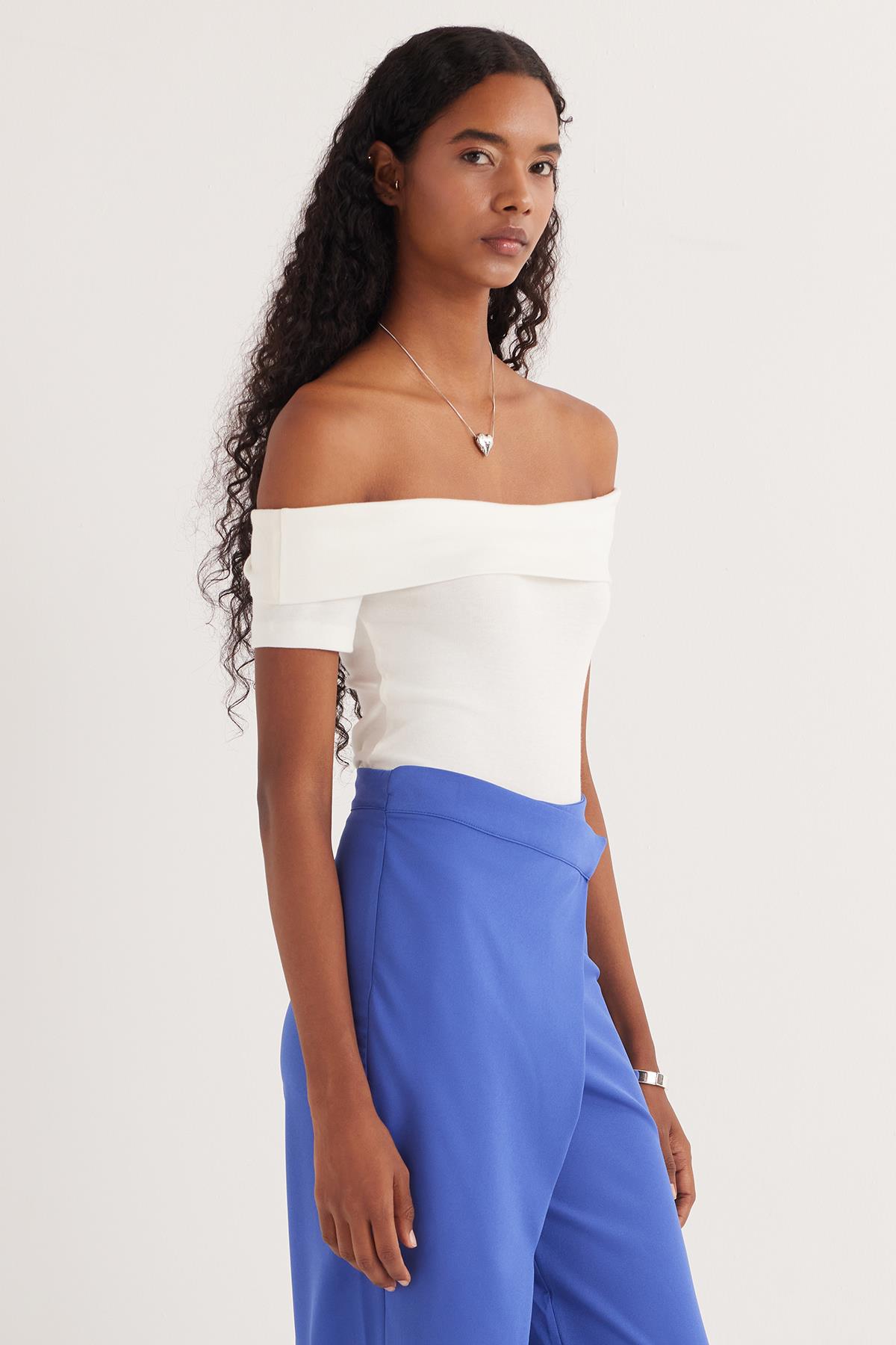 Kadın Standart Fit Normal Kesim Beyaz Straplez Bluz  (KDN25064-84)