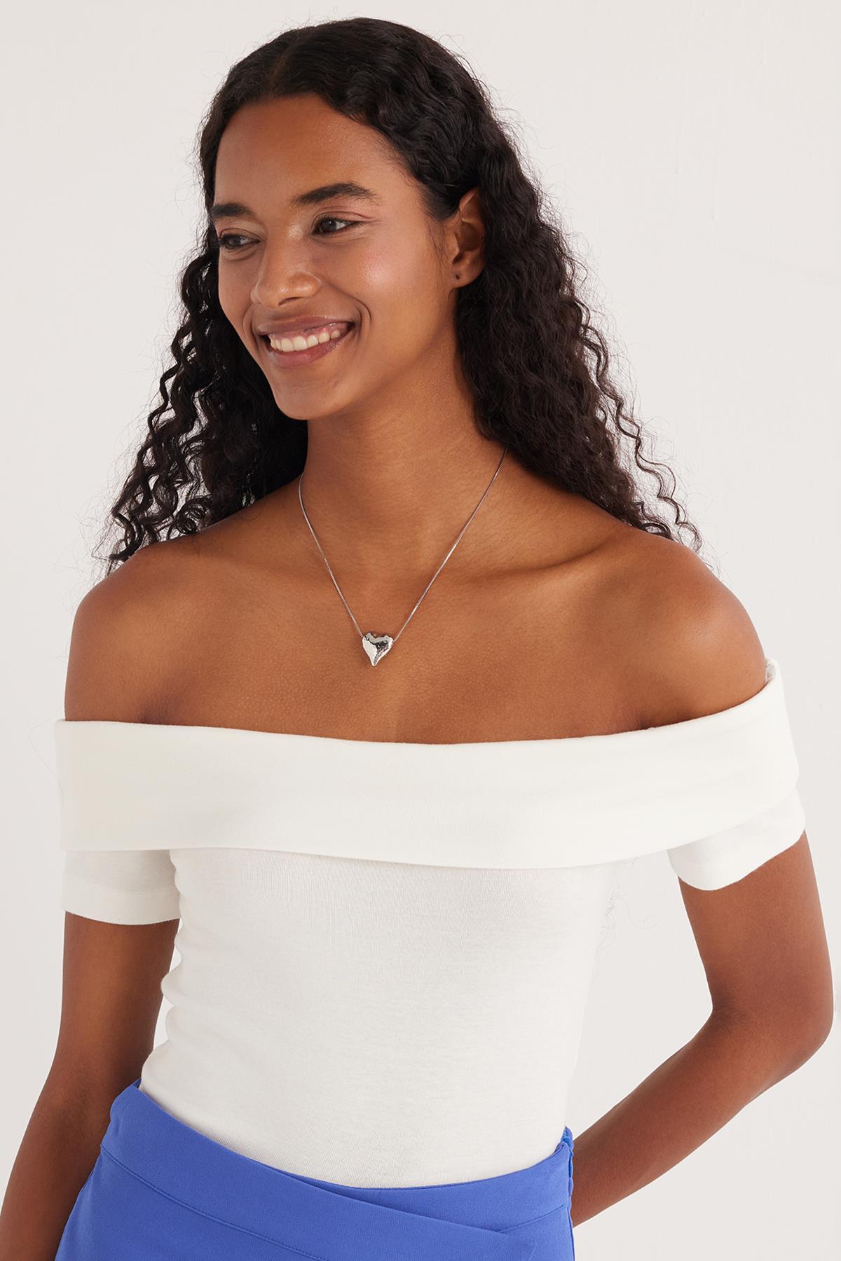 Kadın Standart Fit Normal Kesim Beyaz Straplez Bluz