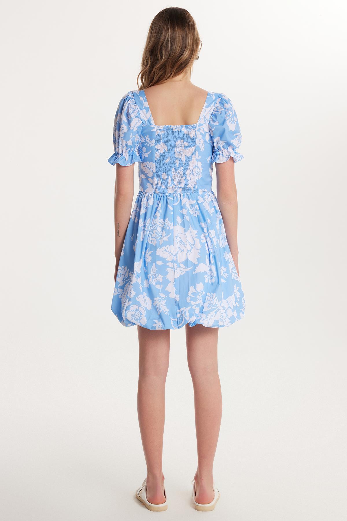 Kadın Standart Fit Pamuklu Kısa Kollu Lastikli Beli Büzgülü Bağlama Detaylı U Yaka Elbise (ELB25040-9000)