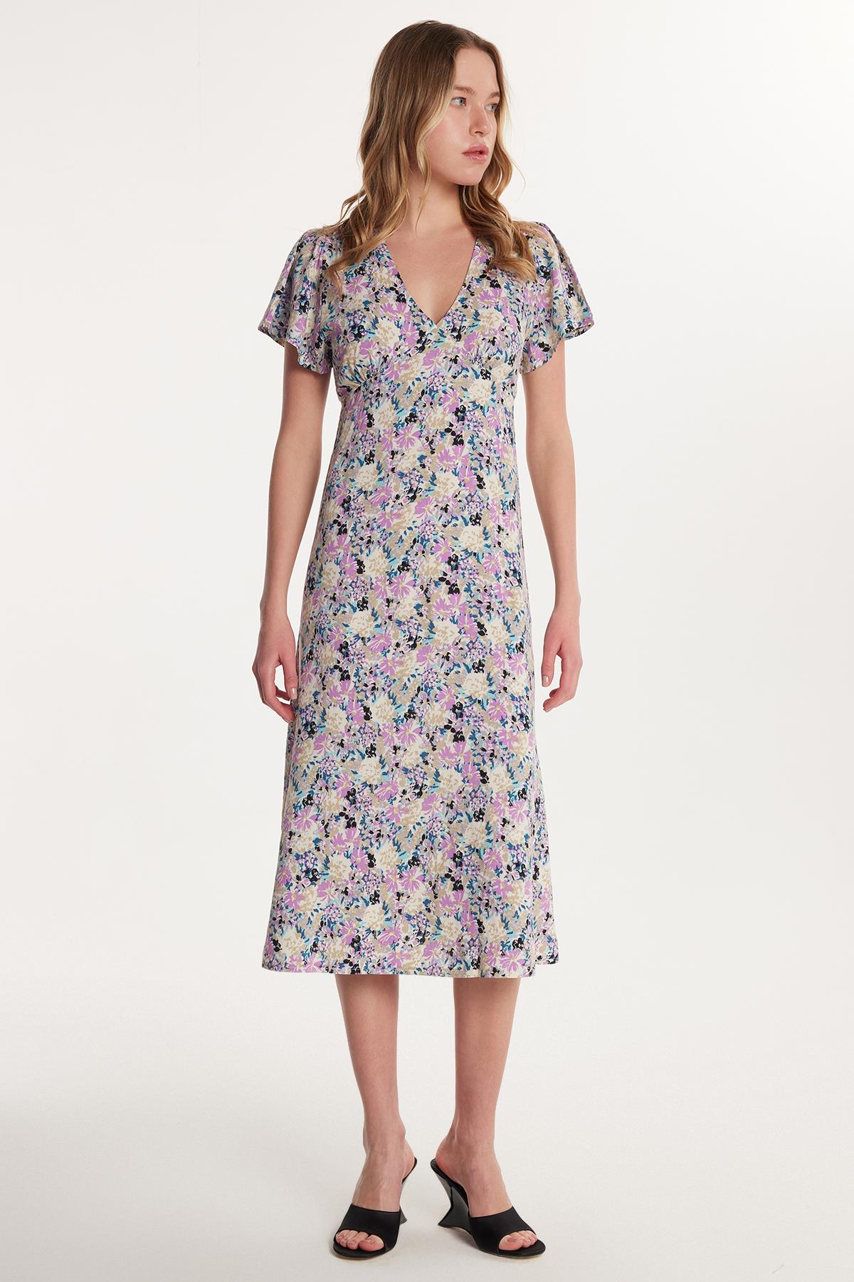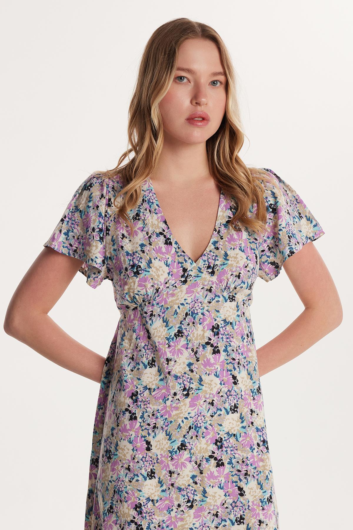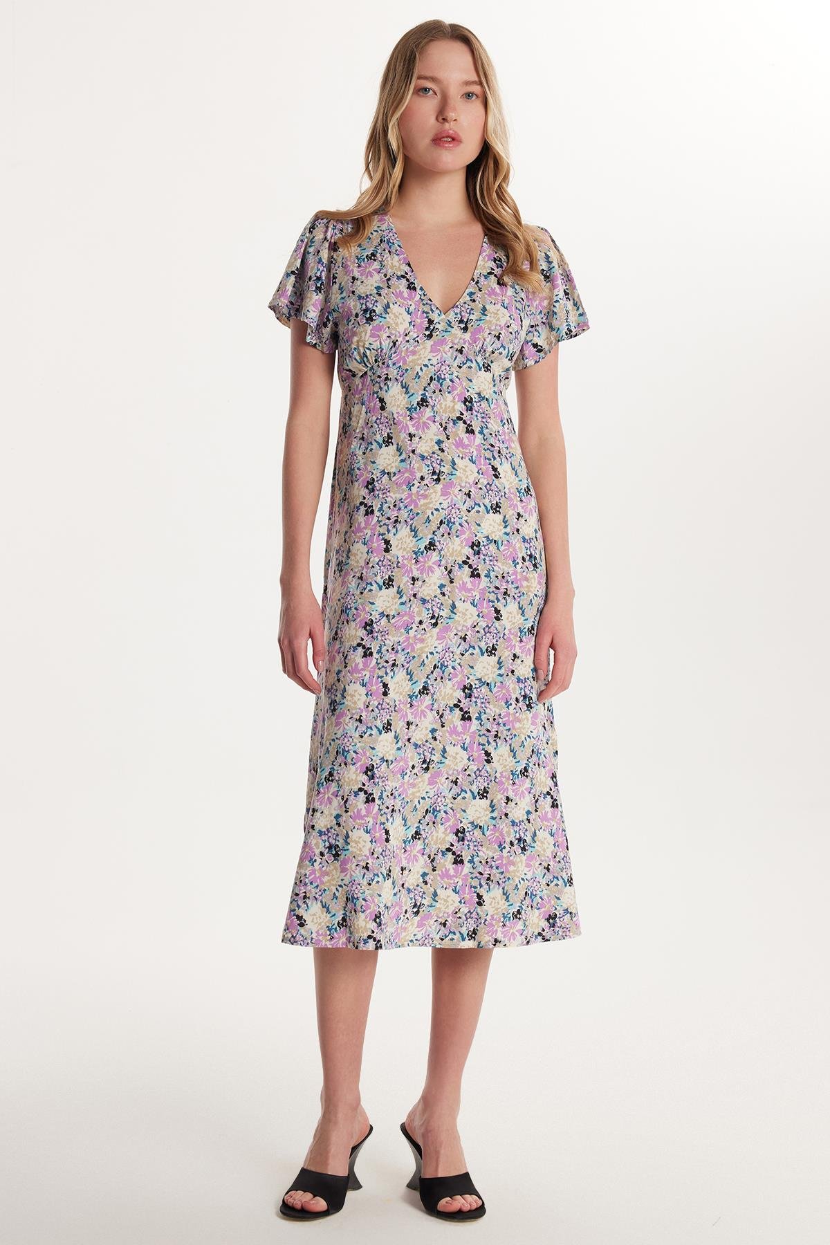 Kadın Standart Fit Viskon V Yaka Midi Elbise