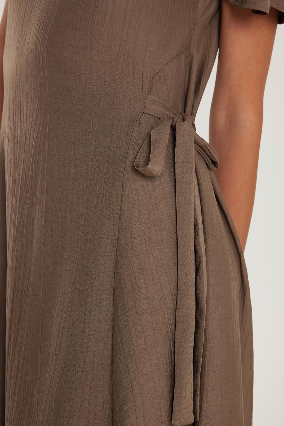 Kadın Standart Fit Yandan Fiyonk Bağlama Detaylı Kısa Kollu Bisiklet Yaka Füme Midi Boy Elbise