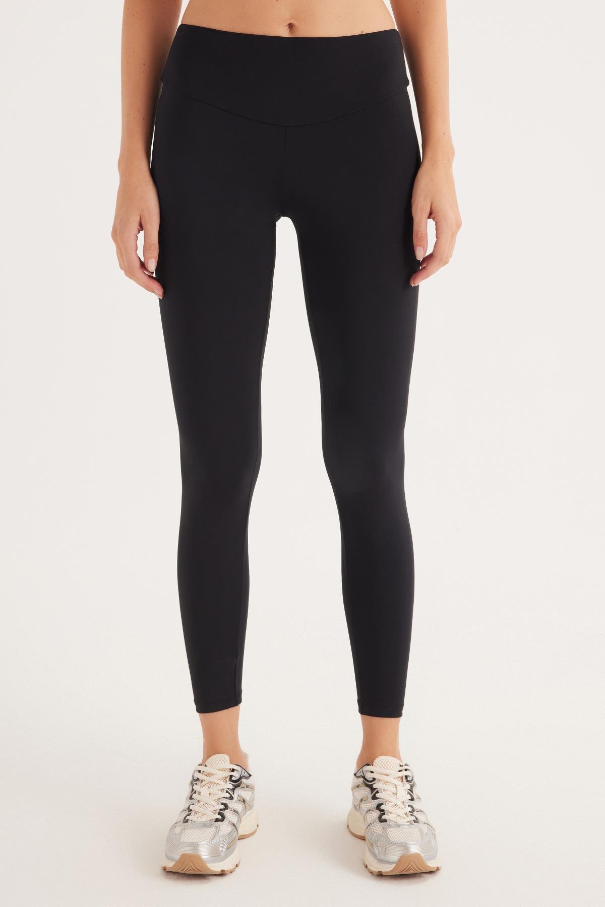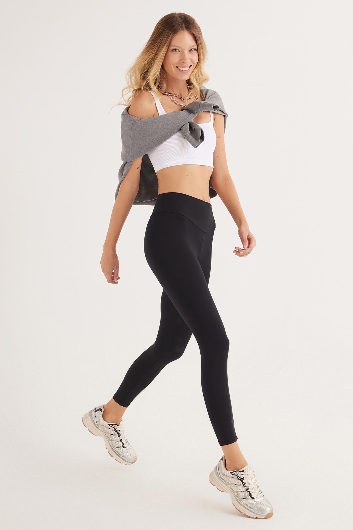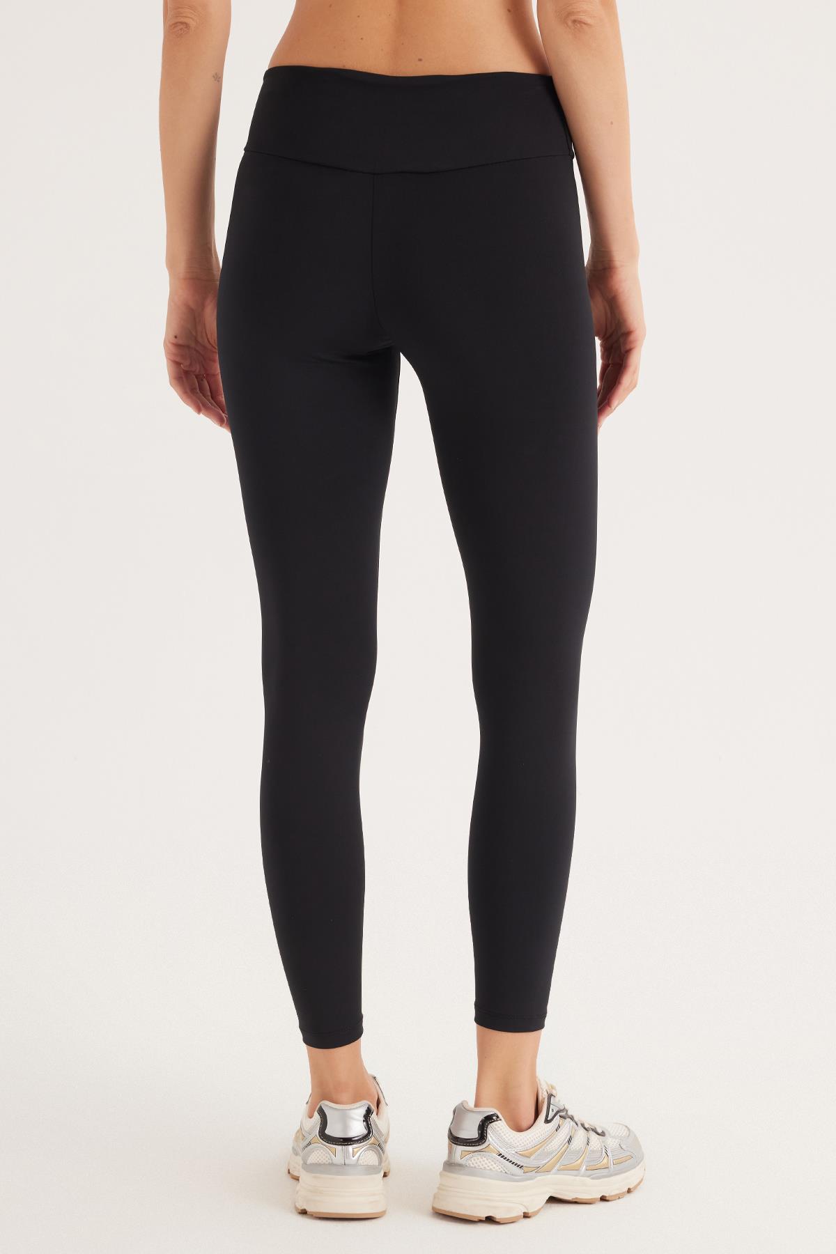 Kadın Süper Slim Beli Lastikli İnterlok Standart Boy Normal Siyah Tayt (KDN25029-2)