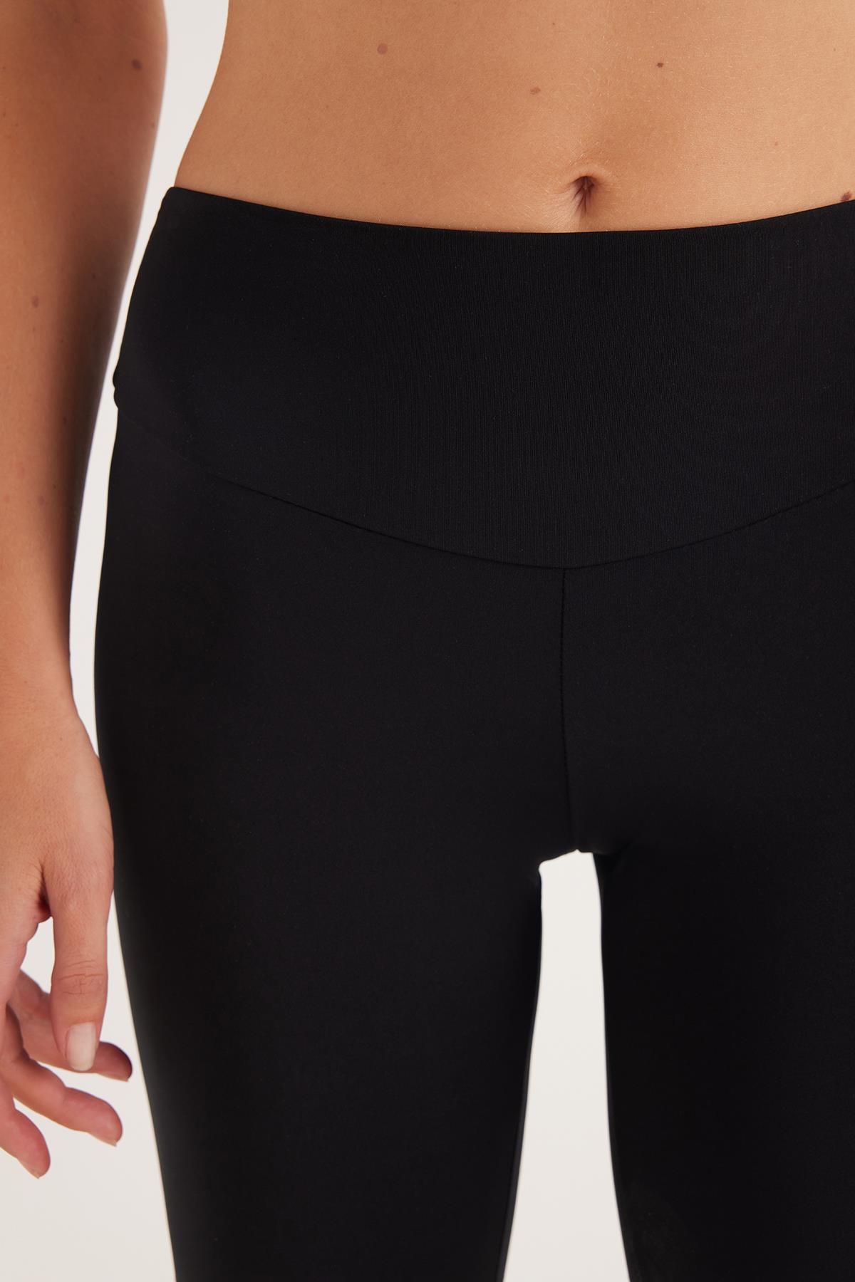 Kadın Süper Slim Beli Lastikli İnterlok Standart Boy Normal Siyah Tayt