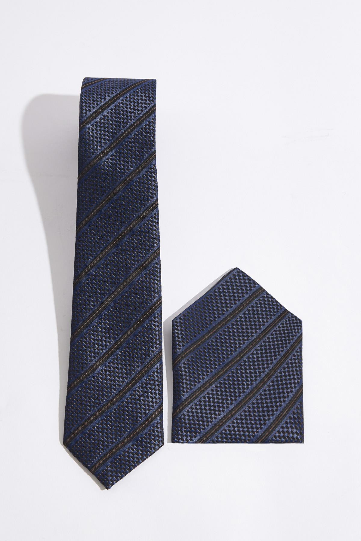 Desenli Klasik Cep Mendilli Erkek Kravat