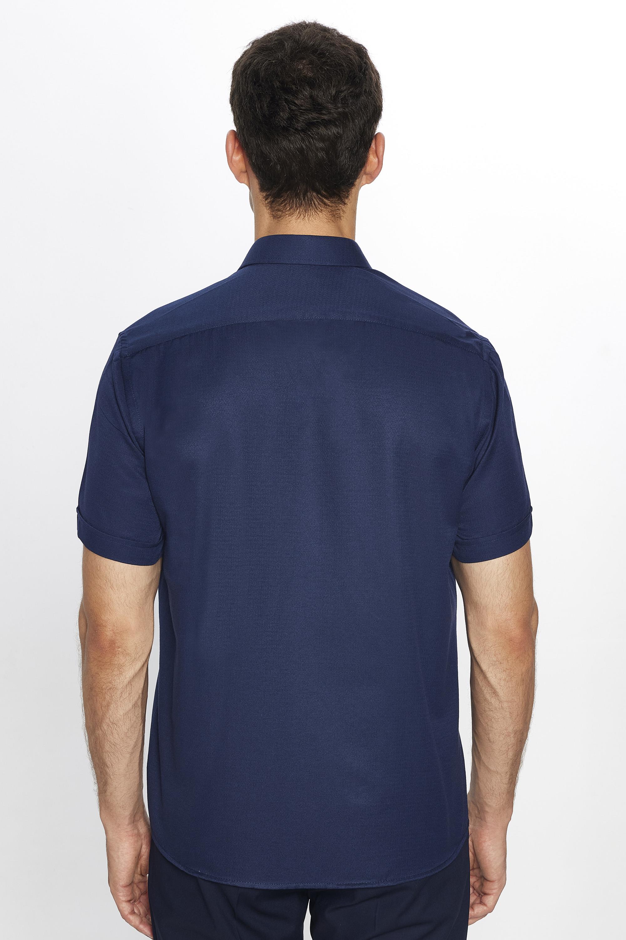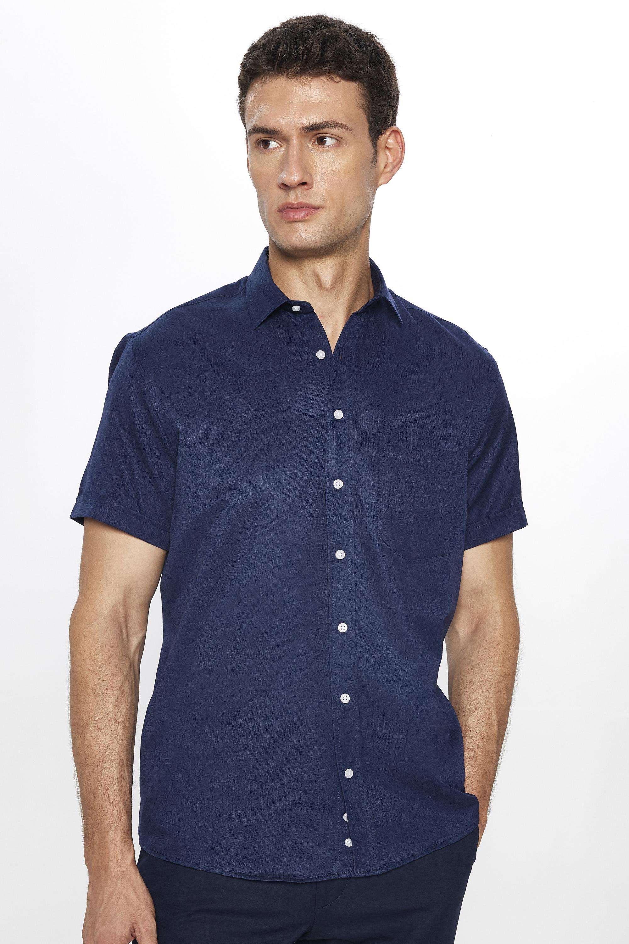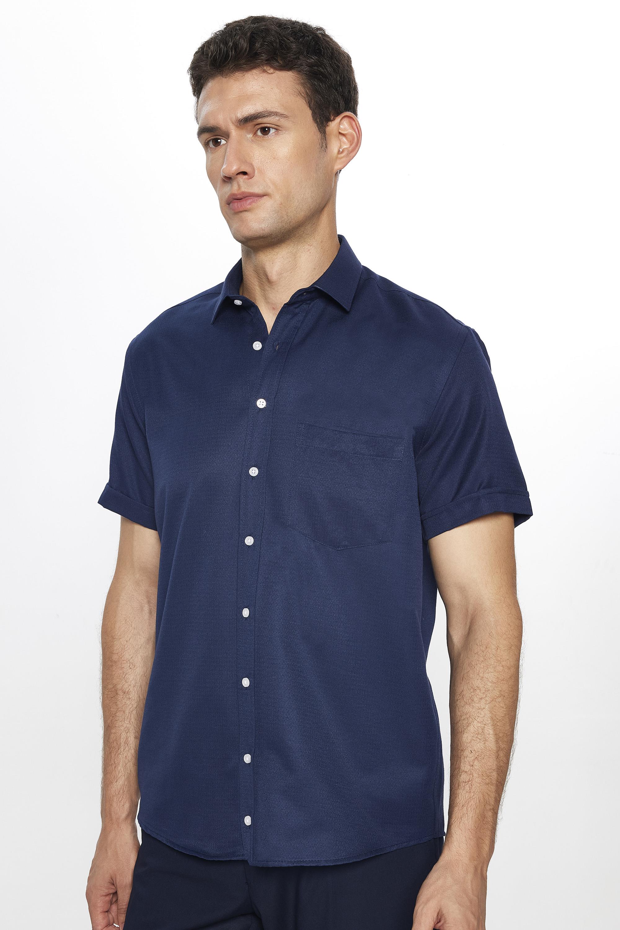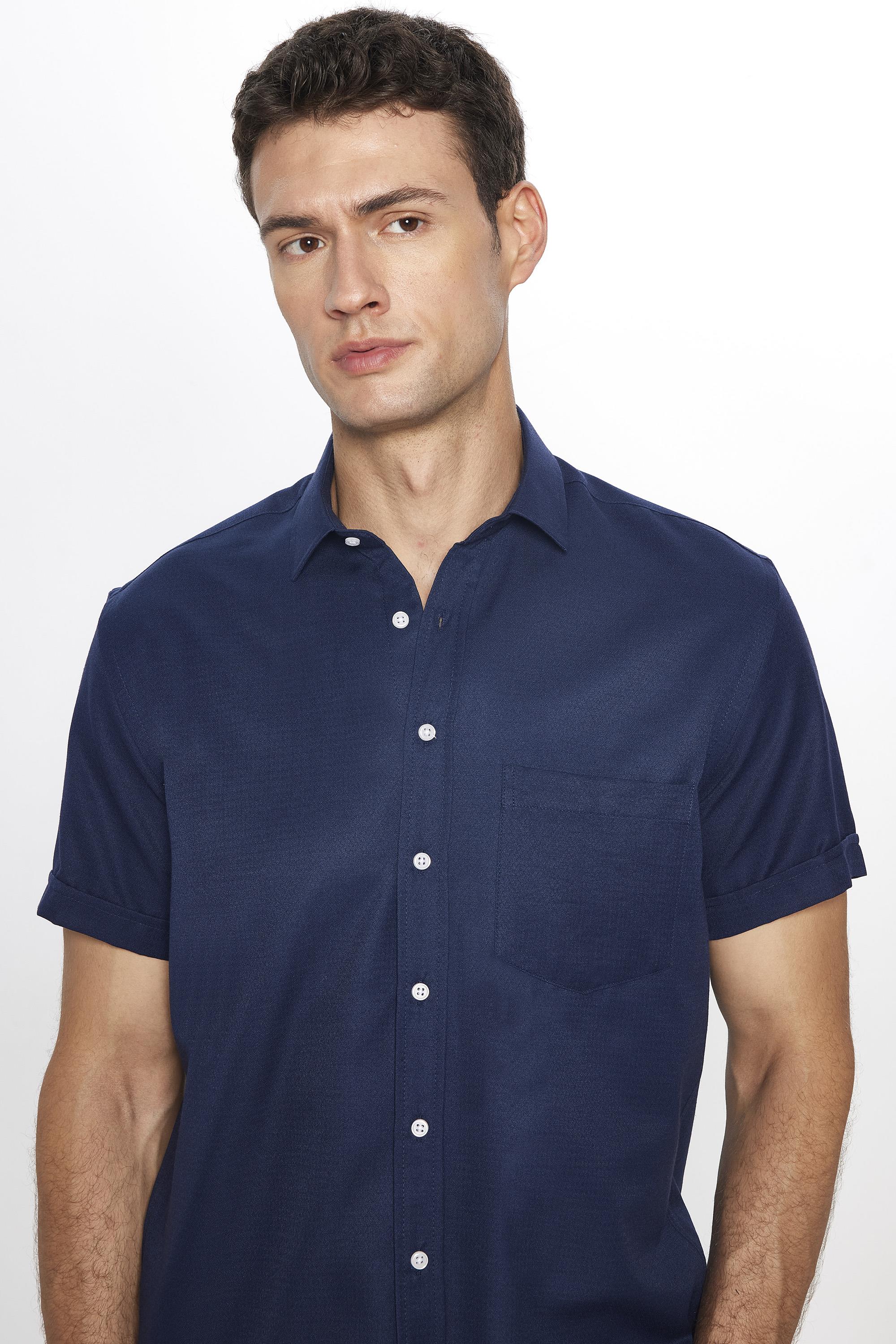 Erkek Regular Fit Klasik Kesim Pamuklu Tek Cepli Armürlü Lacivert Gömlek