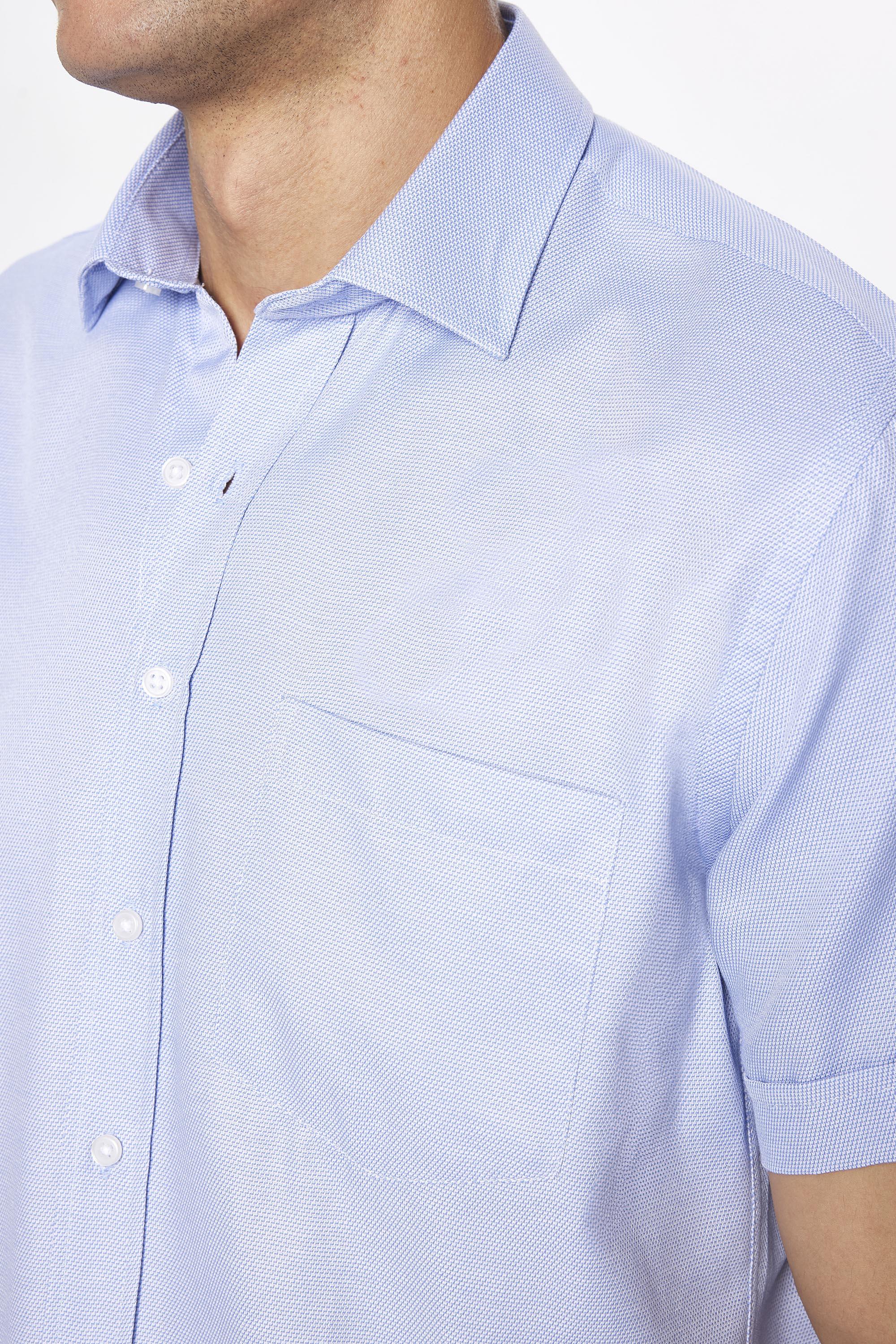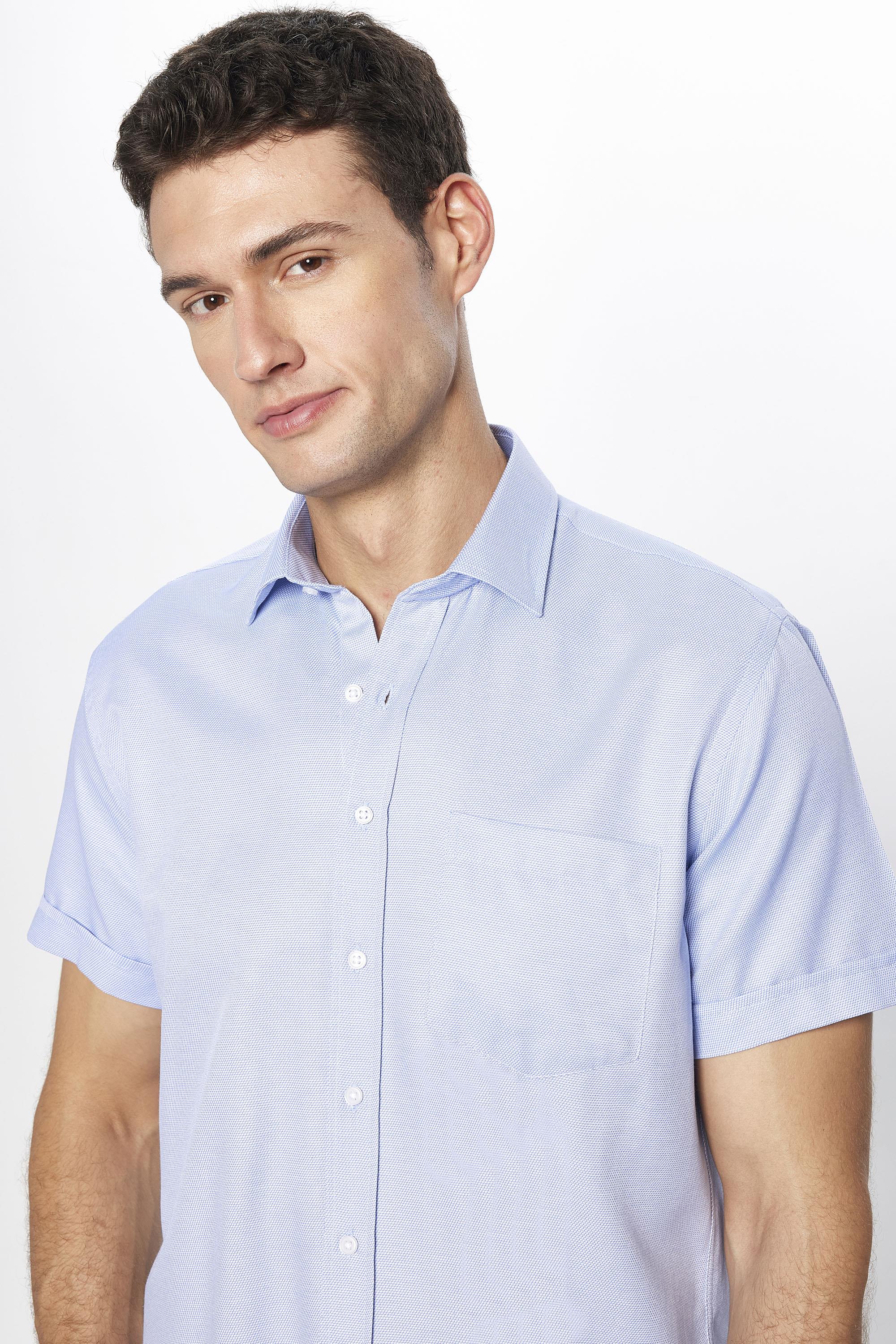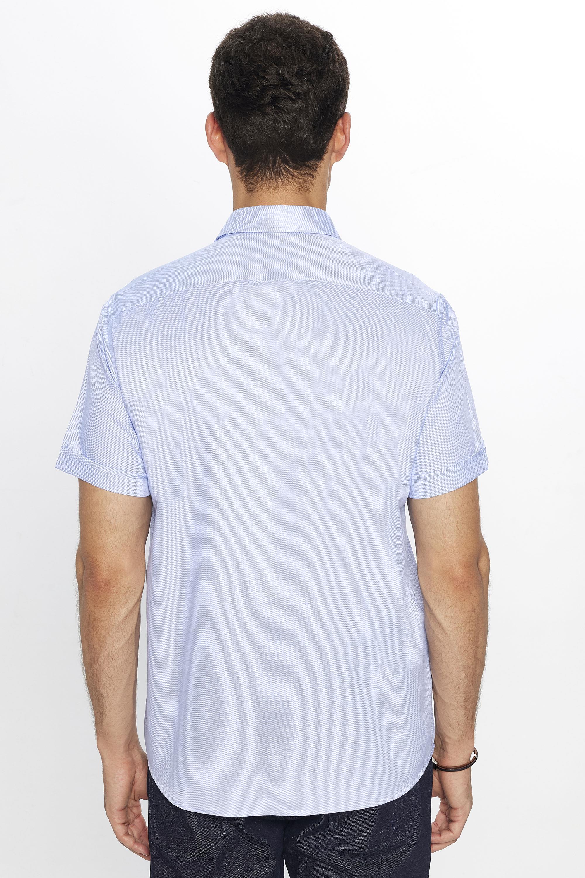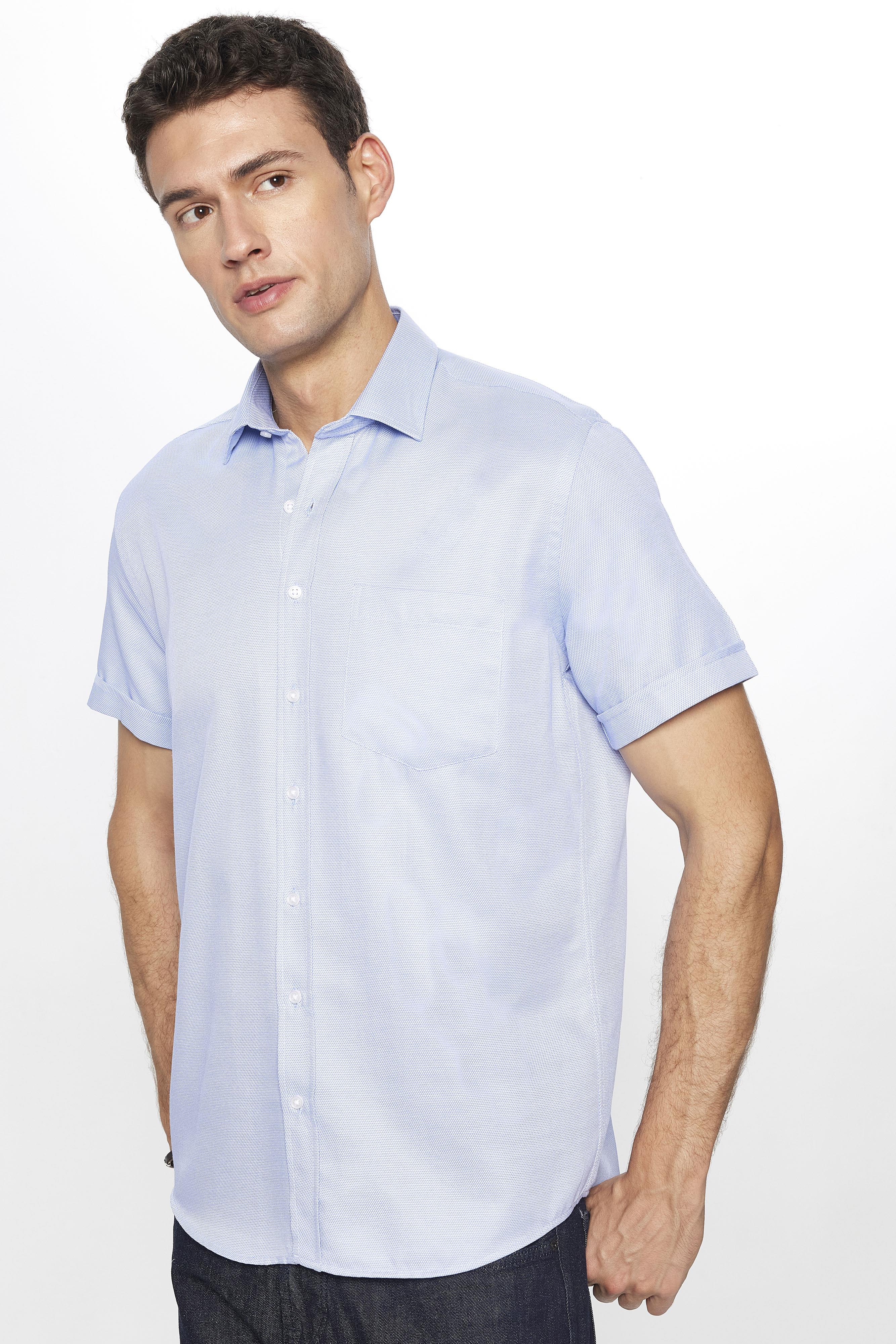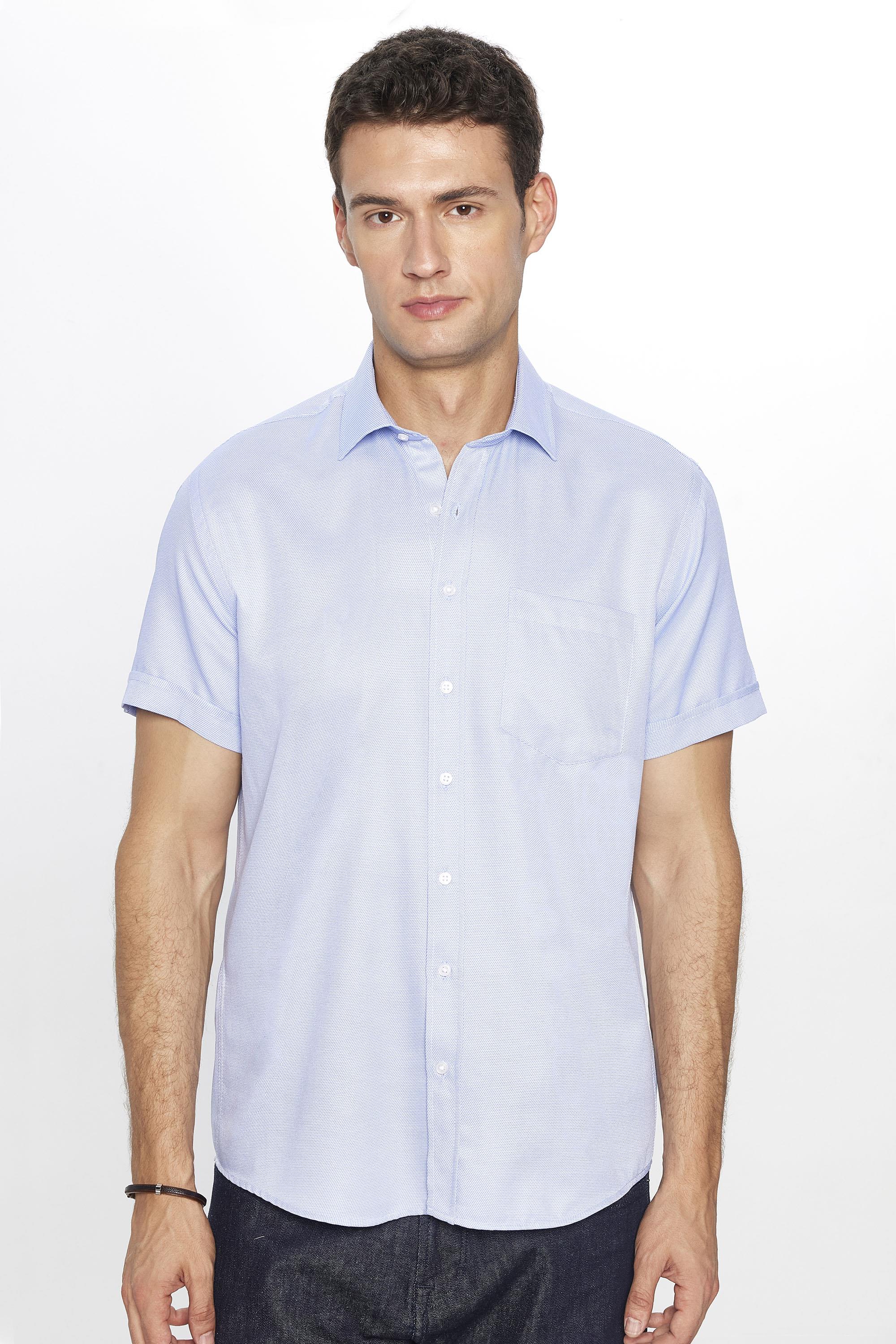Erkek Regular Fit Klasik Kesim Pamuklu Tek Cepli Armürlü Mavi Gömlek