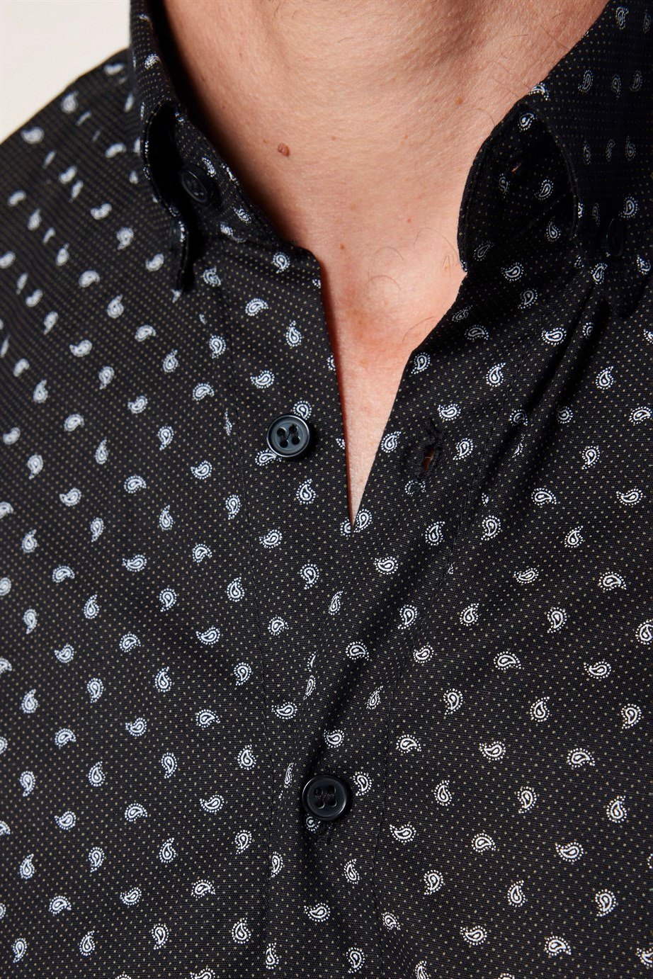 Erkek Regular Fit Klasik Kesim Likralı Baskılı Pamuklu Siyah Gömlek (KL230034-5511)