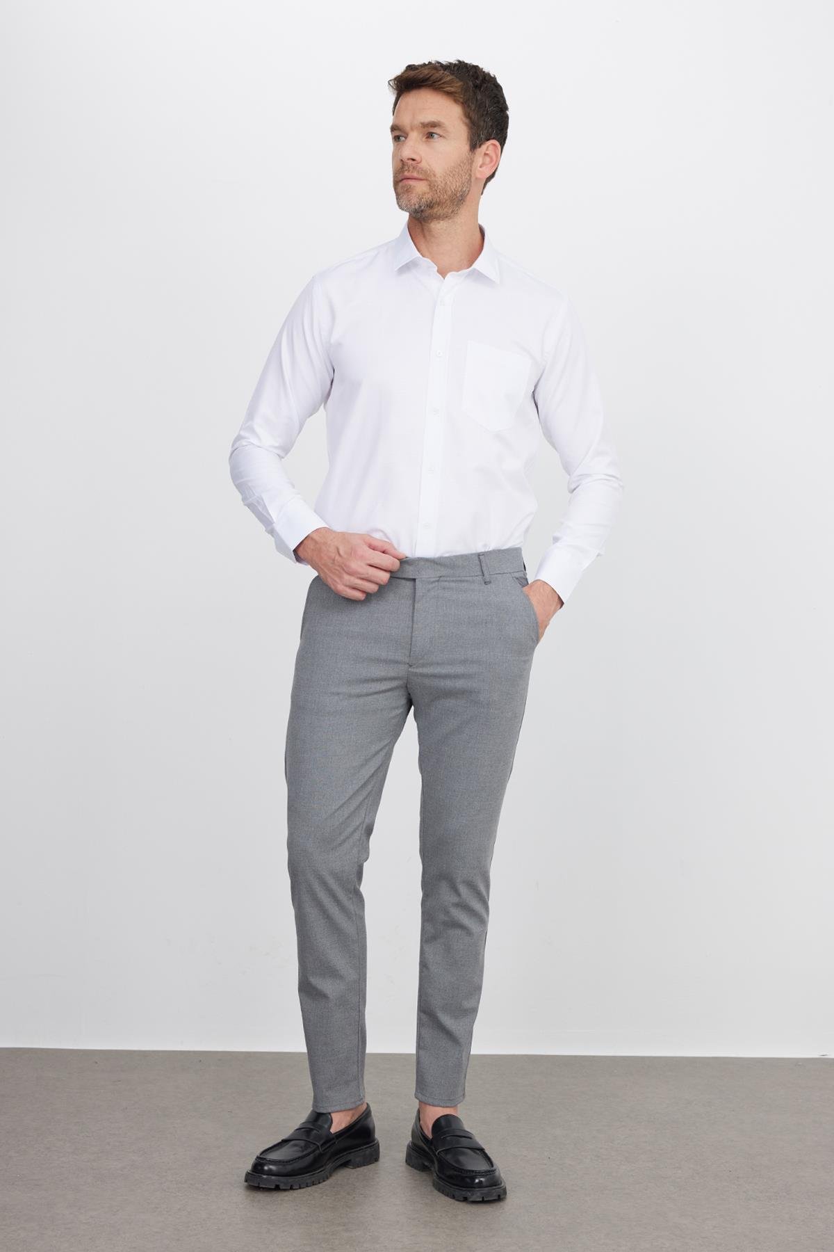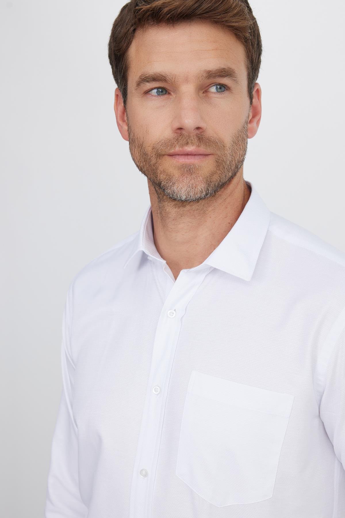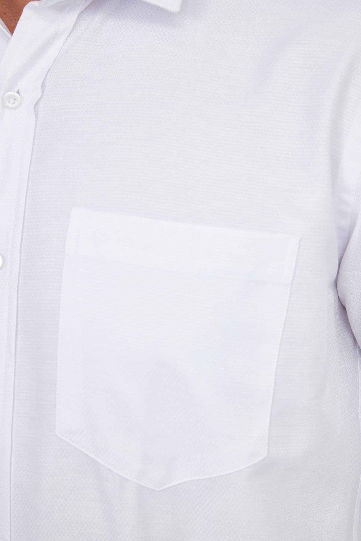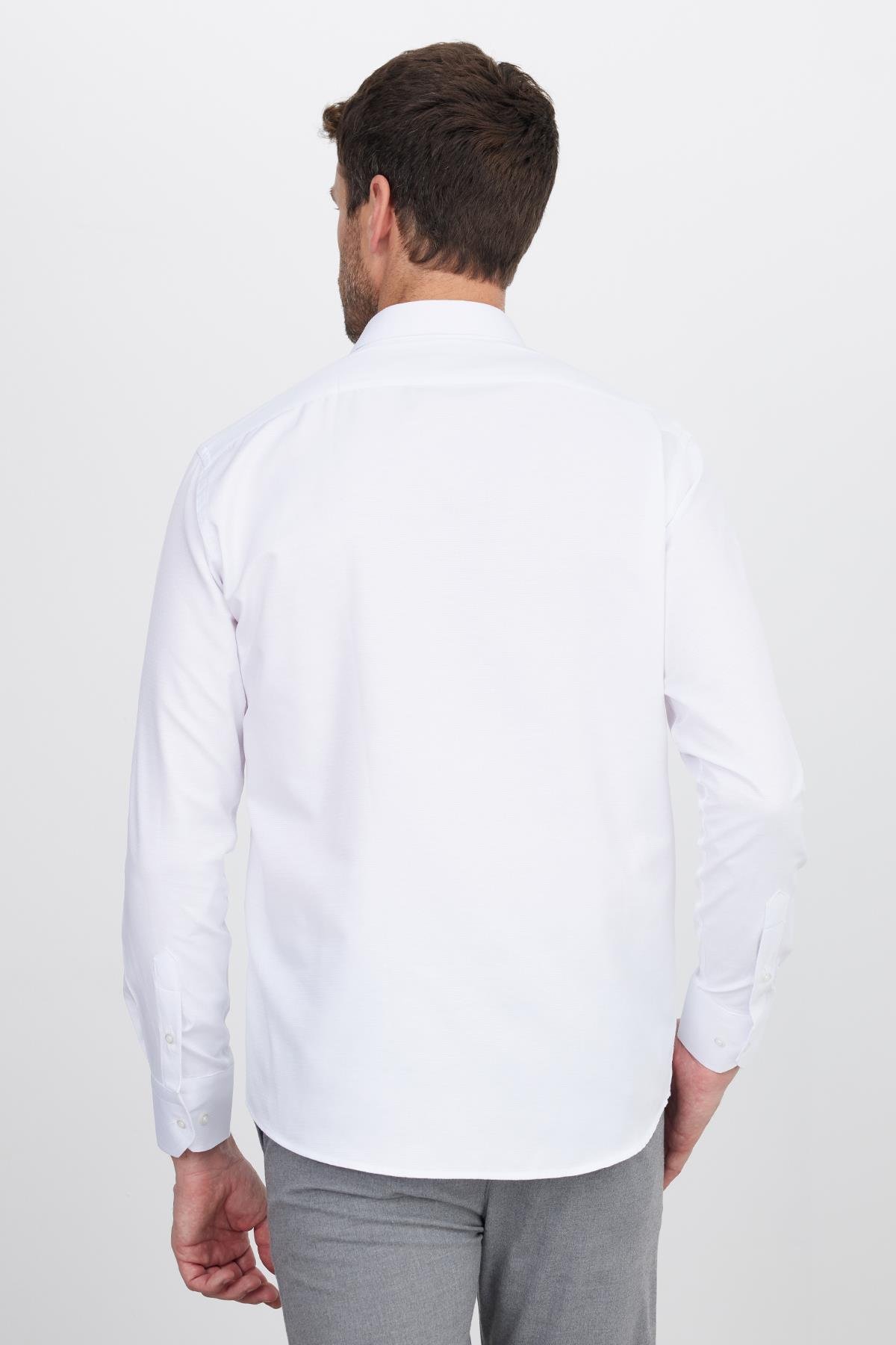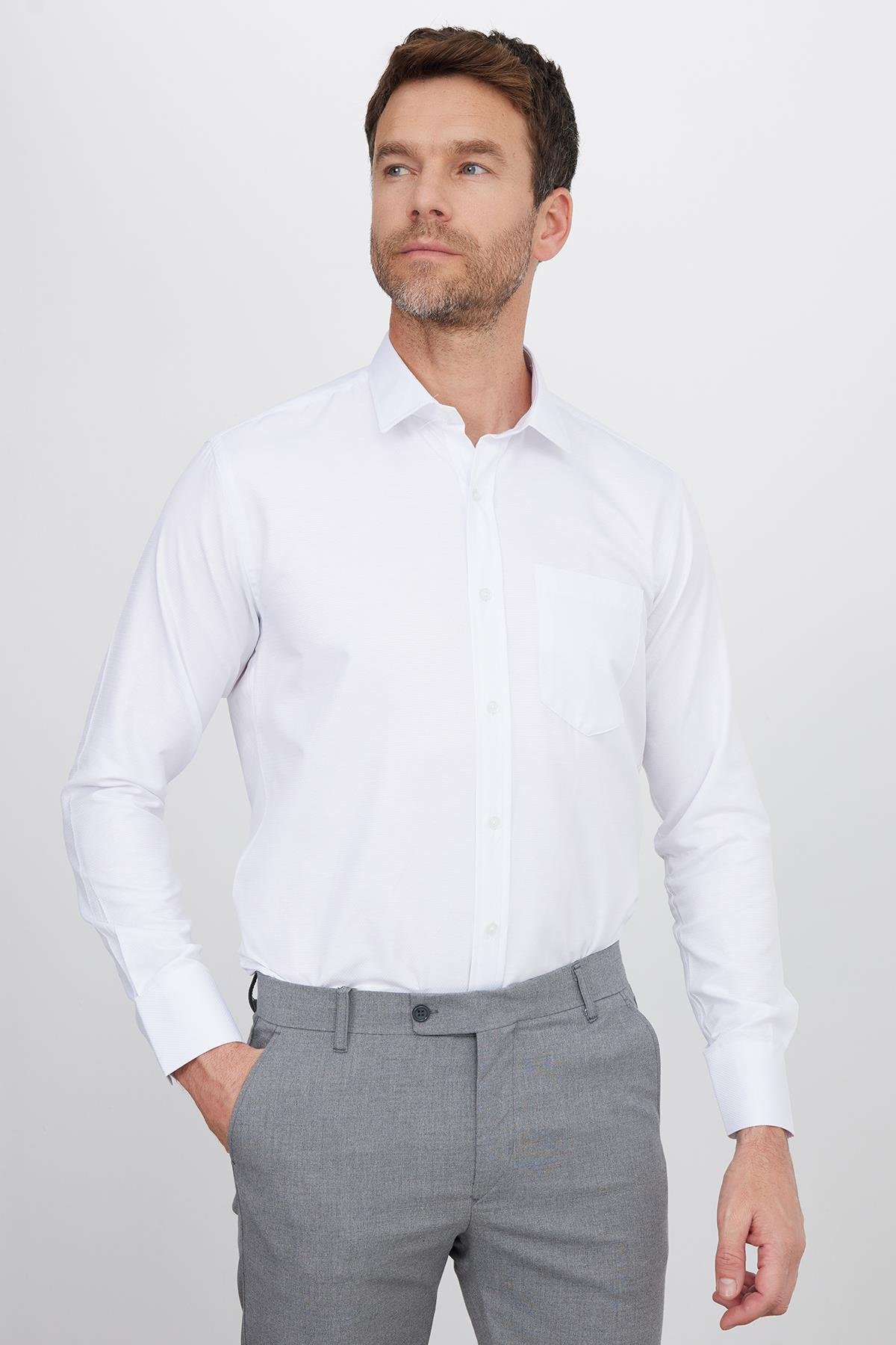 Erkek Regular Fit Klasik Kesim Pamuklu Kolay Ütü Armürlü Beyaz Gömlek (KL220028-800)