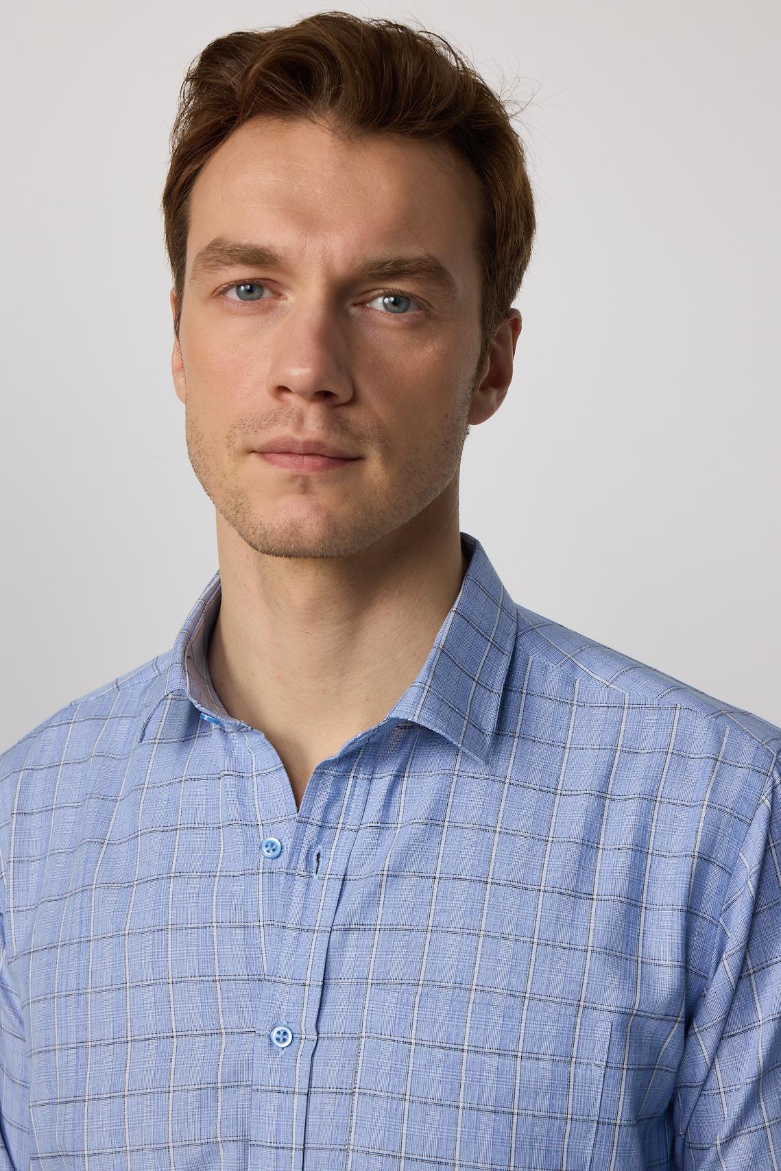 Erkek Regular Fit Klasik Kesim Pamuklu Kolay Ütü Çizgili Mavi Gömlek