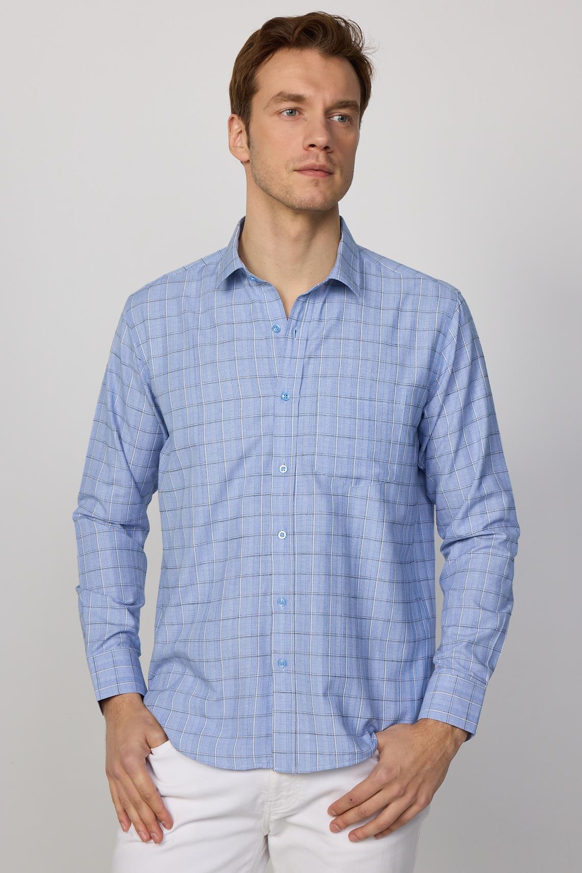 Erkek Regular Fit Klasik Kesim Pamuklu Kolay Ütü Çizgili Mavi Gömlek (KL16014-992)