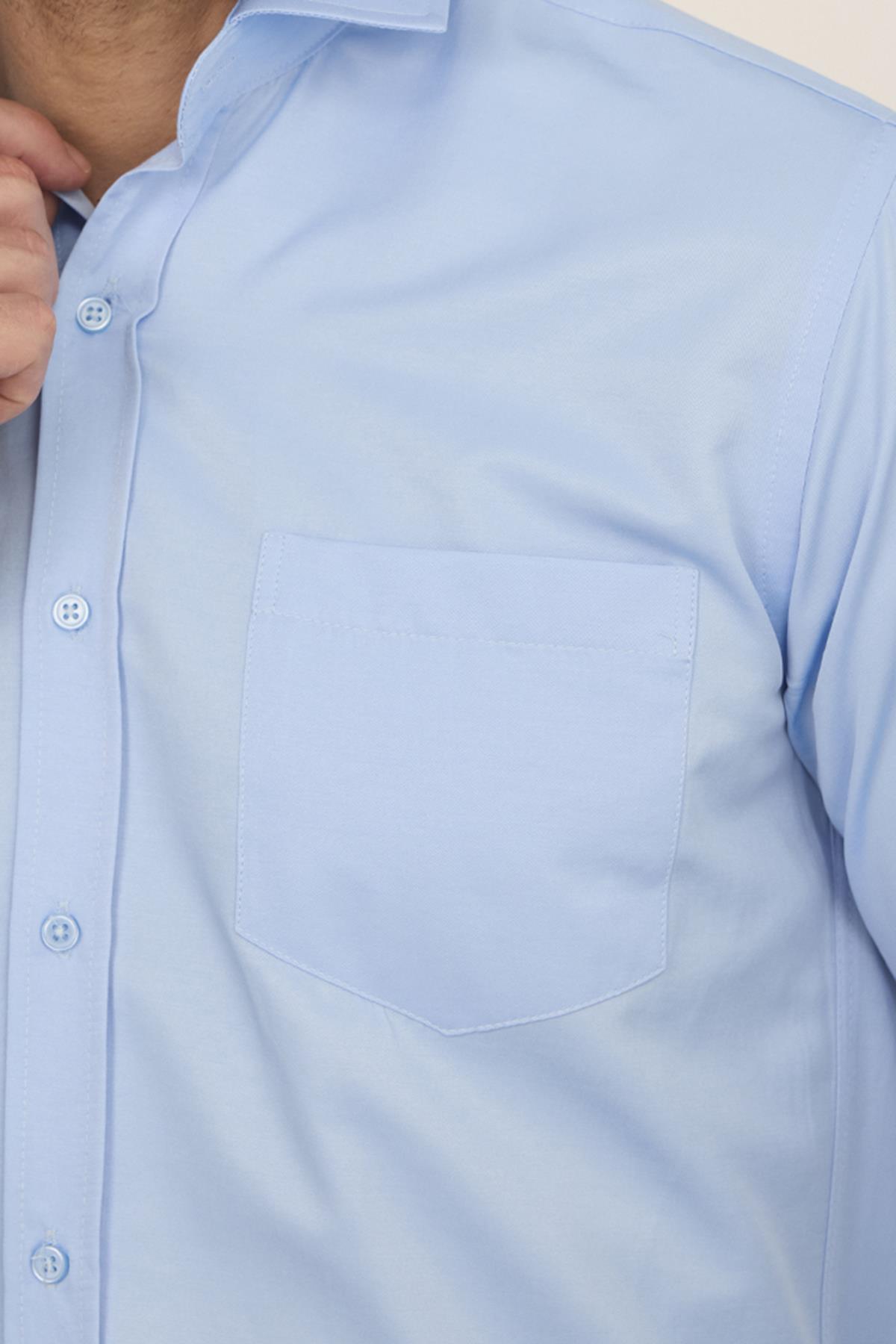 Erkek Regular Fit Klasik Kesim Pamuklu Düz Mavi Gömlek