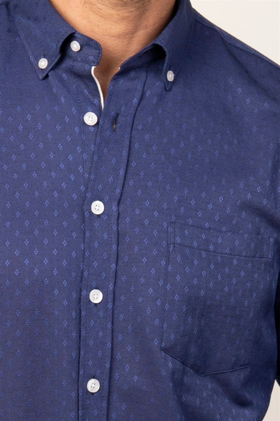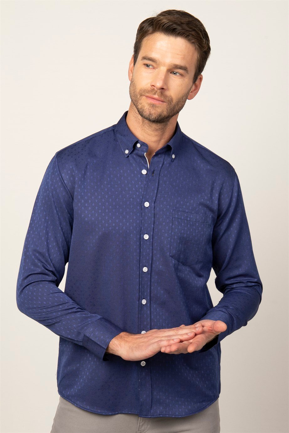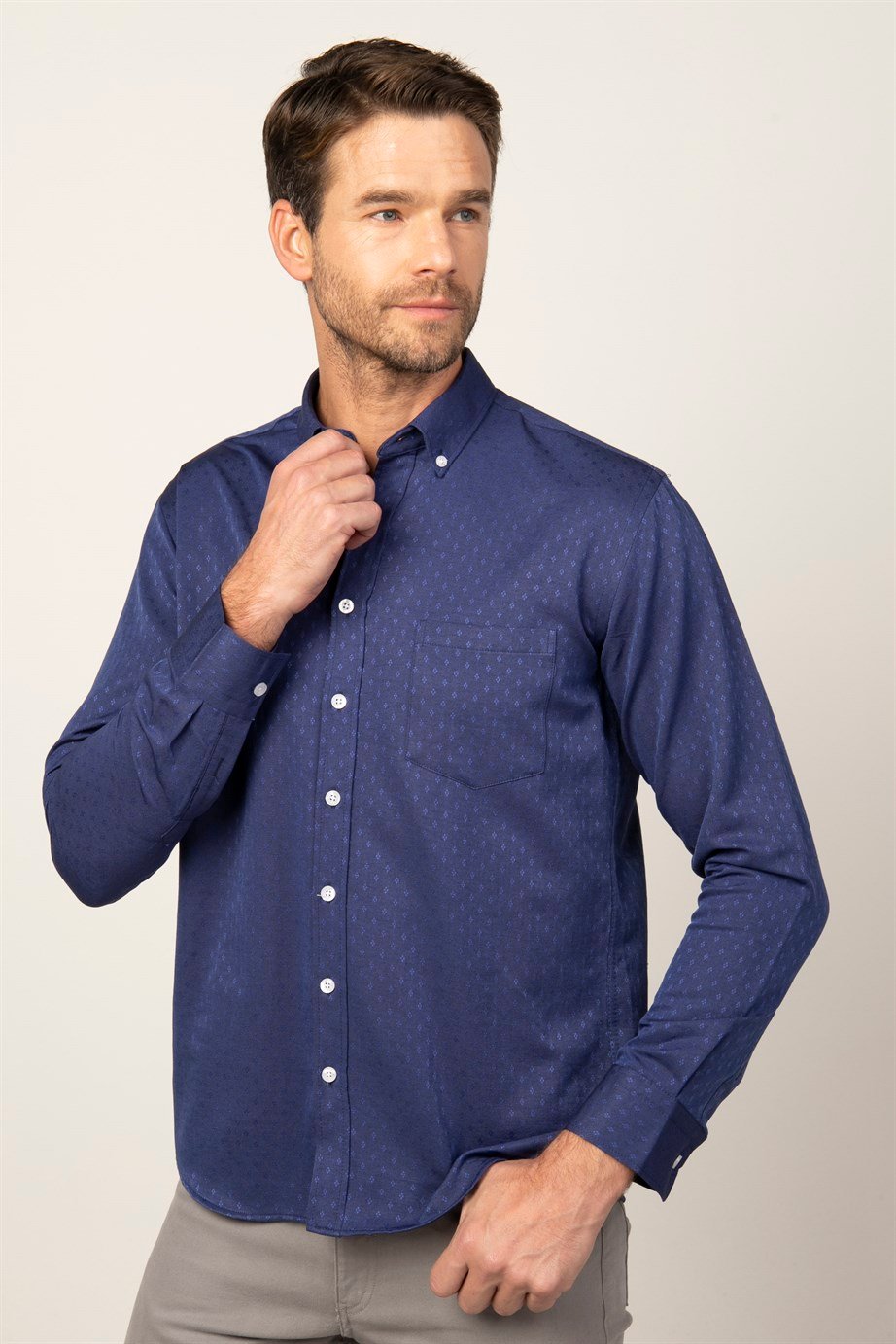 Erkek Regular Fit Klasik Kesim Düğmeli Yaka Pamuklu Kolay Ütü Armürlü Gömlek