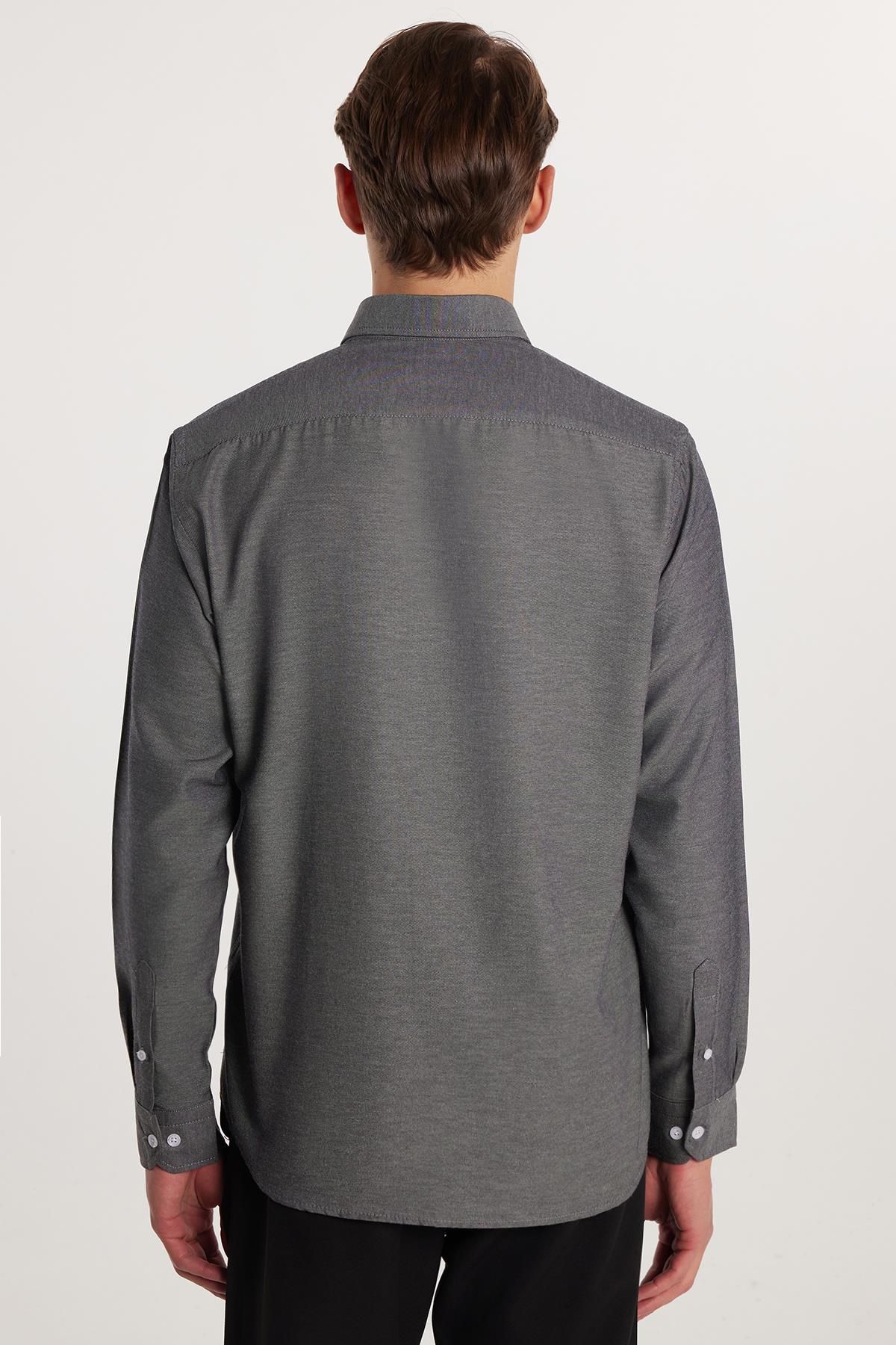 Erkek Regular Fit Klasik Kesim Düz Yaka Düğmeli Cepli Gri Gömlek (KL230029-420)