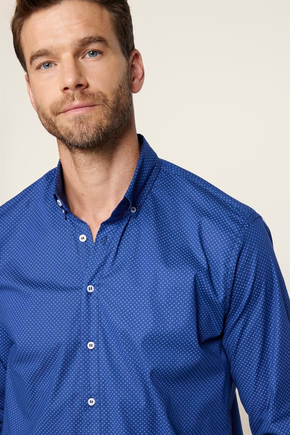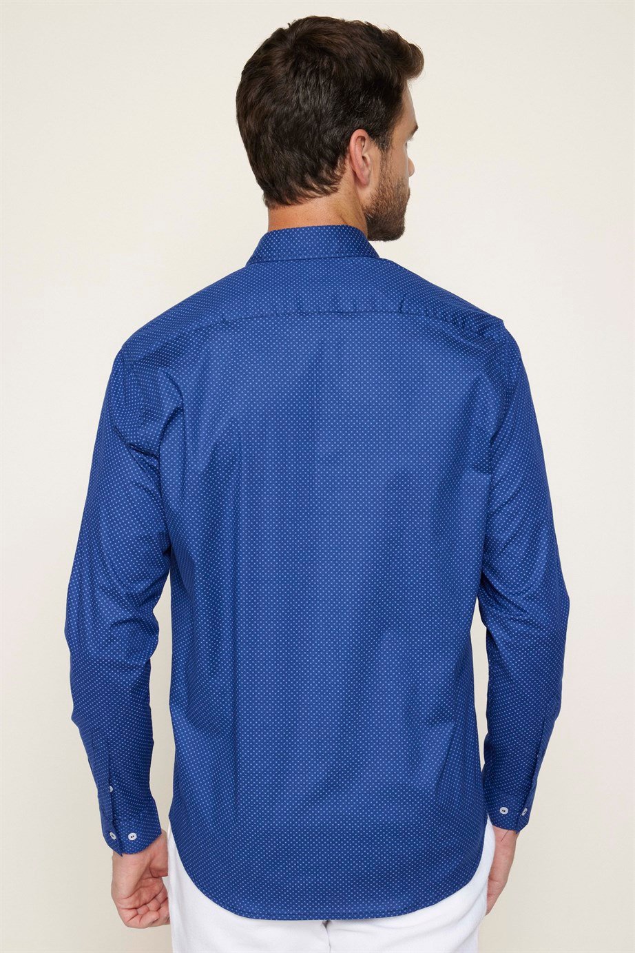 Erkek Regular Fit Klasik Kesim Likralı Baskılı Pamuklu Lacivert Gömlek
