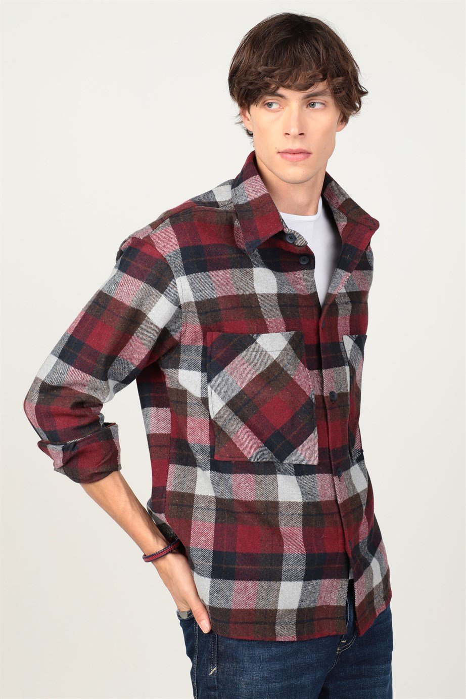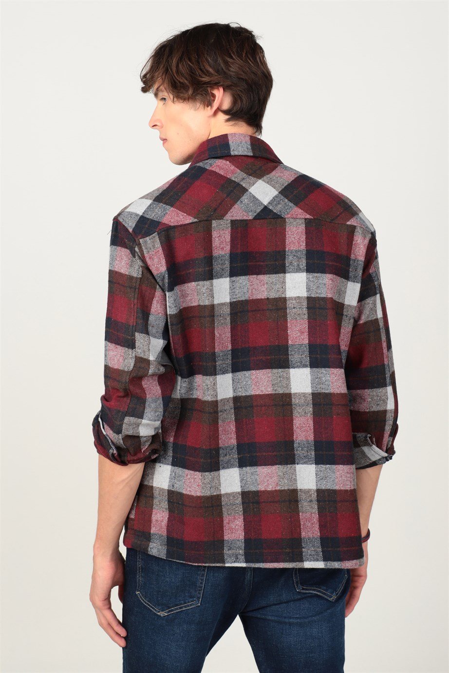 Erkek Oversize Geniş Kesim Çift Cep Kareli Kışlık Oduncu Gömlek (OS230002-700)