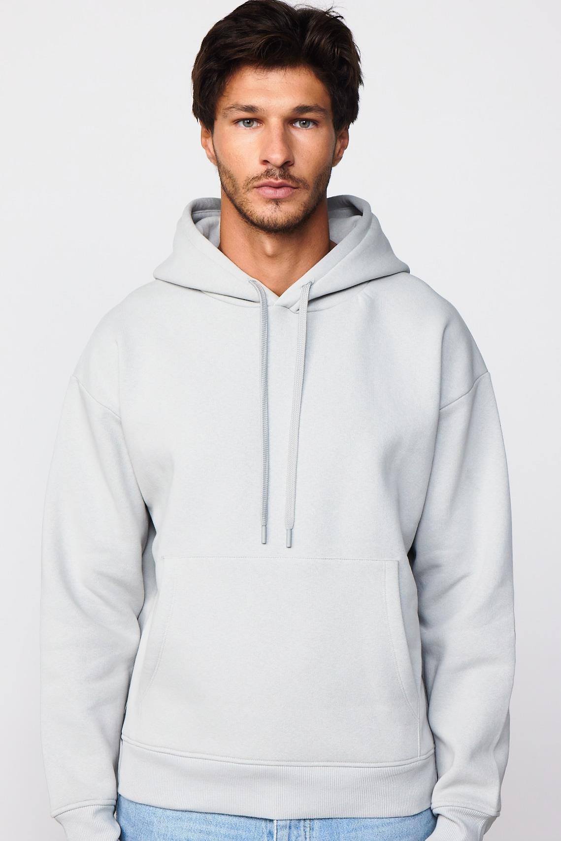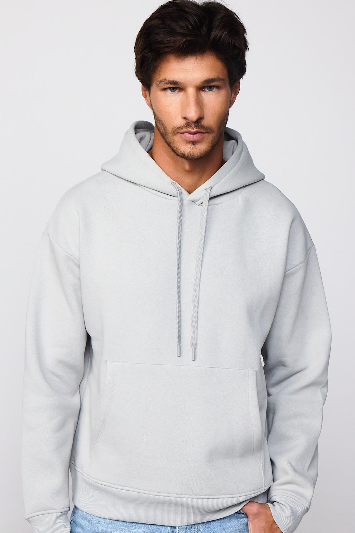 Unisex Oversize Geniş Kesim Pamuklu Yumuşak Dokulu İçi Polarlı Basic Taş Renk Kapüşonlu Sweatshirt (SW240001-STN)