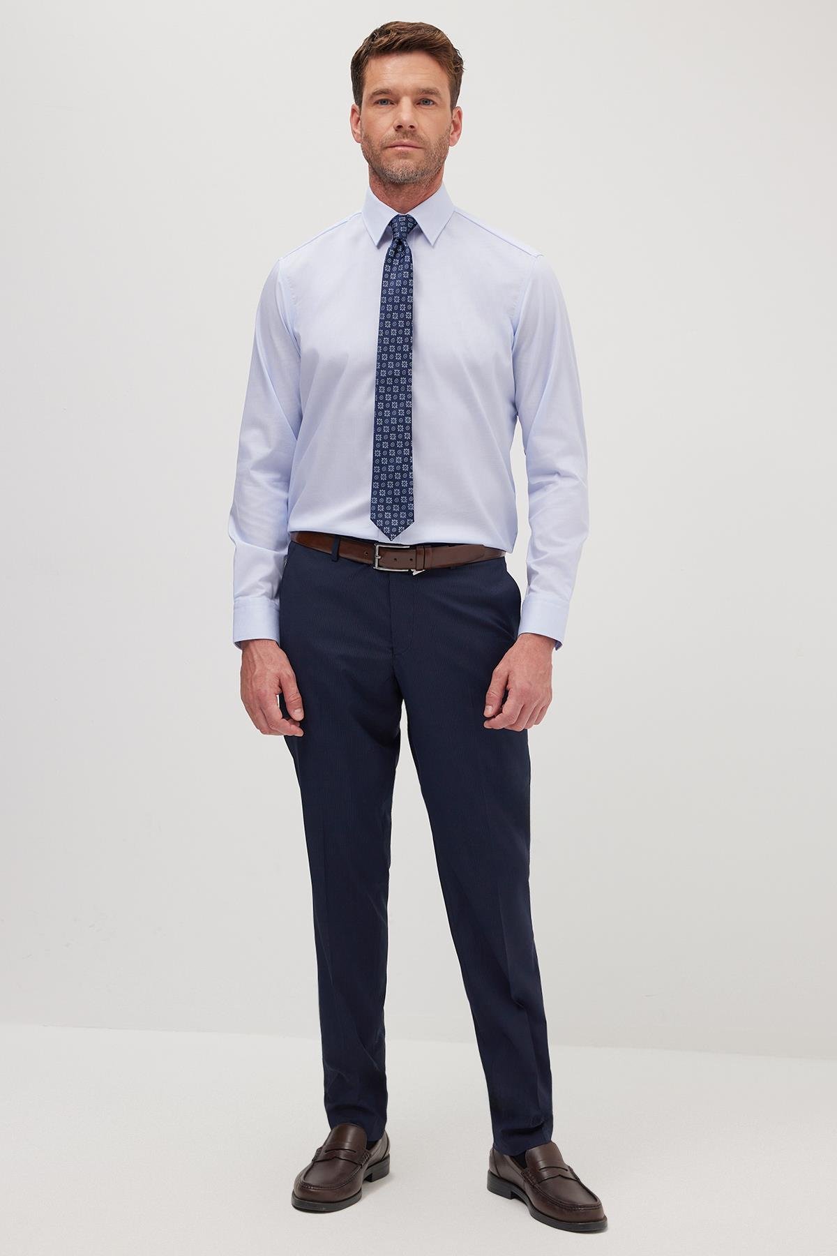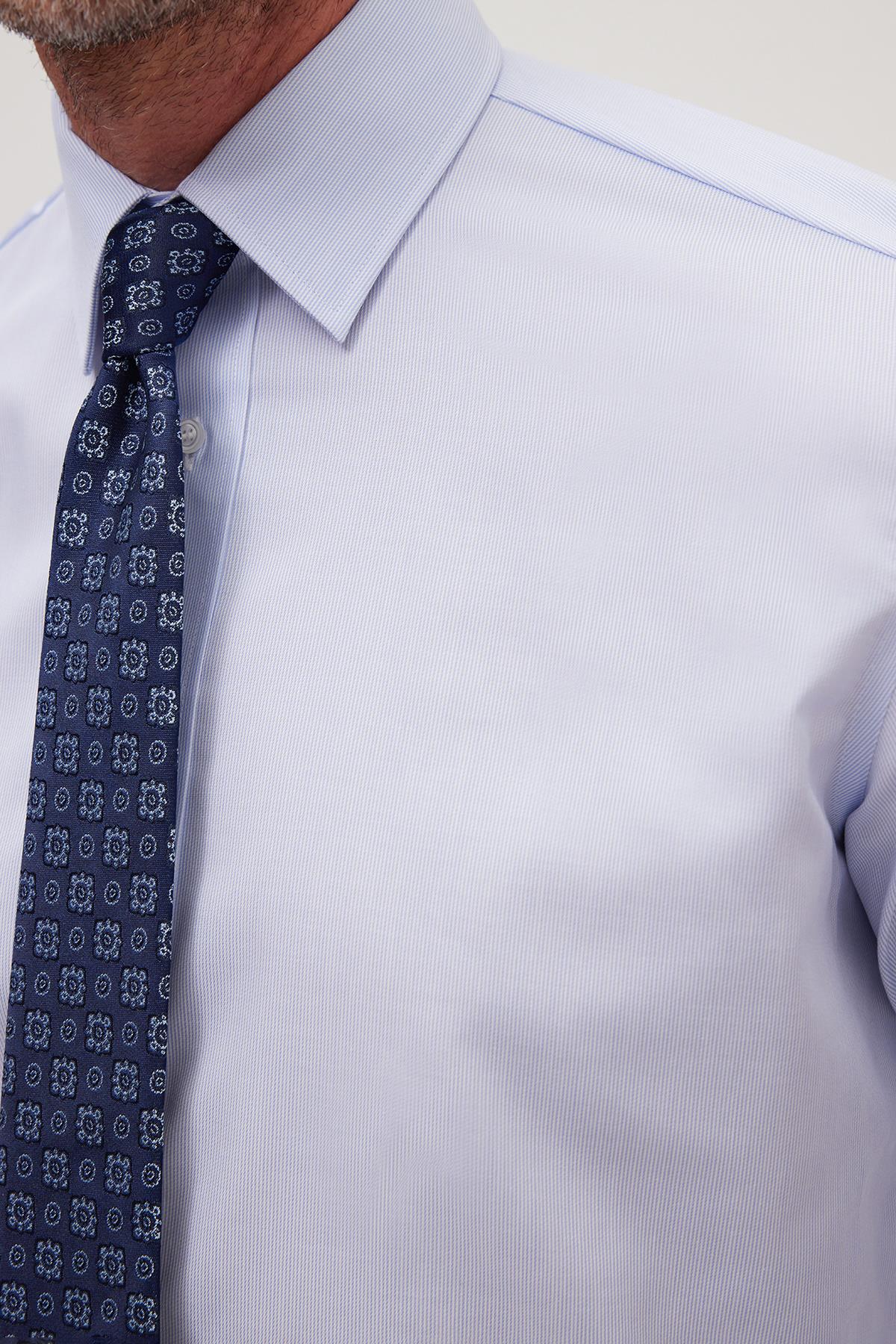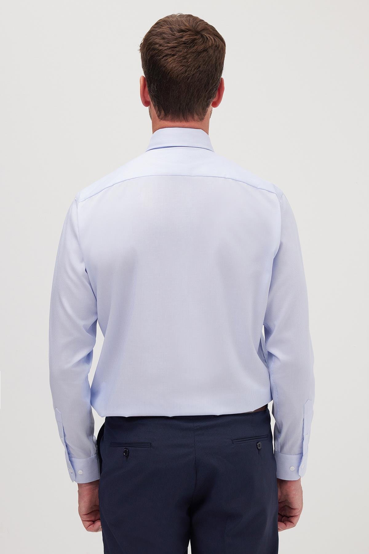 Regular Fit Mavi Non-Iron %100 Pamuk Doğa Dostu Ekoteks Belgeli Ütü Gerektirmez Gömlek