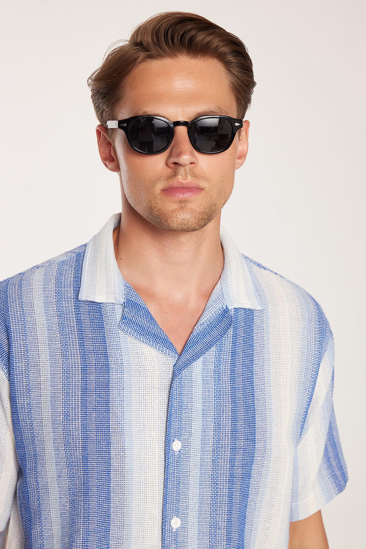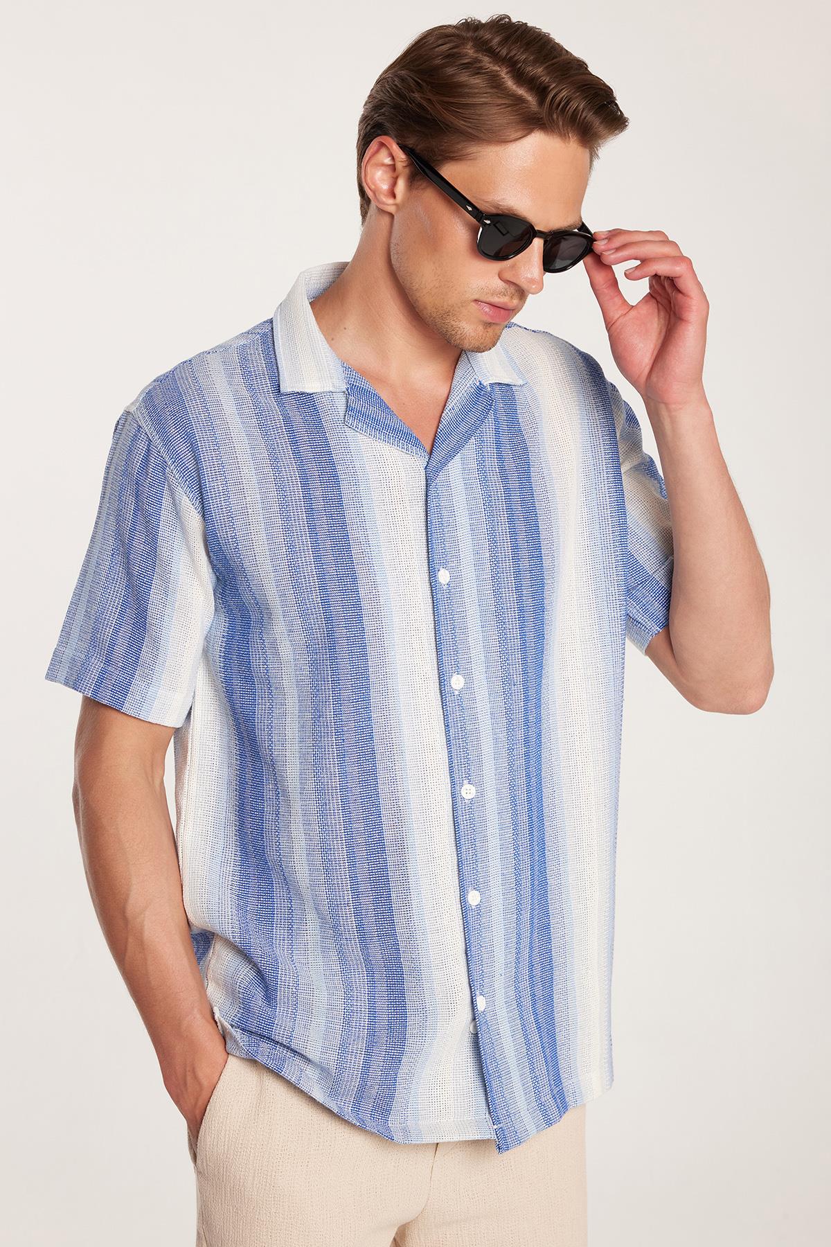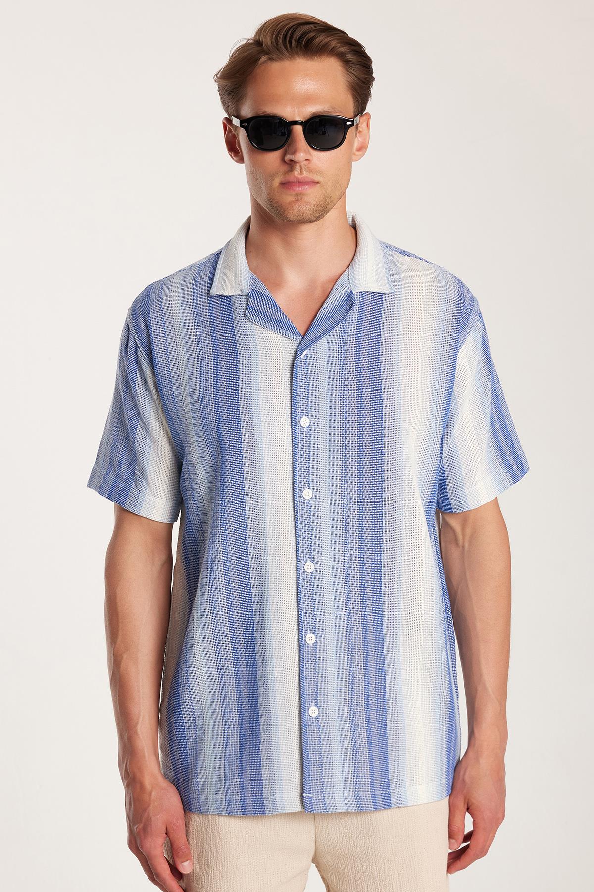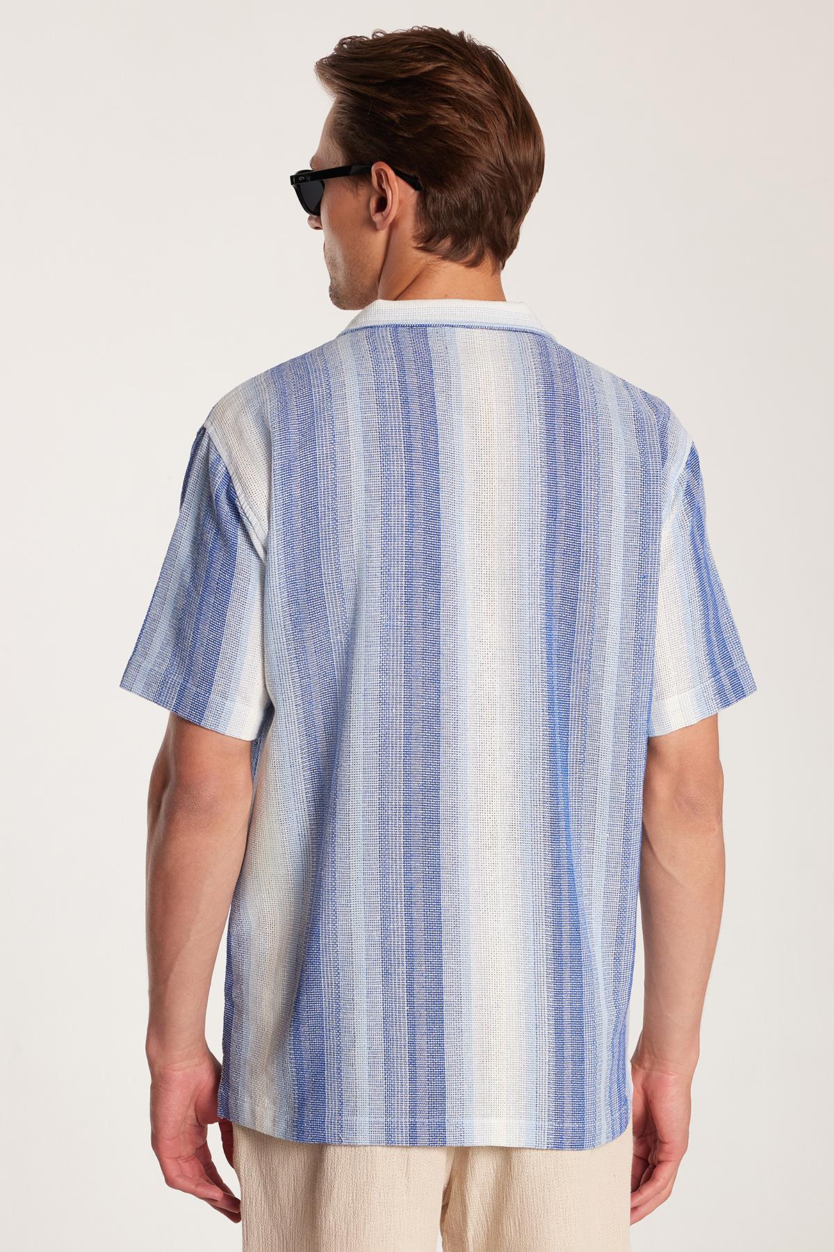 Relax Fit Oversize Dökümlü Rahat Kalıp Çizgili Keten Efekt Erkek Gömlek (RF250035-4801)