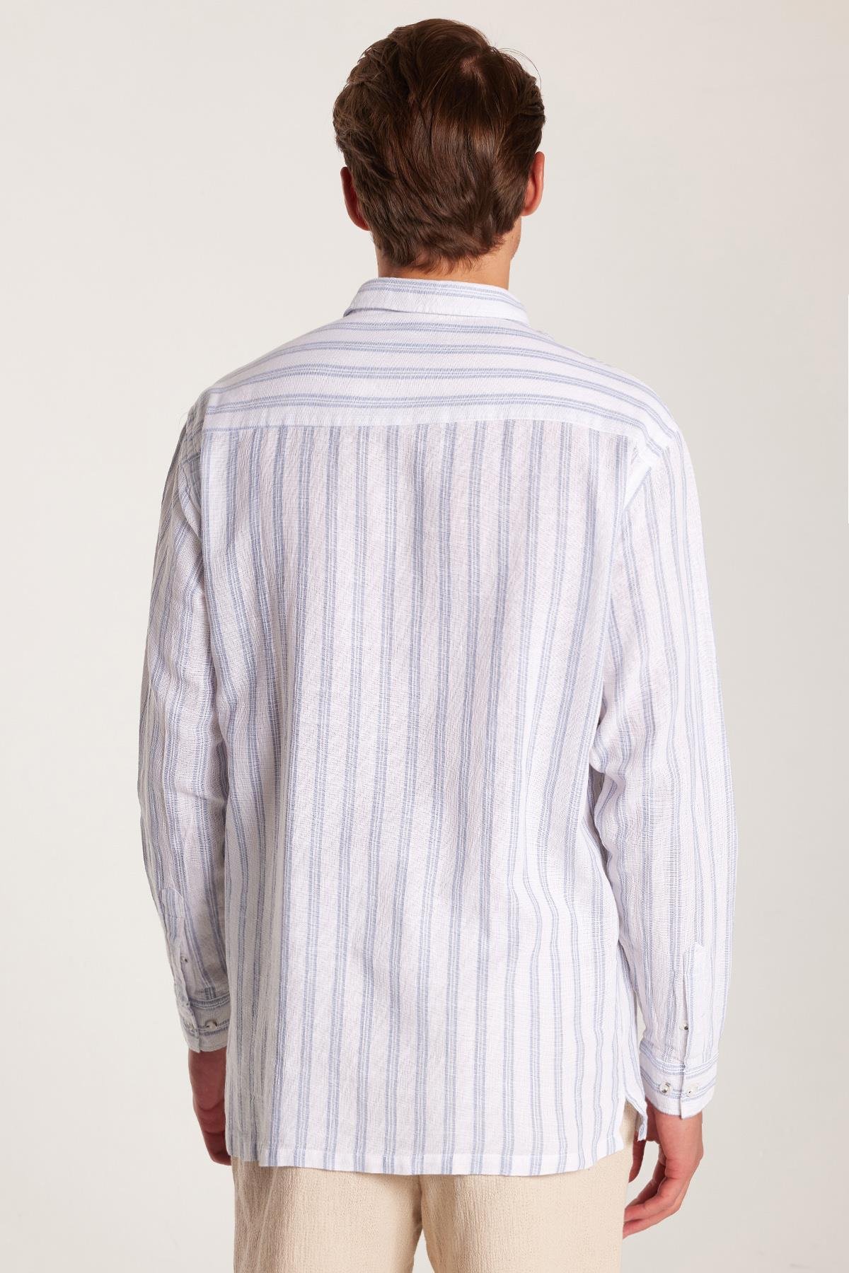 Relax Fit Oversize Dökümlü Rahat Kesim Çizgili Keten Spor Erkek Gömlek (RF250036-2301)