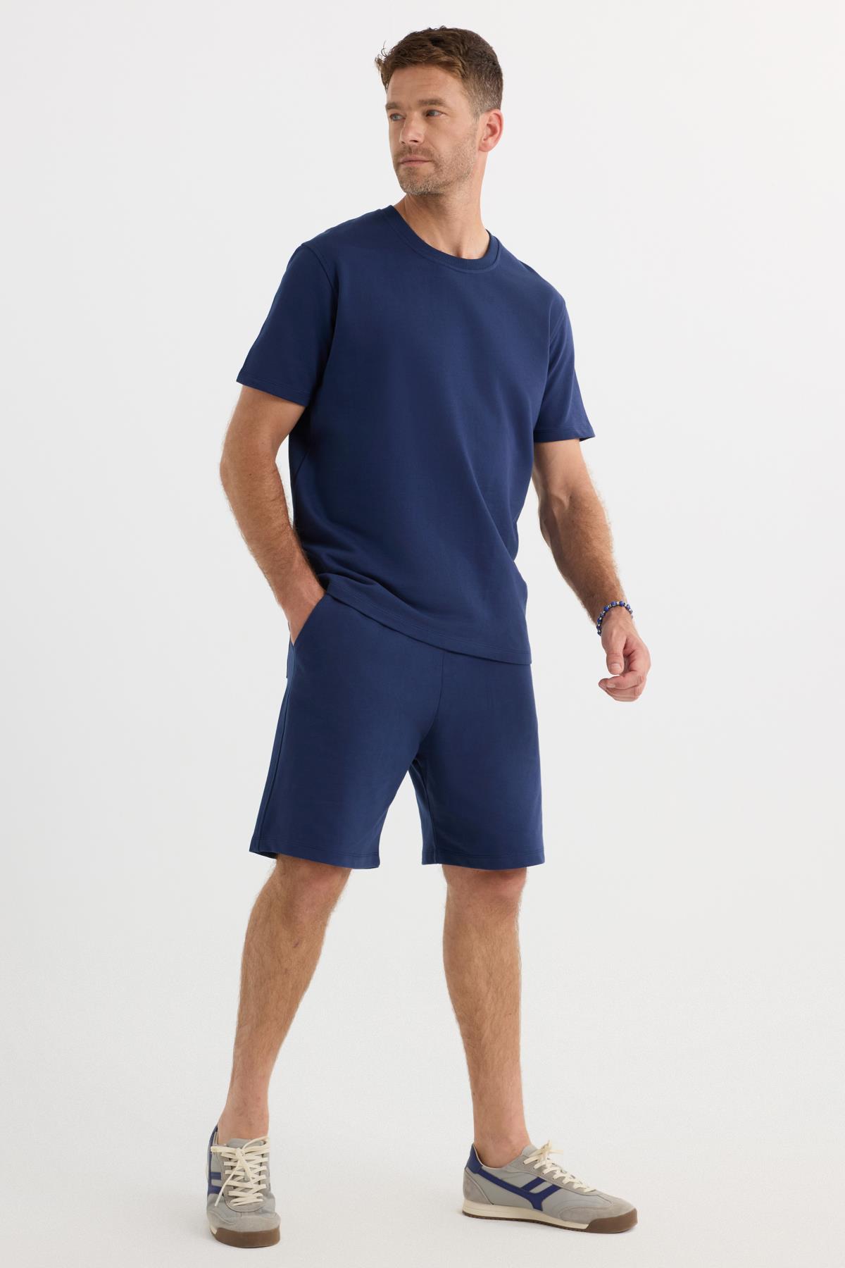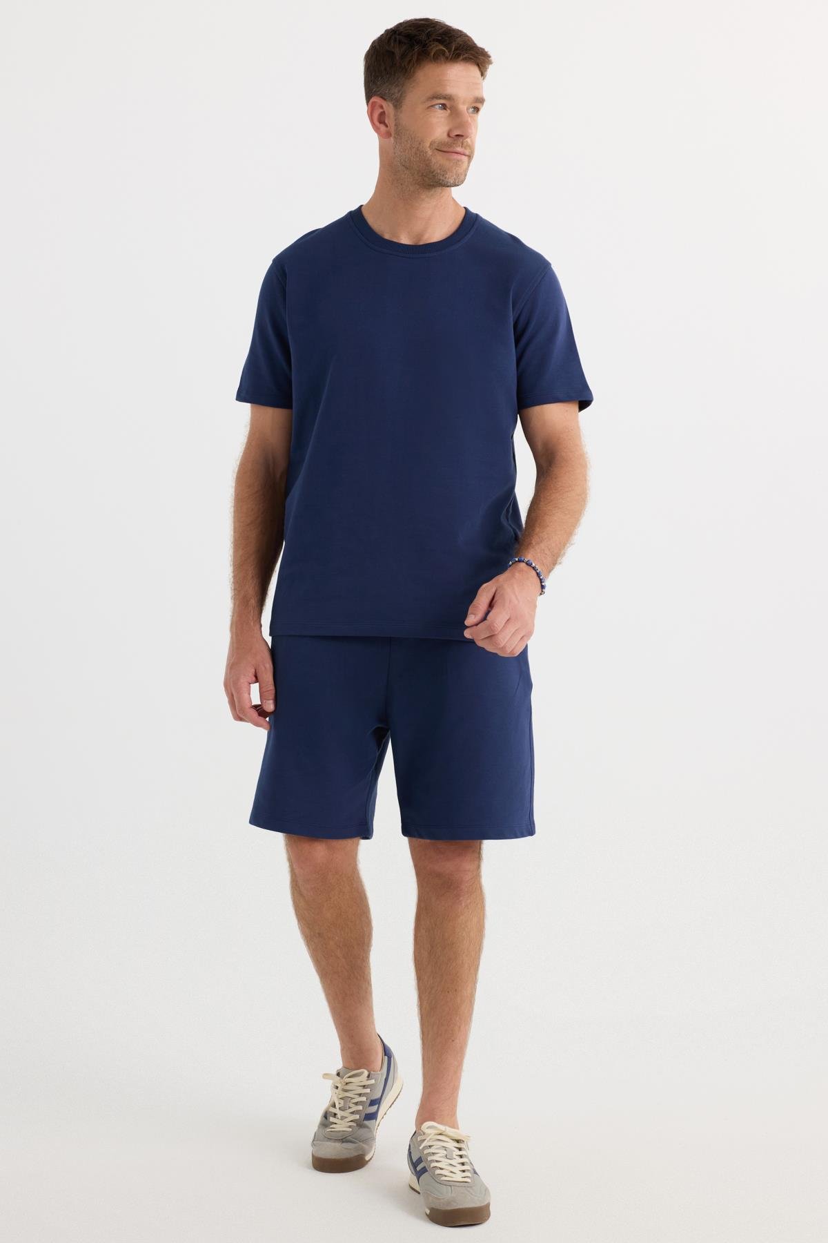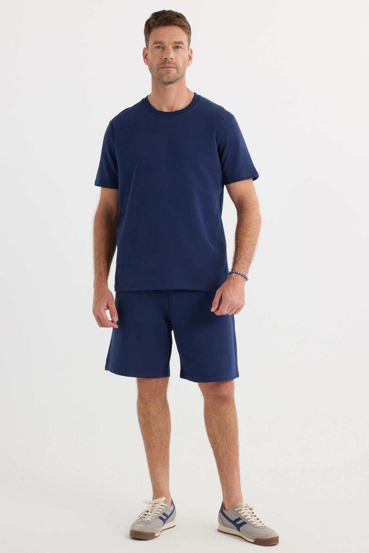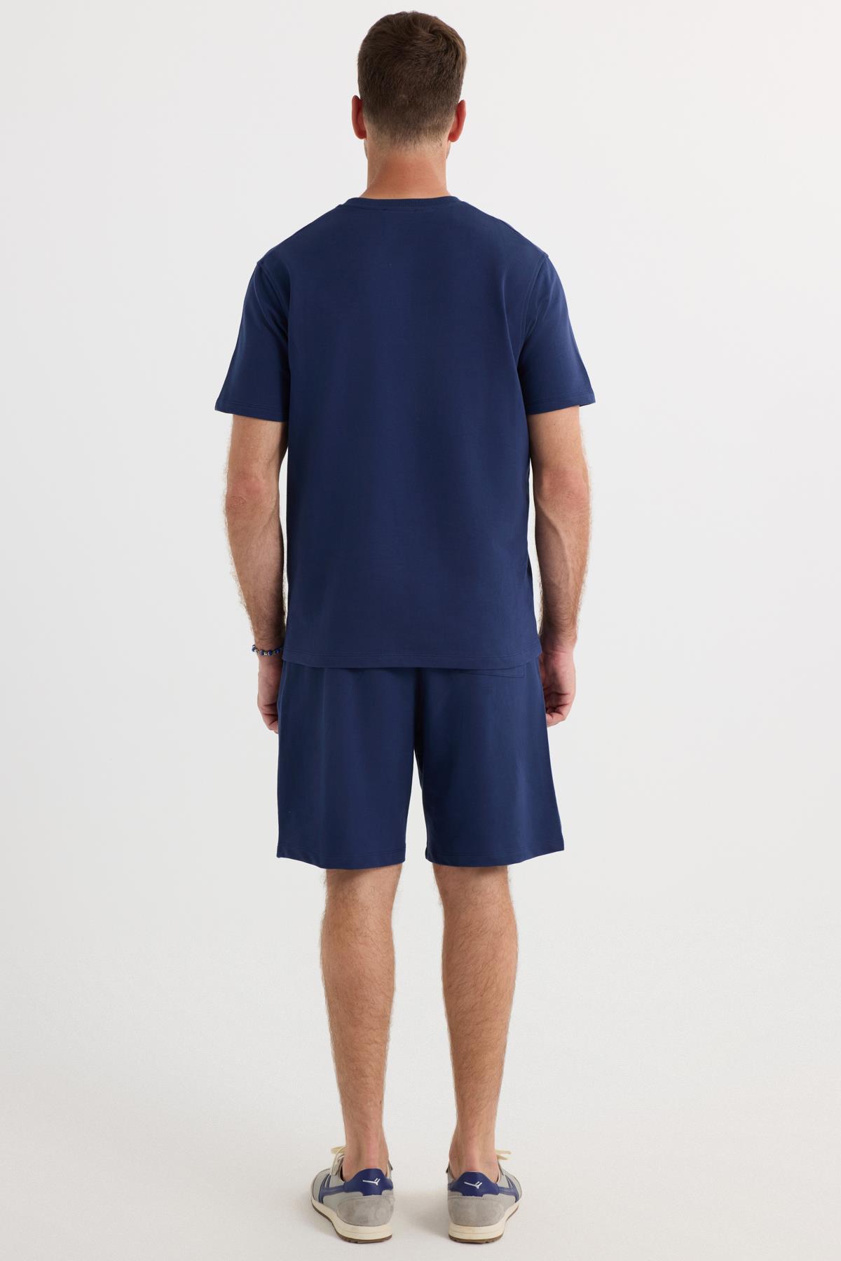 Relax Fit Rahat Kesim %100 Pamuk Hafif Kalın Özel Tasarım Erkek Lacivert Şortlu Eşofman Takım