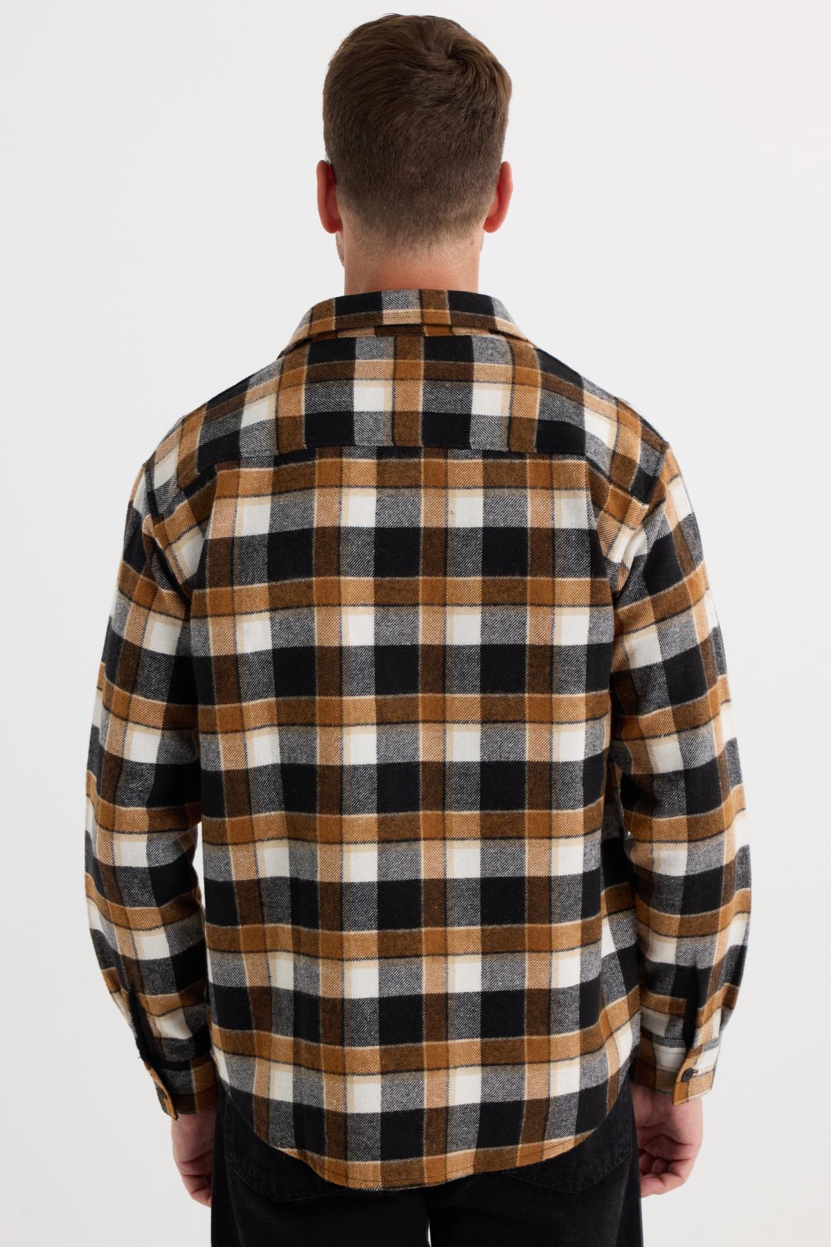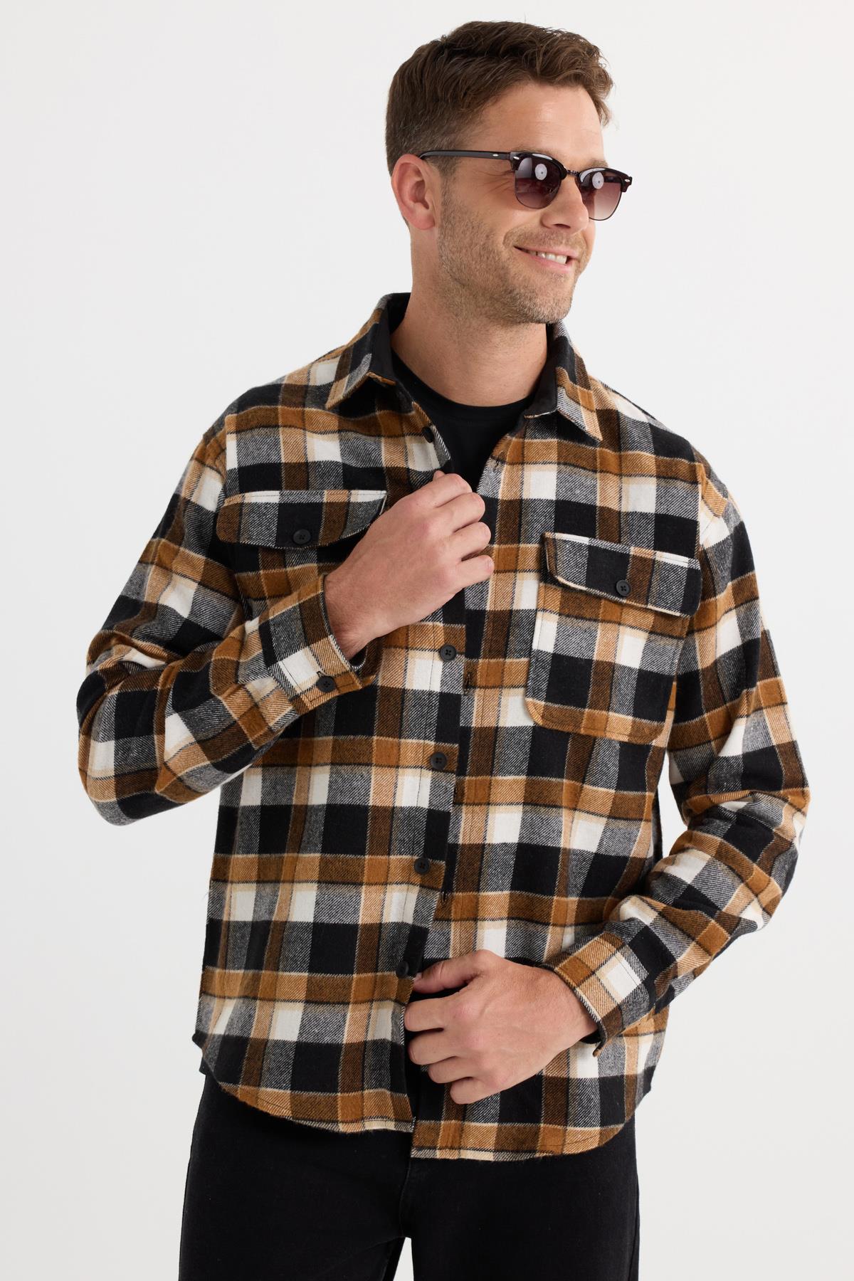 Relax Fit Rahat Kesim Çift Cep Kapaklı Kışlık Oduncu Kareli Erkek Gömlek (RF250067-7513)