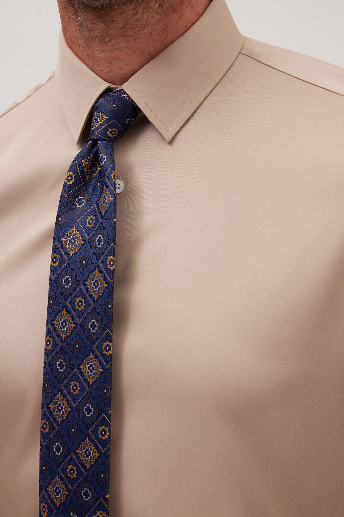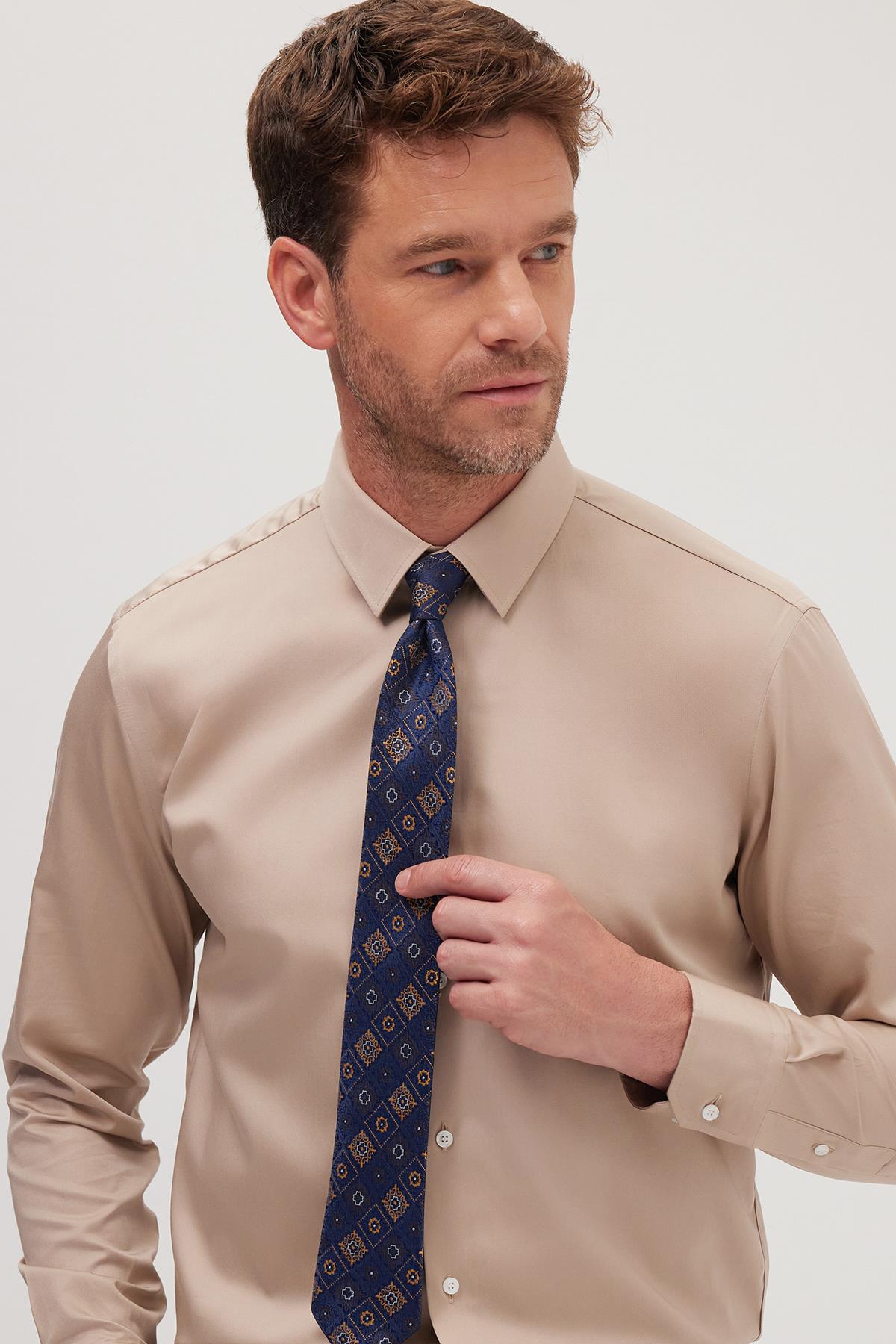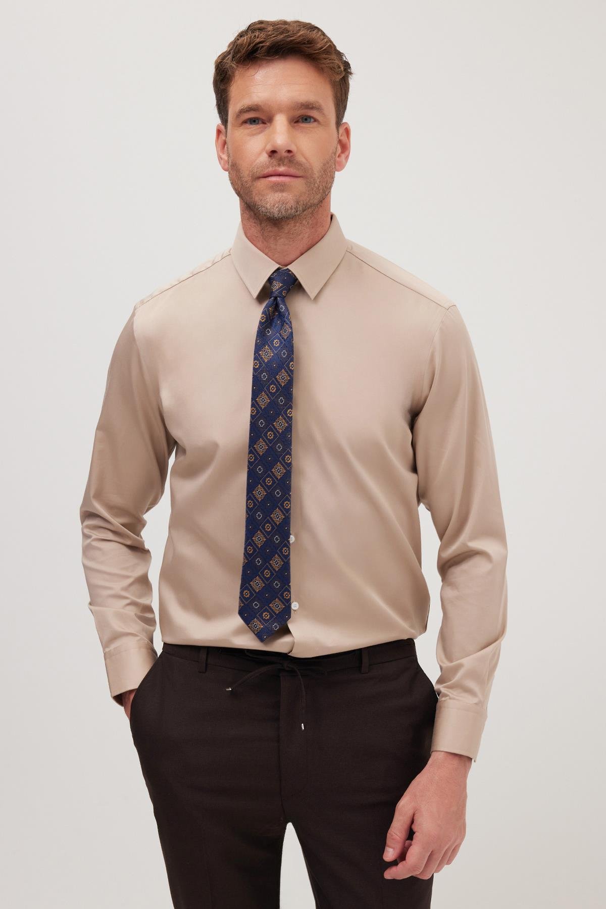 Slim Fit Bej Non-Iron %100 Pamuk Doğa Dostu Ekoteks Belgeli Ütü Gerektirmez Gömlek