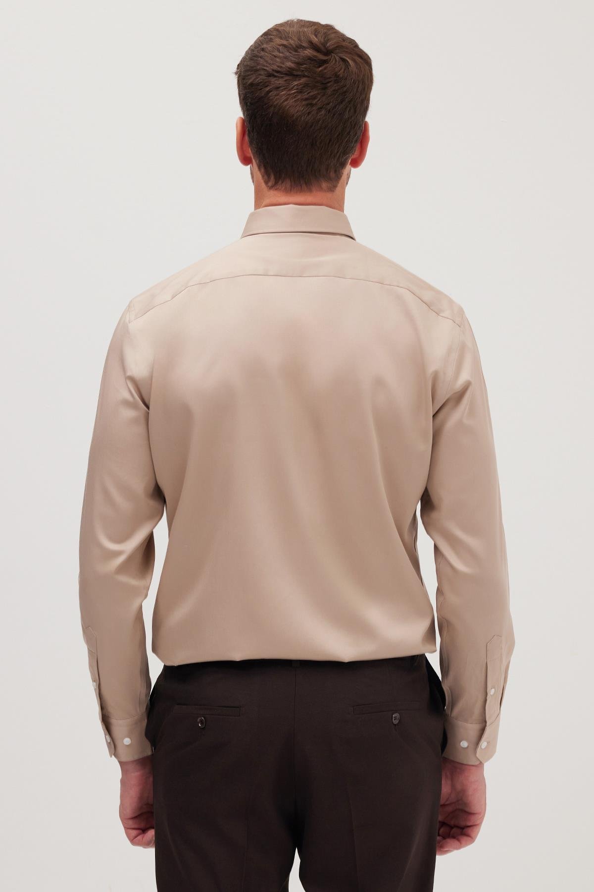 Slim Fit Bej Non-Iron %100 Pamuk Doğa Dostu Ekoteks Belgeli Ütü Gerektirmez Gömlek (DR240038-71)