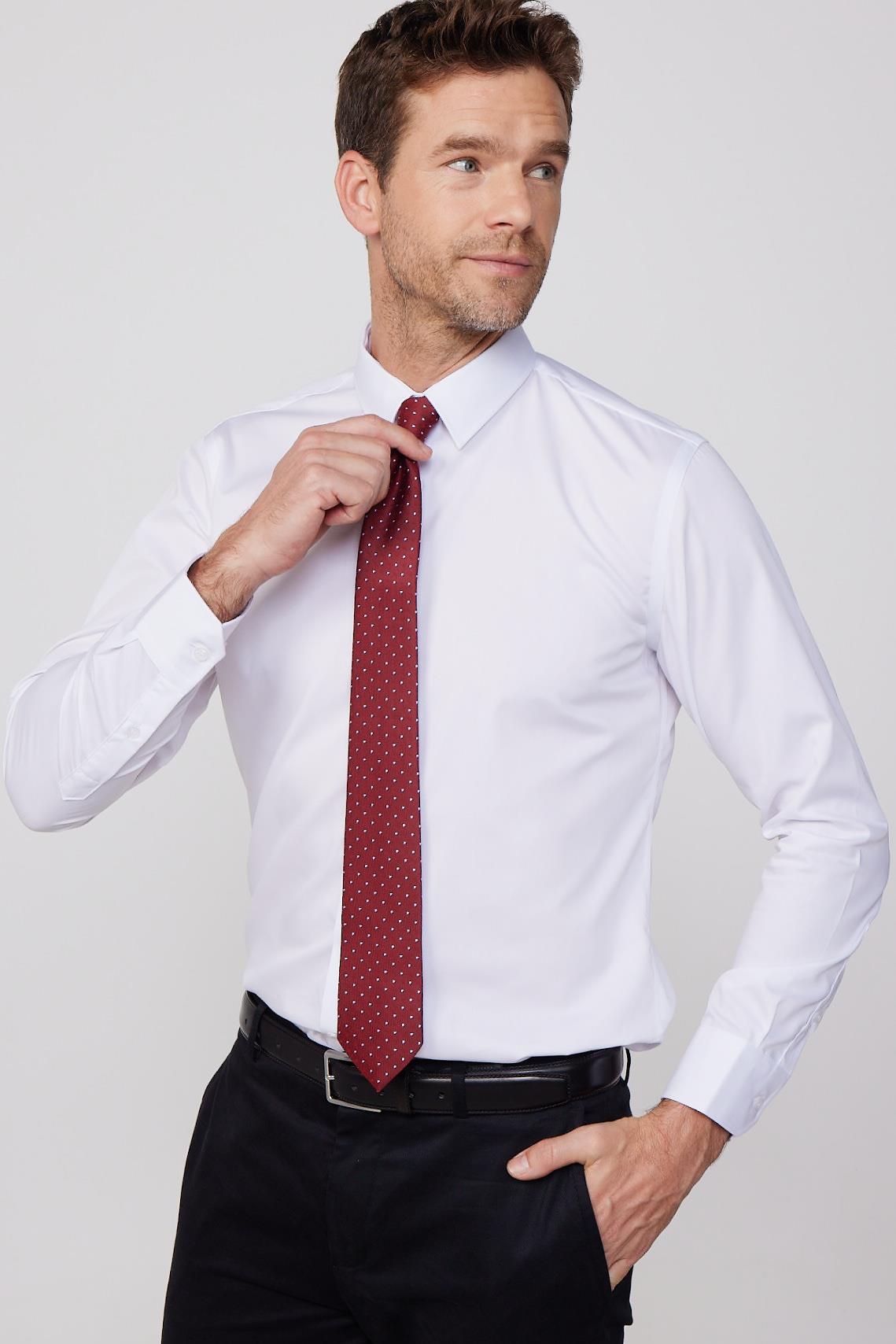 Slim Fit Beyaz Non-Iron %100 Pamuk Doğa Dostu Ekoteks Belgeli Ütü Gerektirmez Gömlek (DR240039-01)