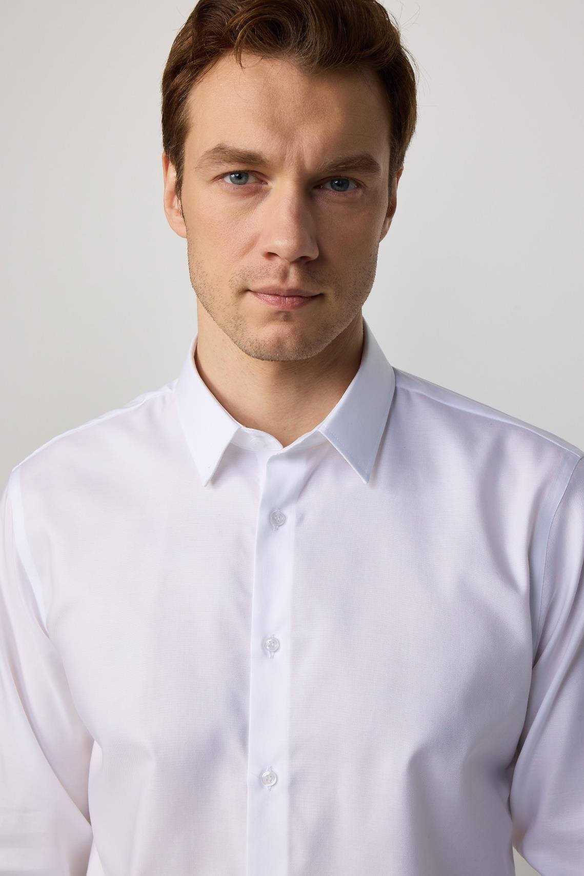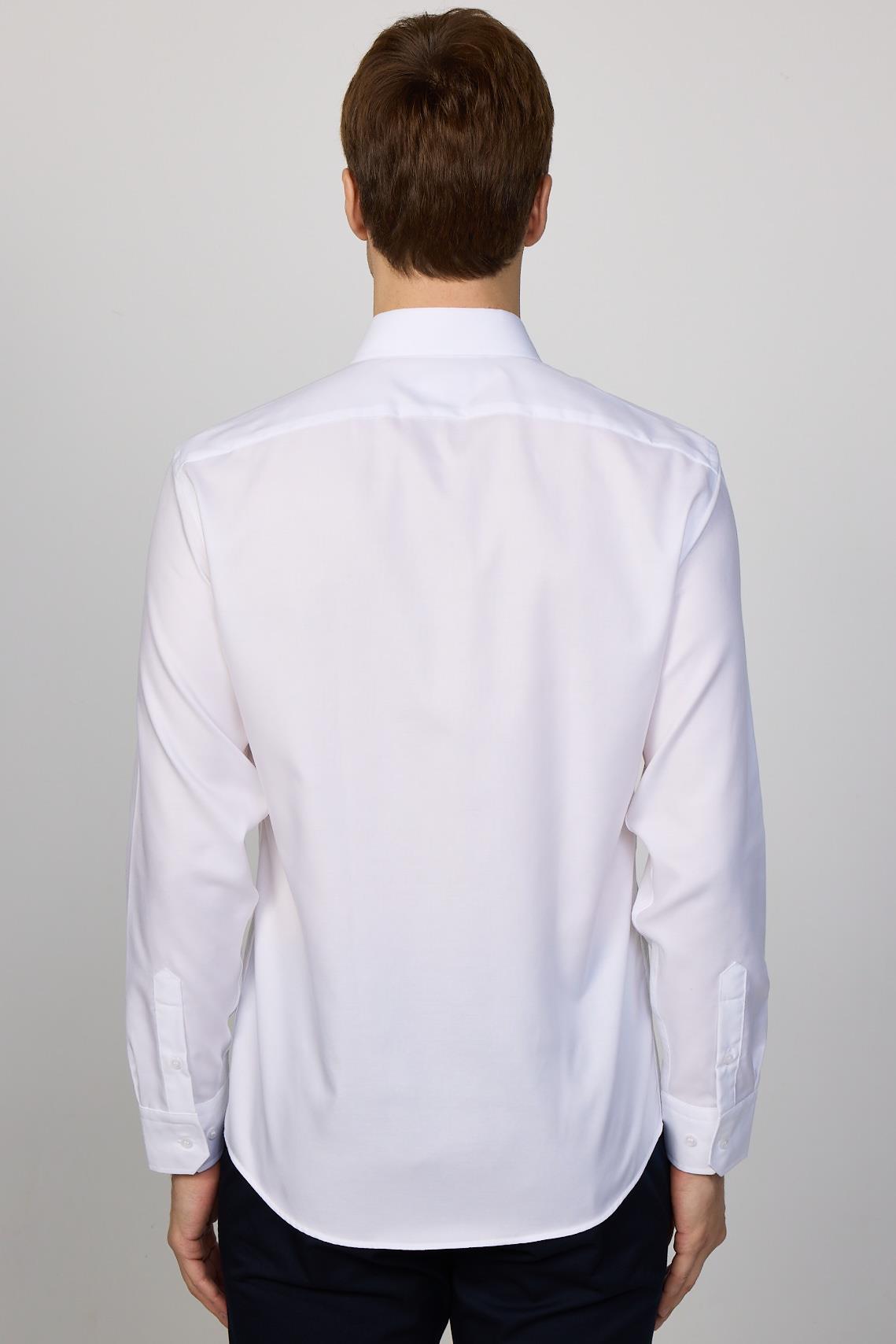 Slim Fit Beyaz Non-Iron %100 Pamuk Doğa Dostu Ekoteks Belgeli Ütü Gerektirmez Gömlek