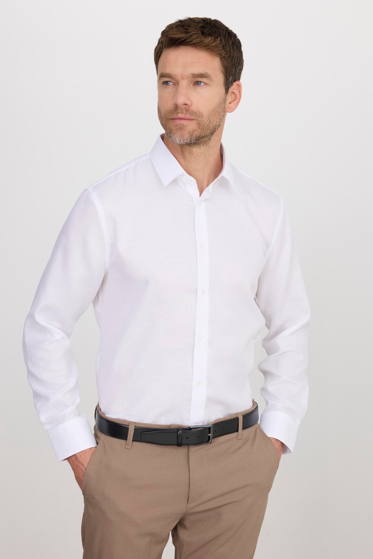 Slim Fit Beyaz Non-Iron %100 Pamuk Doğa Dostu Ekoteks Belgeli Ütü Gerektirmez Gömlek (DR240054-500)