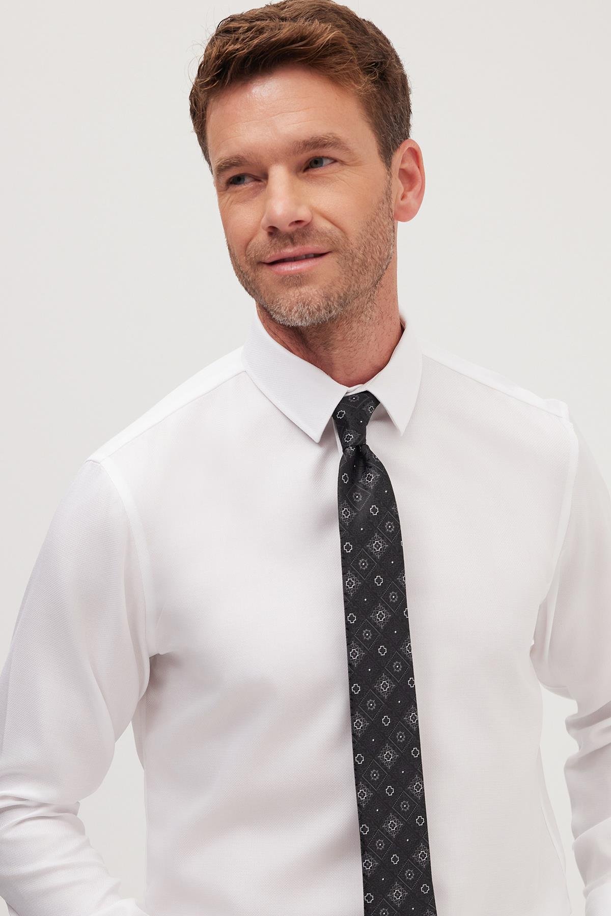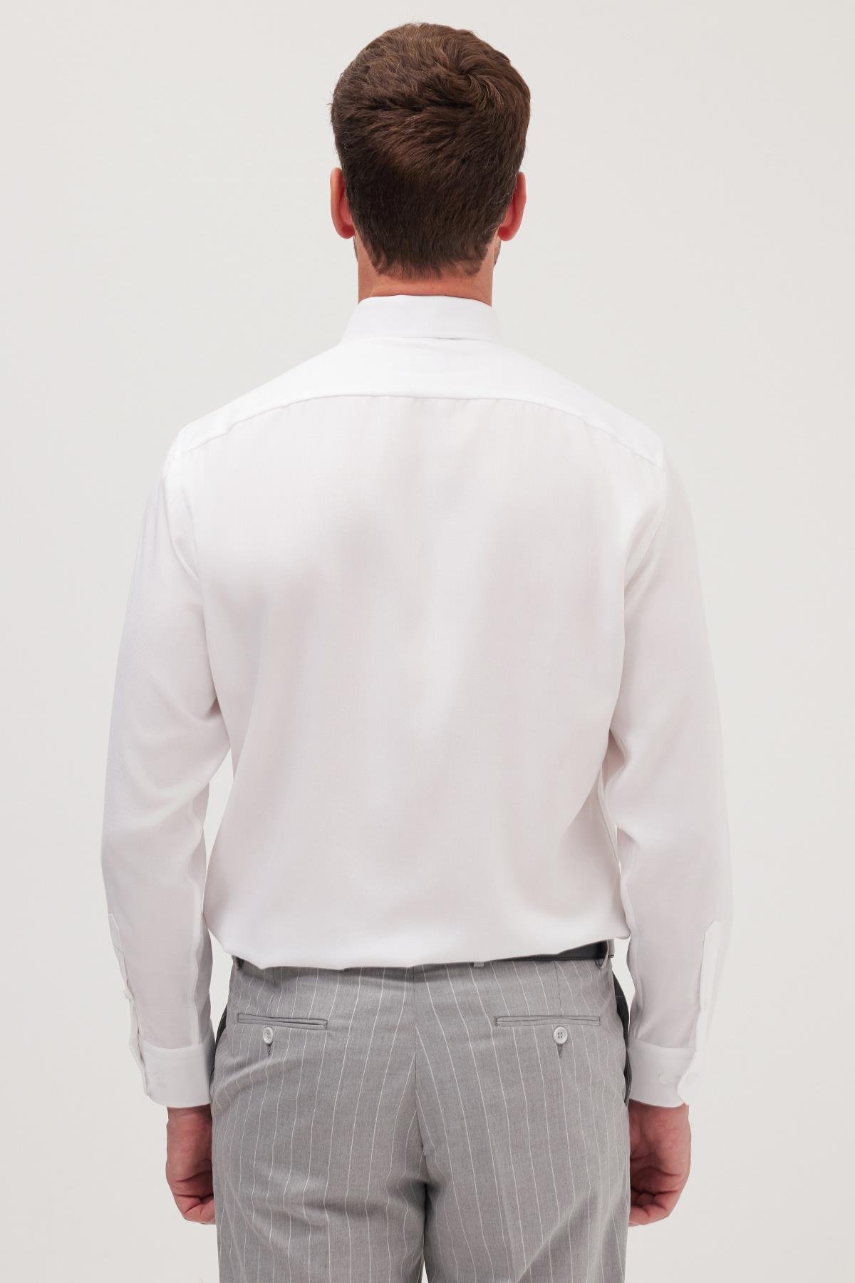 Slim Fit Beyaz Non-Iron %100 Pamuk Doğa Dostu Ekoteks Belgeli Ütü Gerektirmez Gömlek