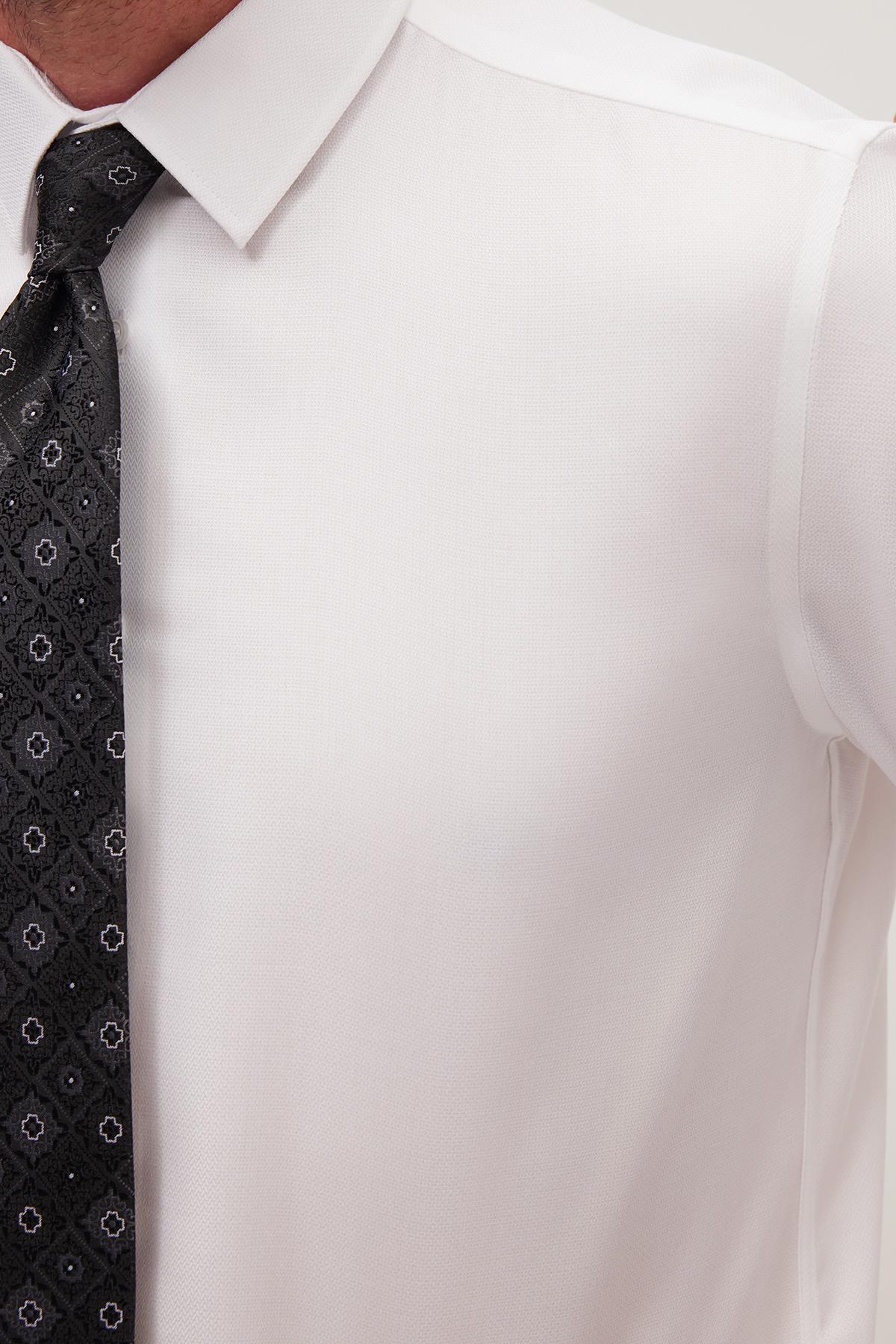 Slim Fit Beyaz Non-Iron %100 Pamuk Doğa Dostu Ekoteks Belgeli Ütü Gerektirmez Gömlek (DR240054-507)
