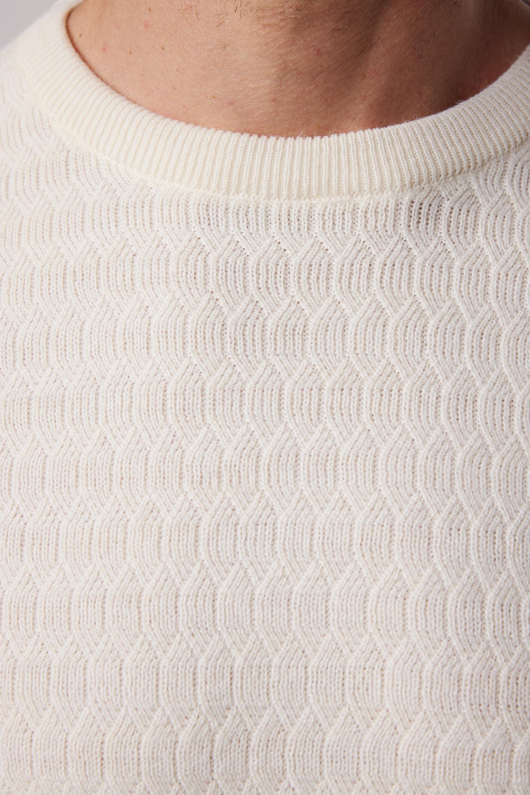 Erkek Slim Fit Bisiklet Yaka Kendinden Desenli Ekru Triko Kazak (KZ240001-84)