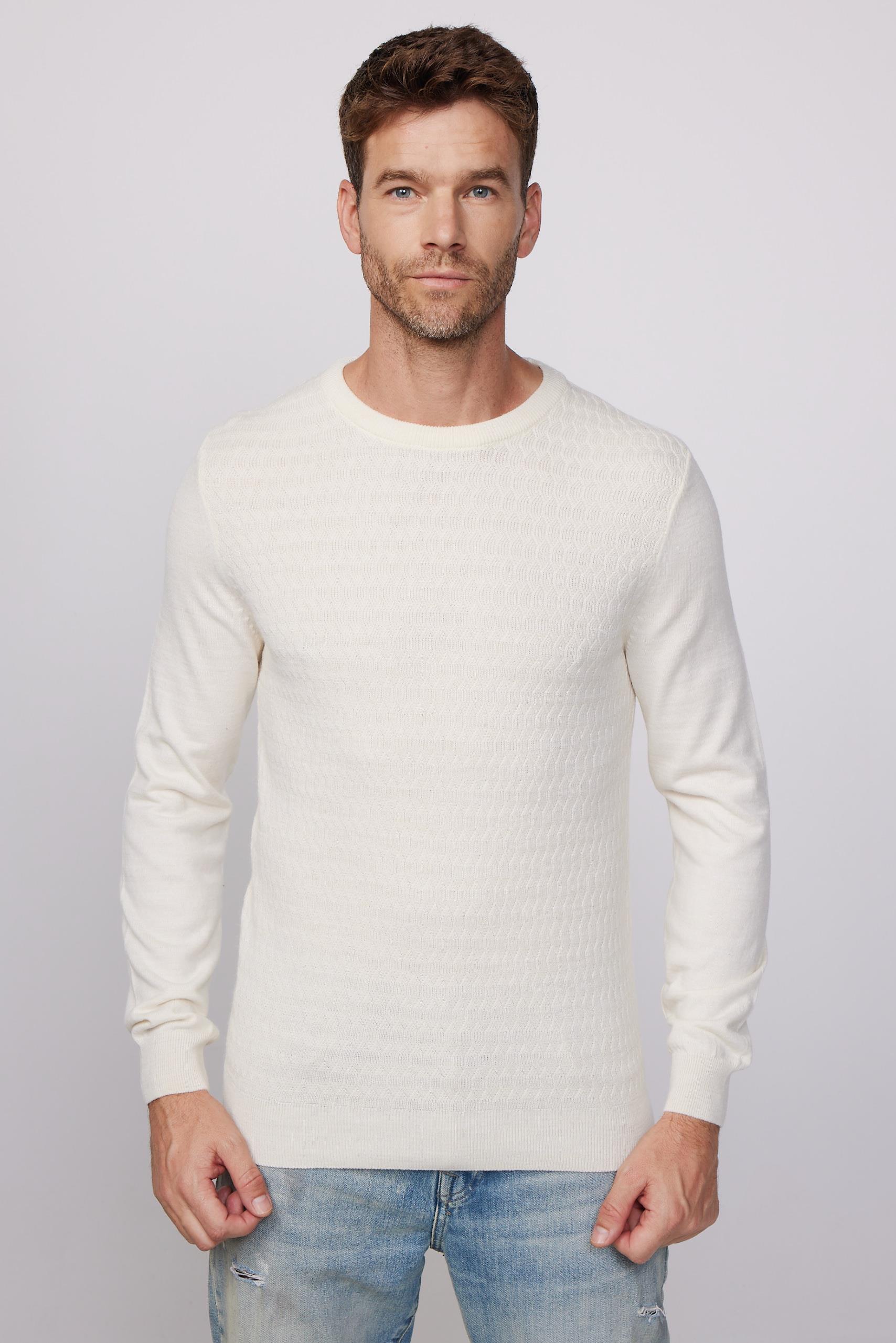 Erkek Slim Fit Bisiklet Yaka Kendinden Desenli Ekru Triko Kazak