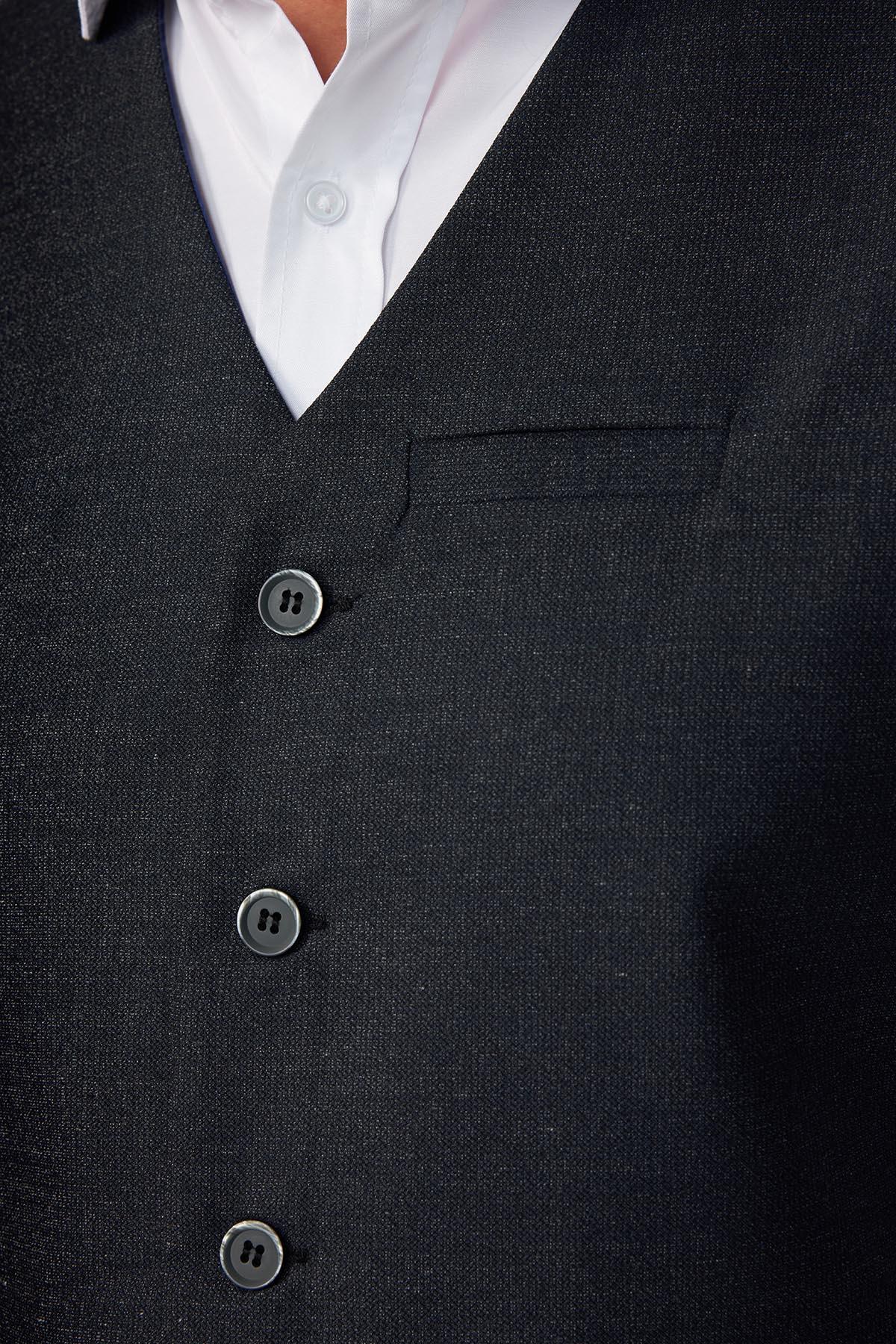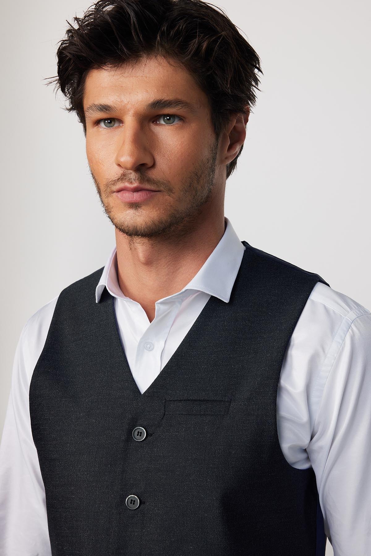 Slim Fit Dar Kesim 3 Cepli 4 Mevsim Düz Gri Erkek Yelek