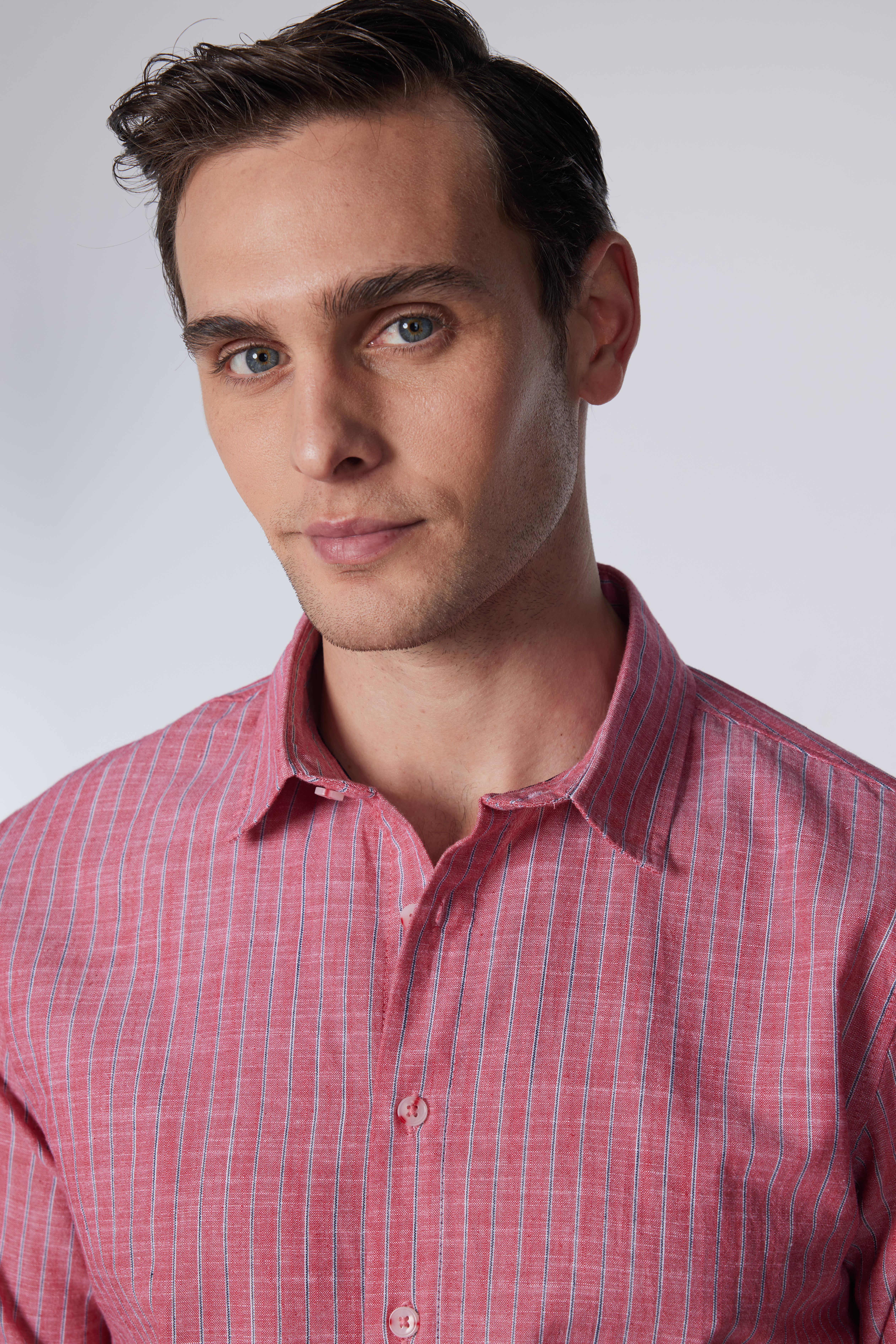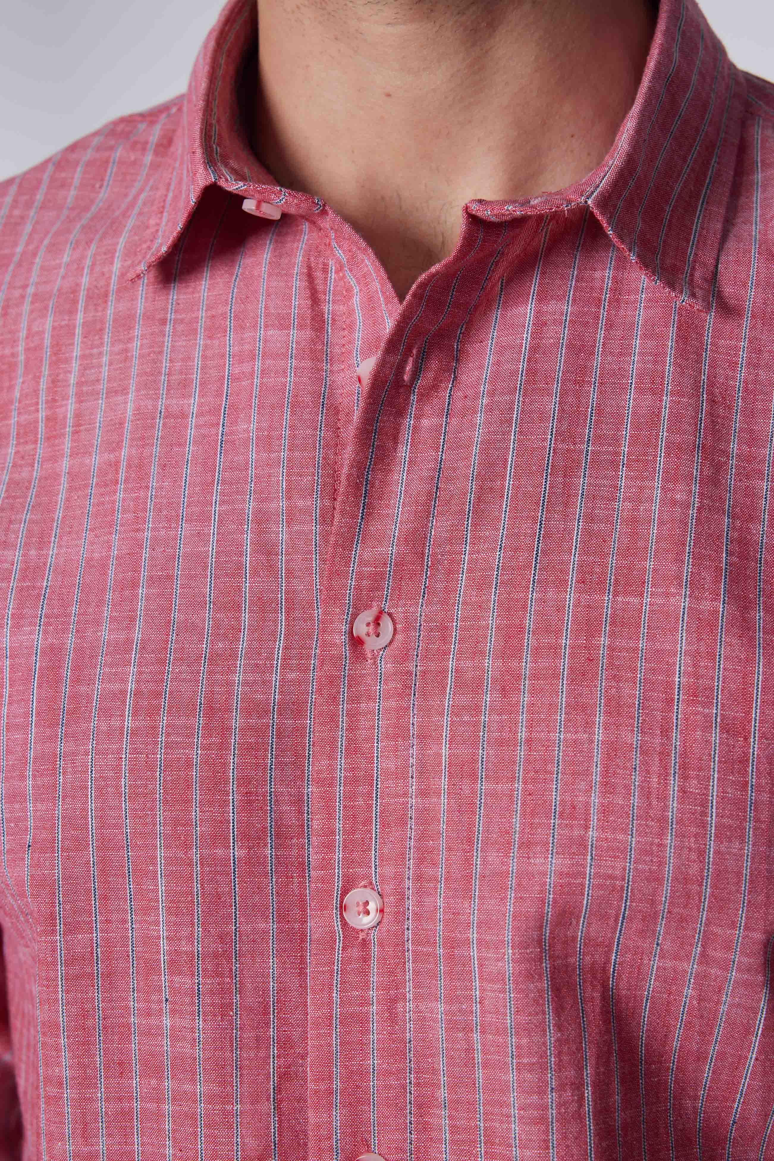 Erkek Slim Fit Dar Kesim Uzun Kollu %100 Pamuk Keten Doku Çizgili Gömlek