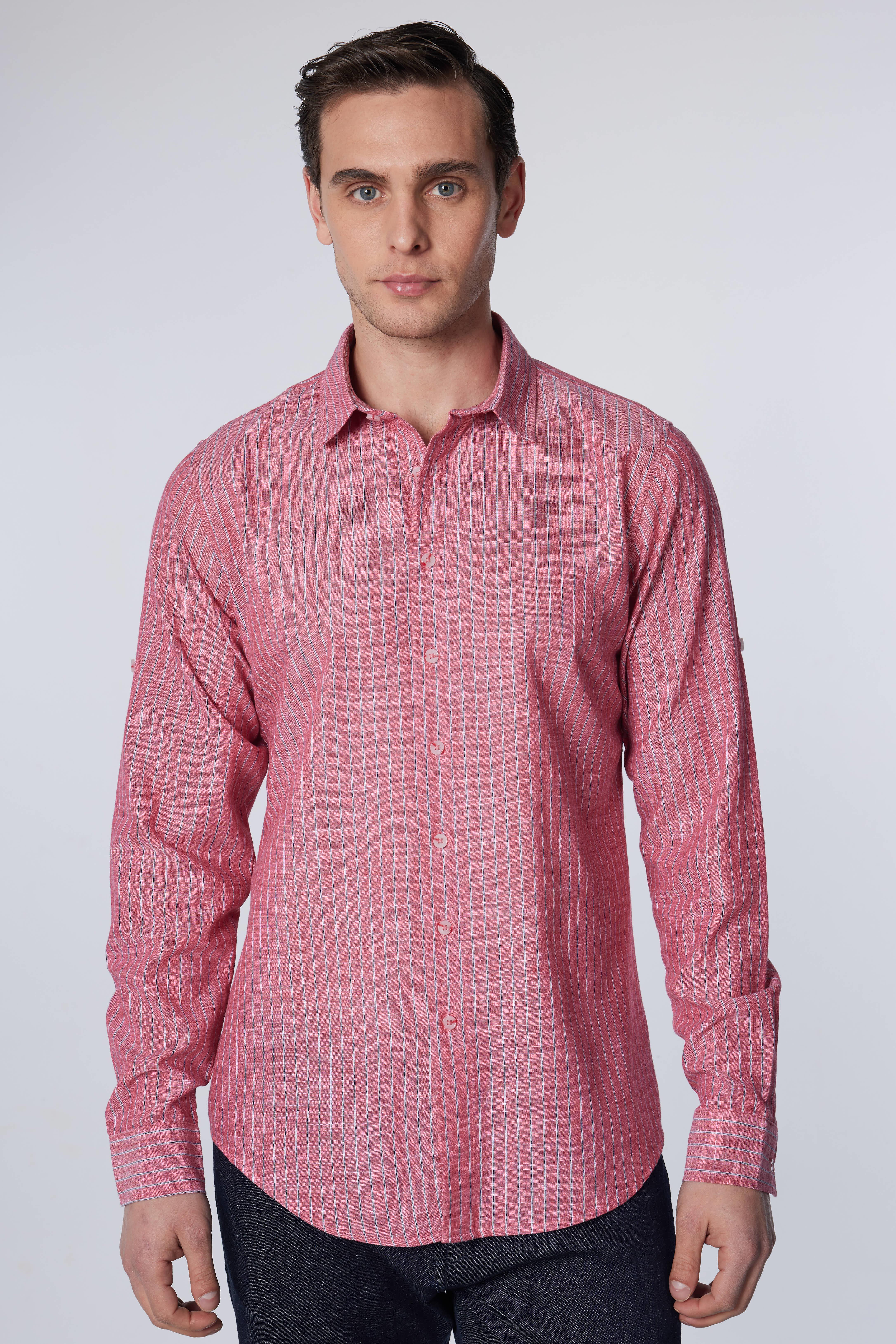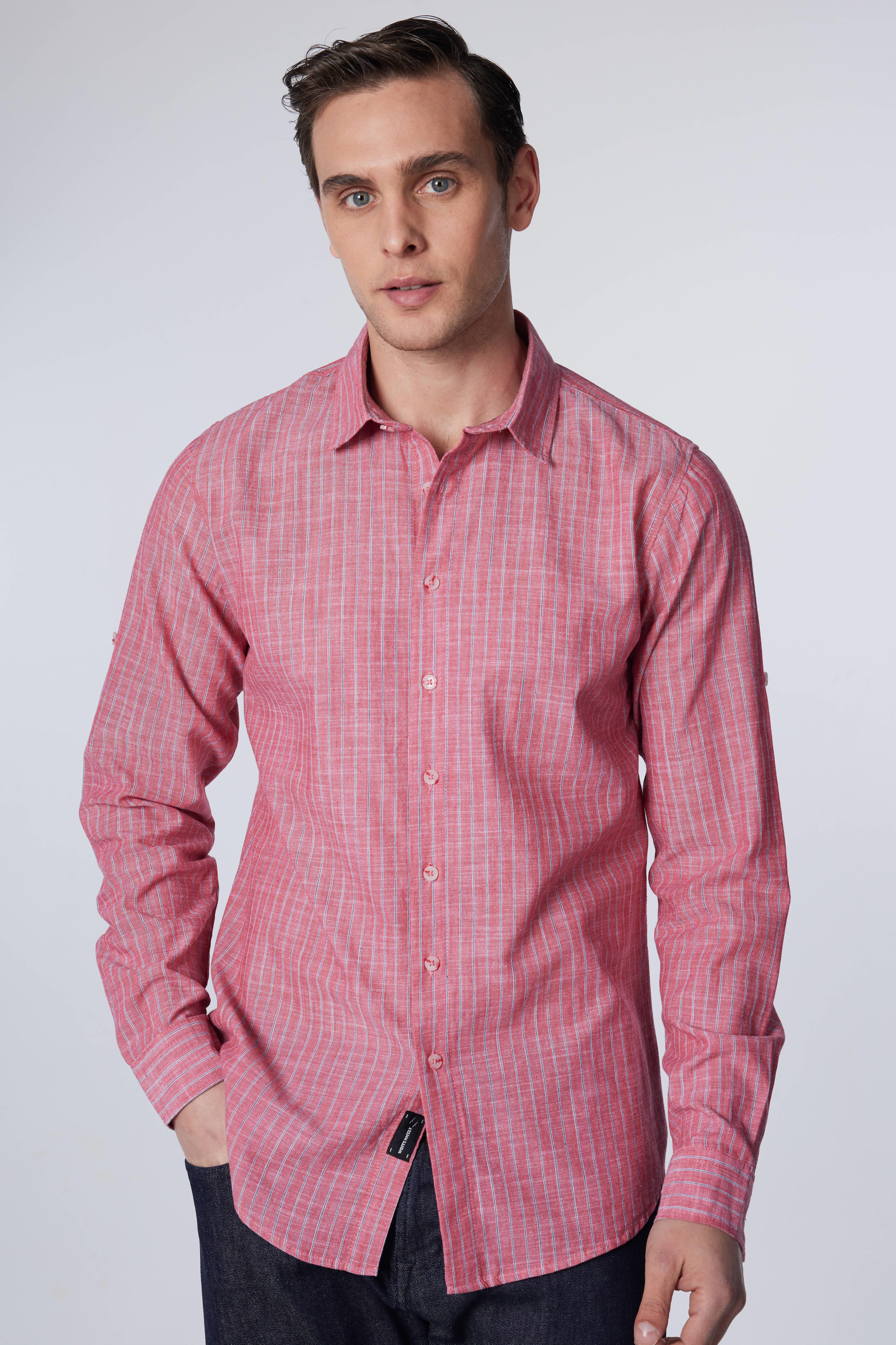 SLIM FIT LONG SLV STRIPE LINEN LUDA GÖMLEK