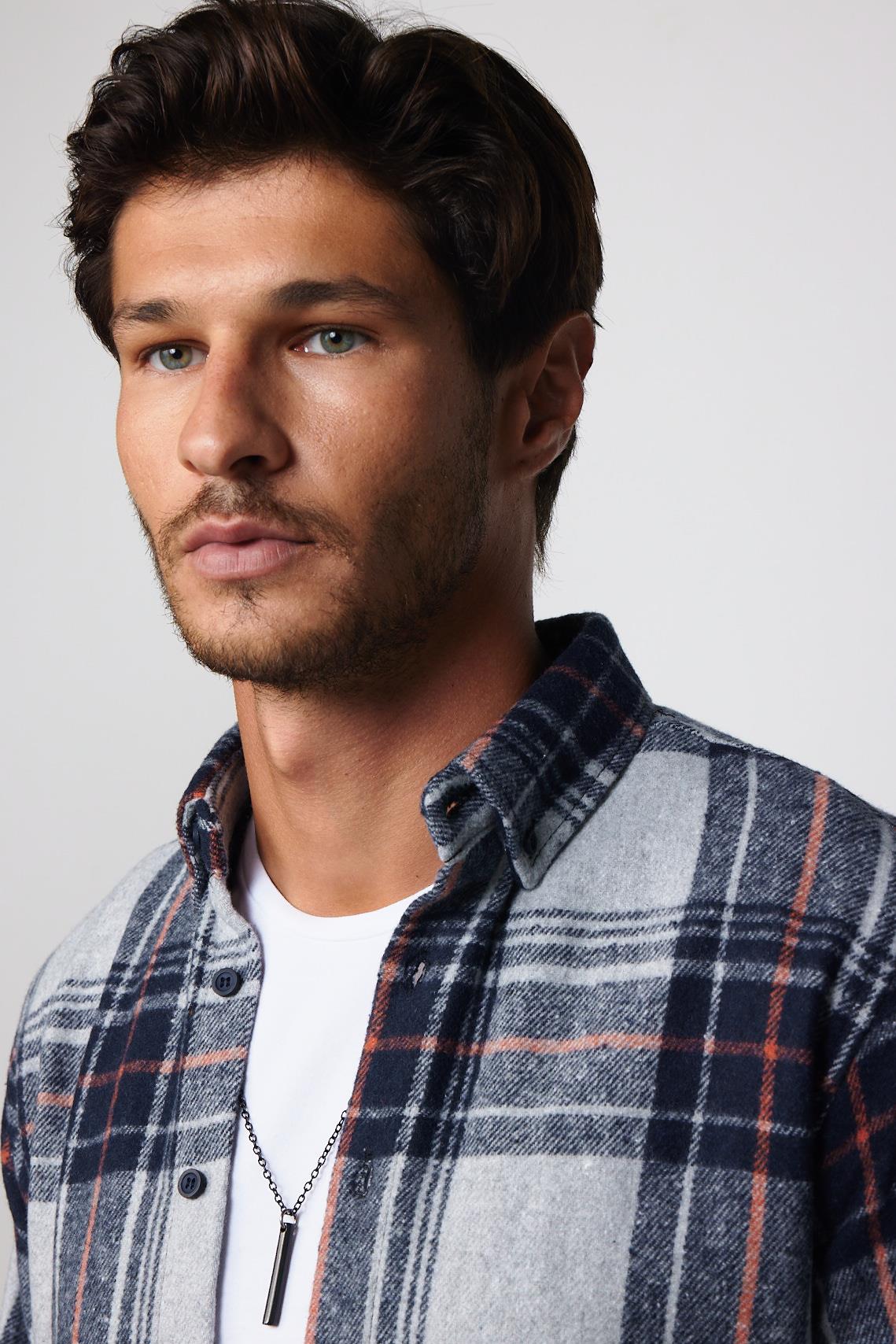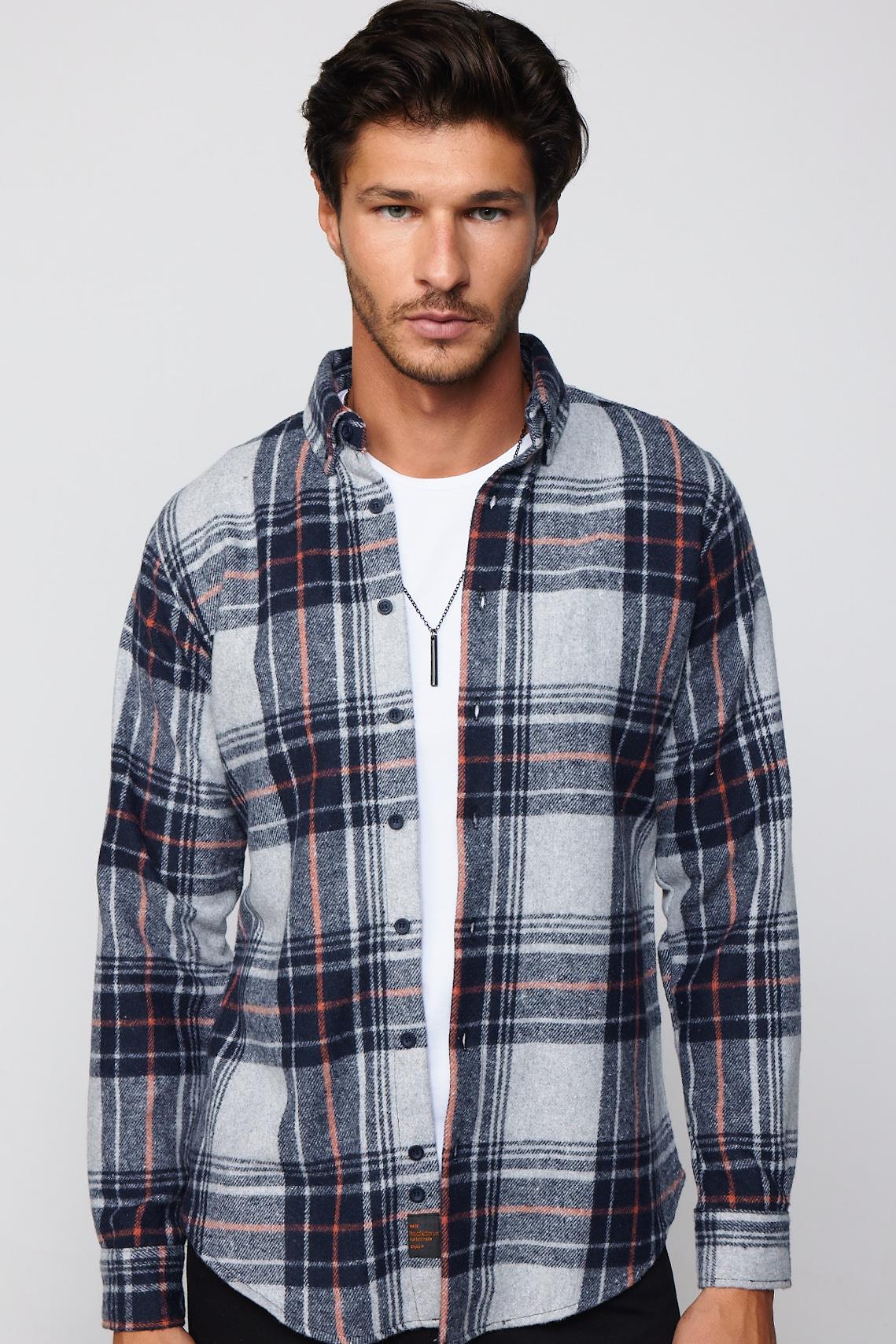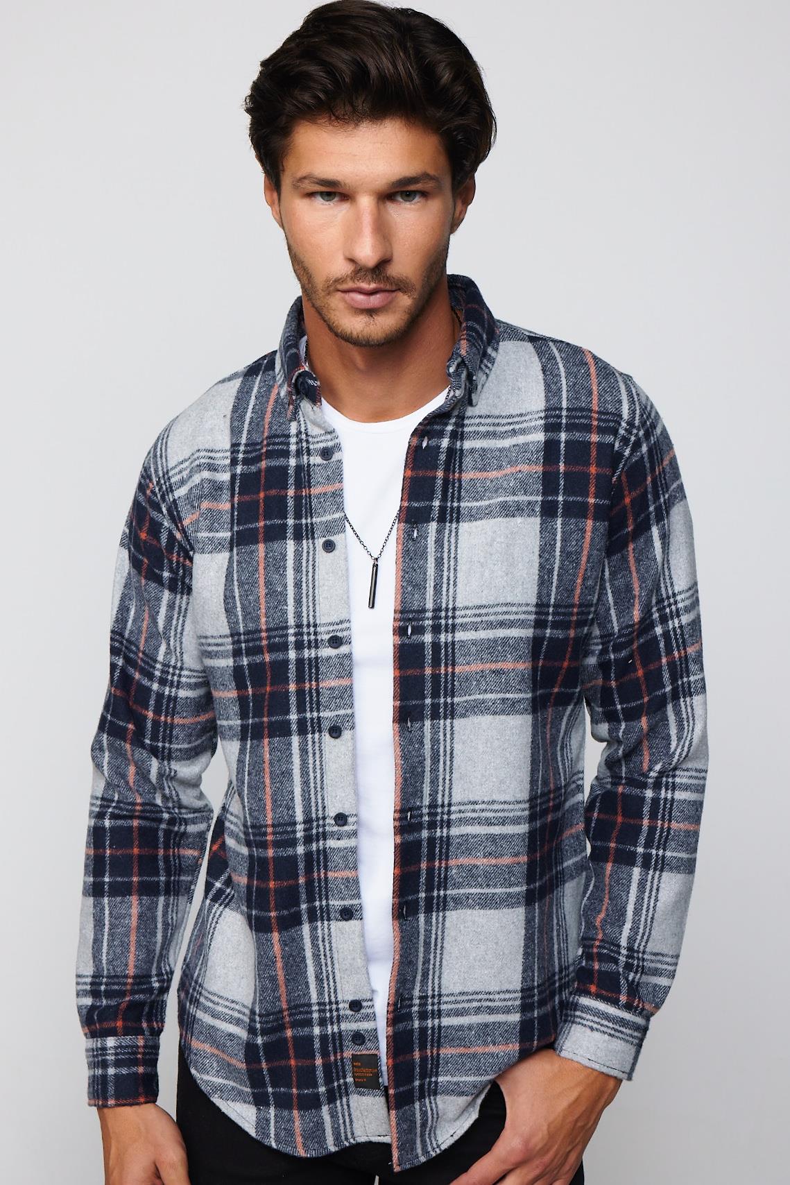 Erkek Slim Fit Dar Kesim Uzun Kollu Pamuklu Kareli Kışlık Oduncu Düğmeli Yaka Gömlek (DR240033-780)
