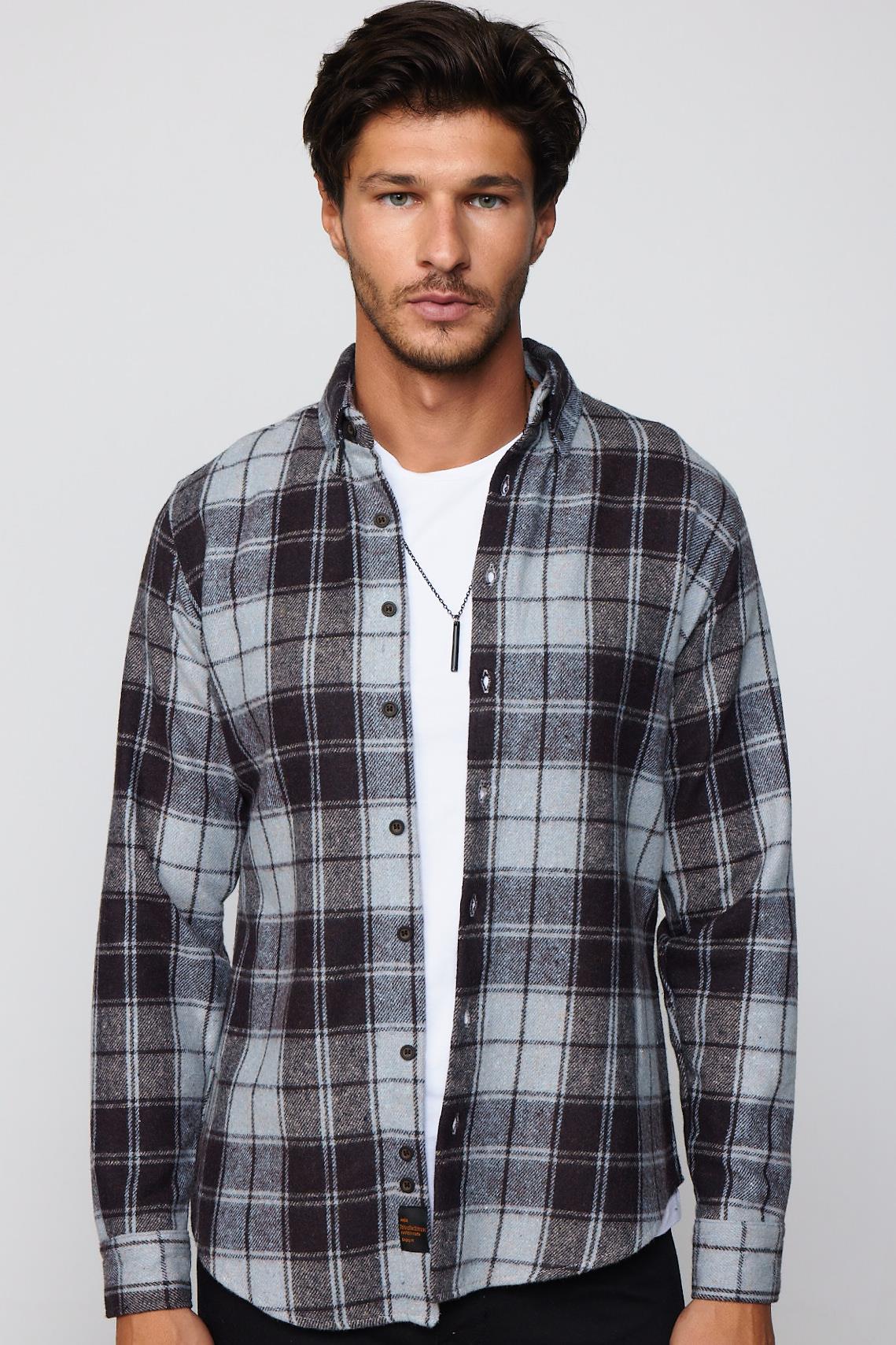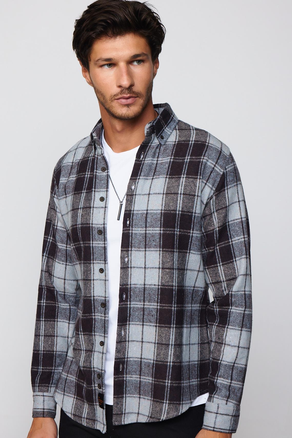 Erkek Slim Fit Dar Kesim Uzun Kollu Pamuklu Kareli Kışlık Oduncu Düğmeli Yaka Gömlek (DR240033-4024)