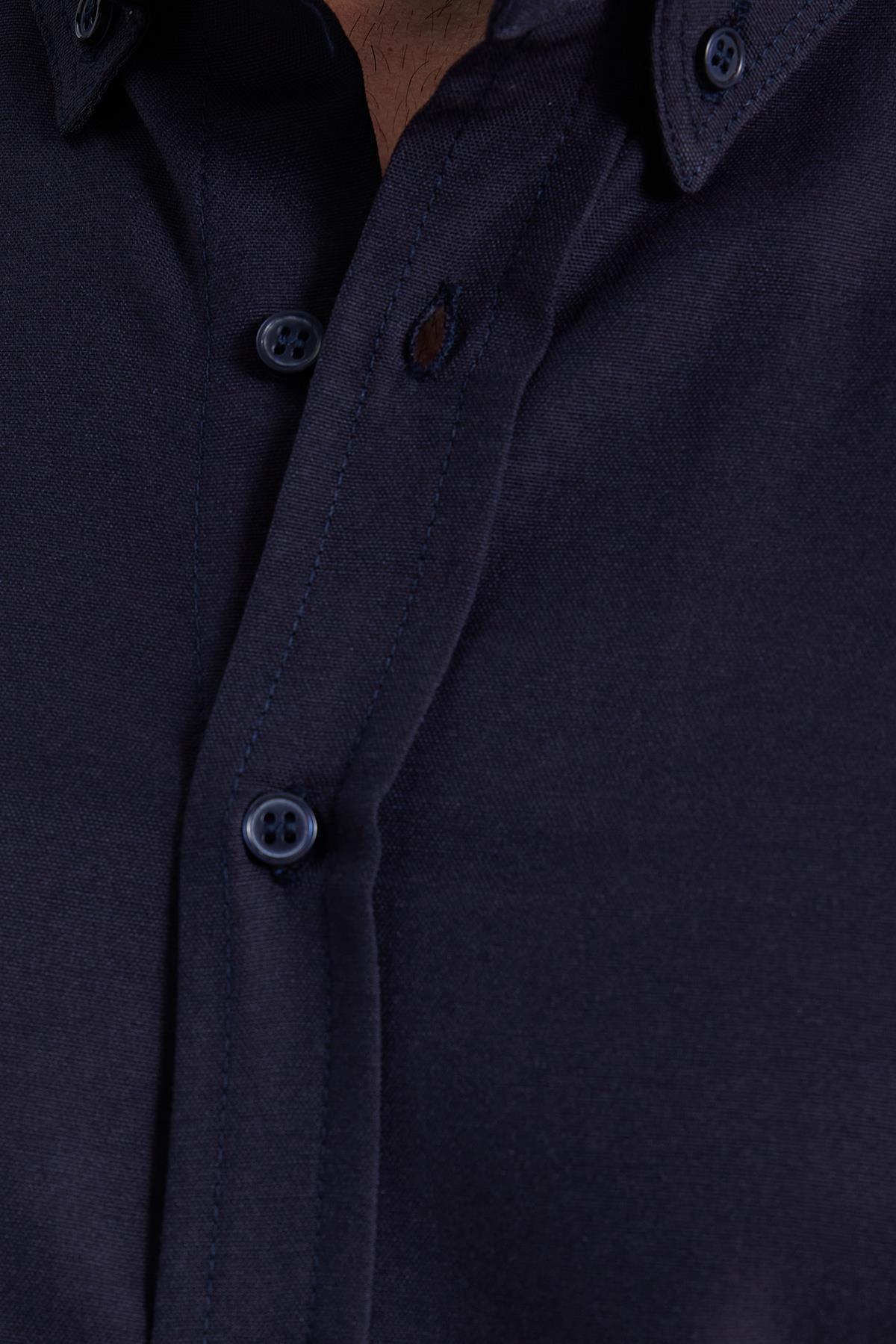 Erkek Slim Fit Dar Kesim Uzun Kollu Pamuklu Oxford Doku Kolay Ütü Lacivert Düğmeli Yaka Gömlek