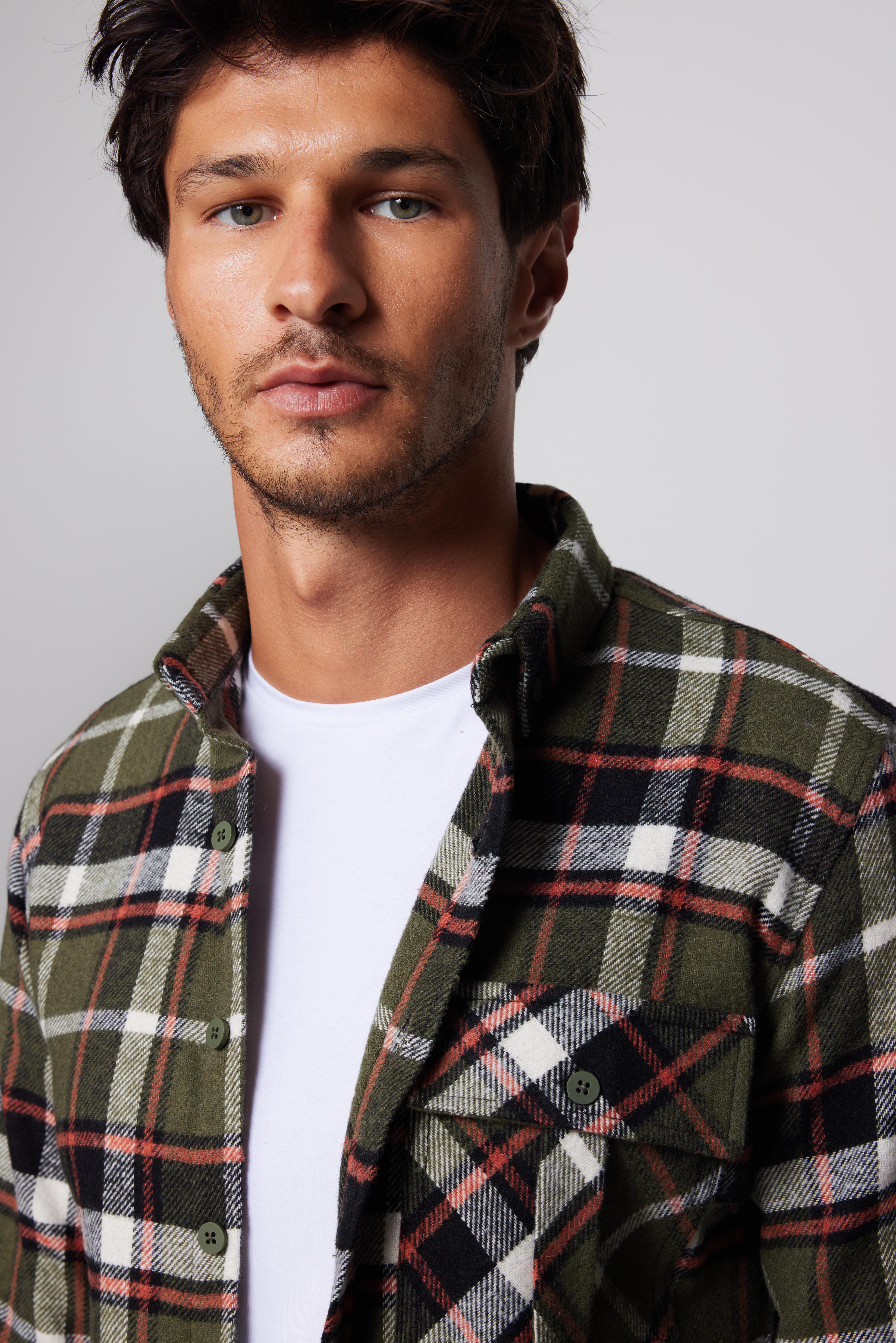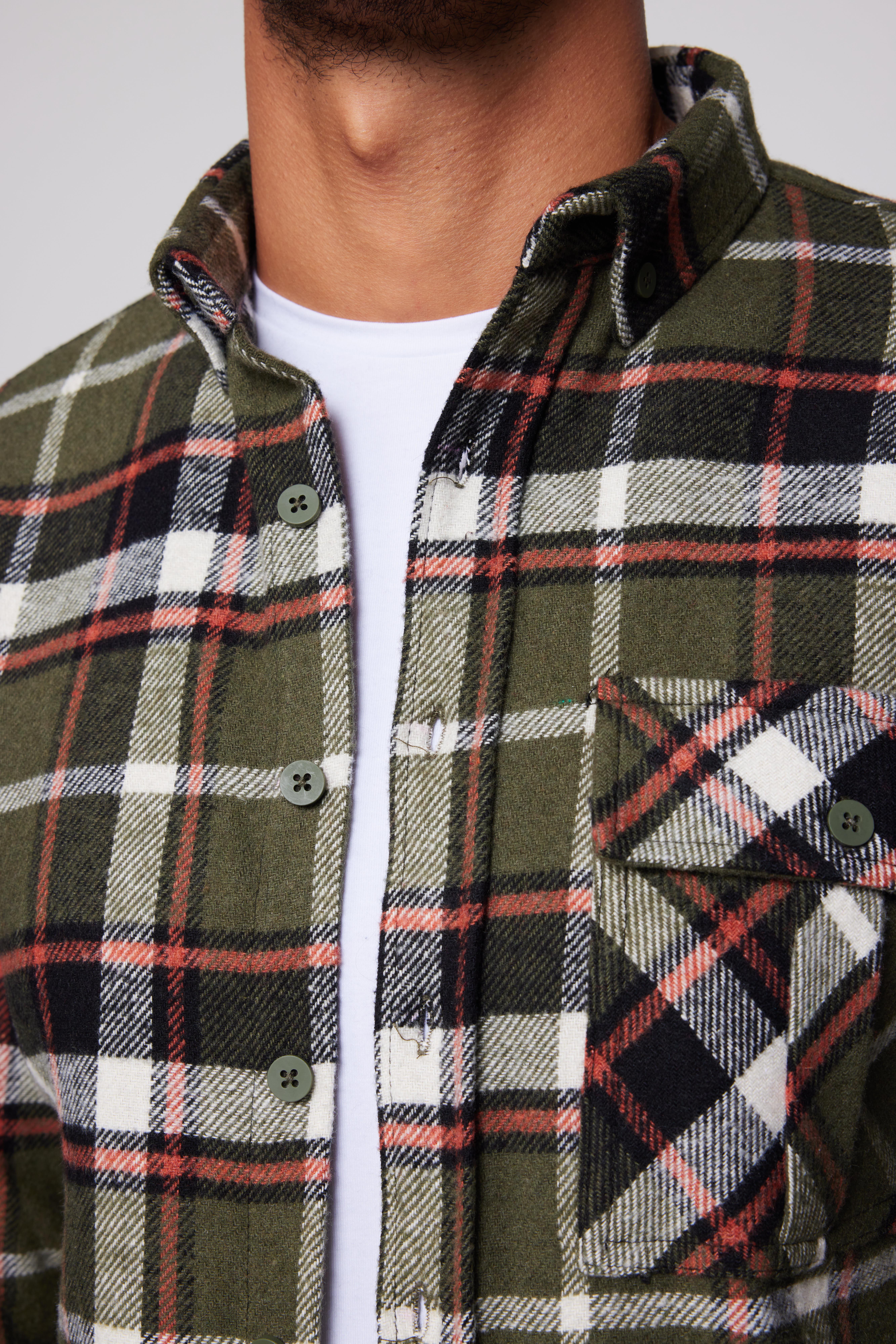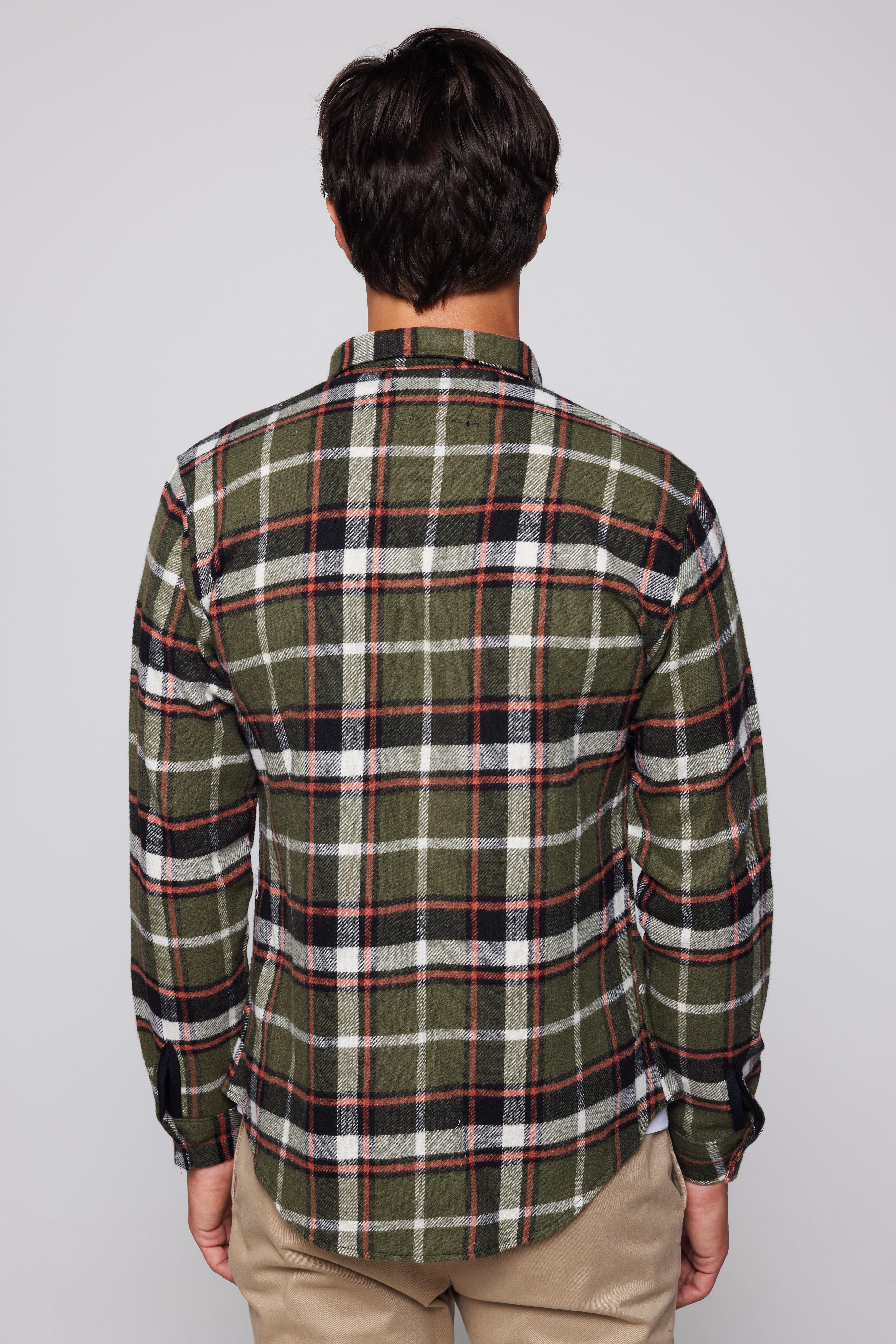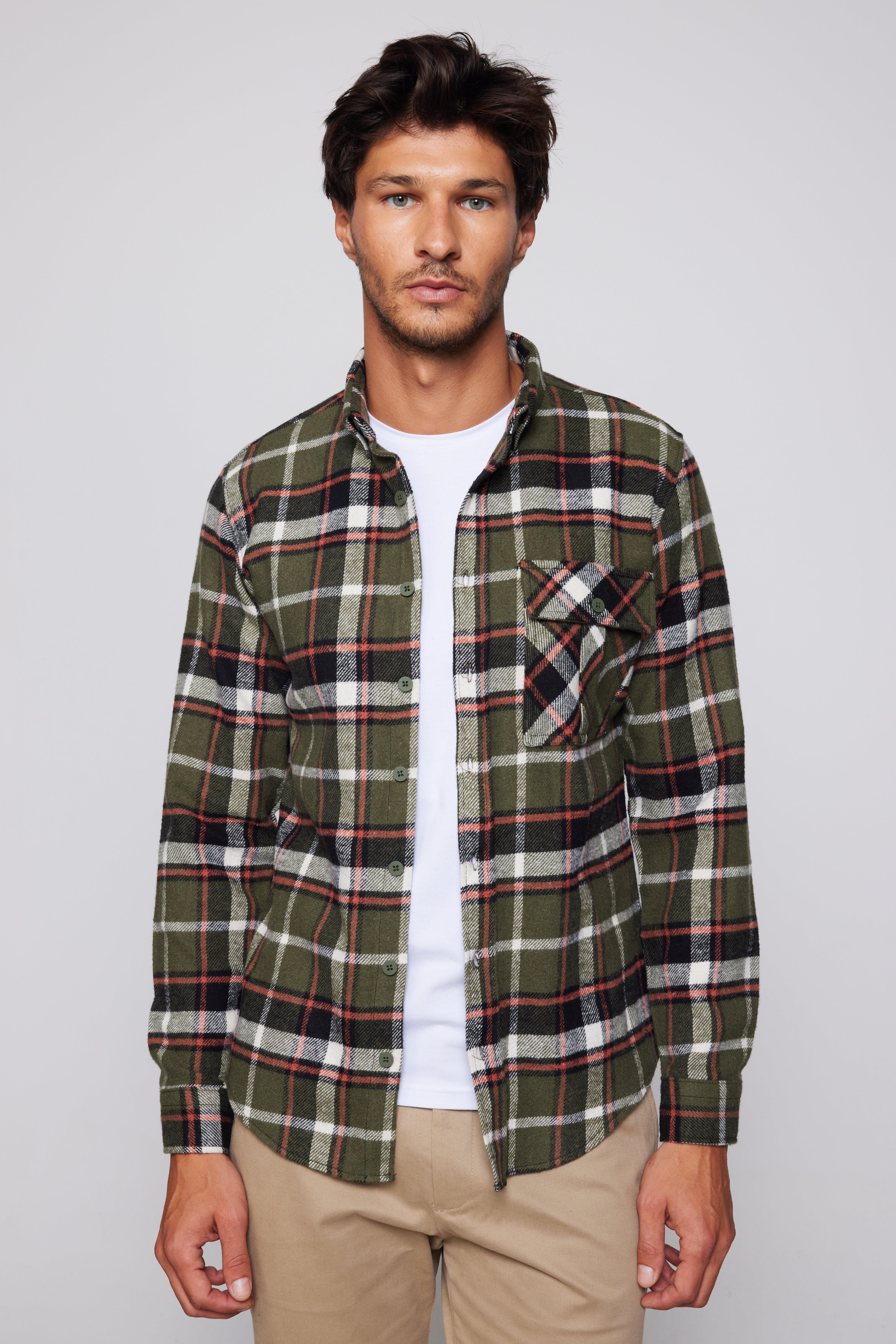 Erkek Slim Fit Dar Kesim Uzun Kollu Kareli Tek Cepli Kışlık Oduncu Düğmeli Yaka Gömlek