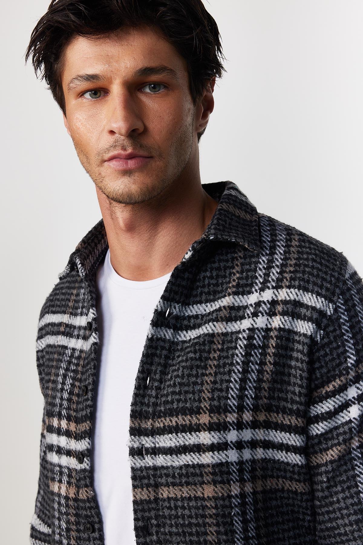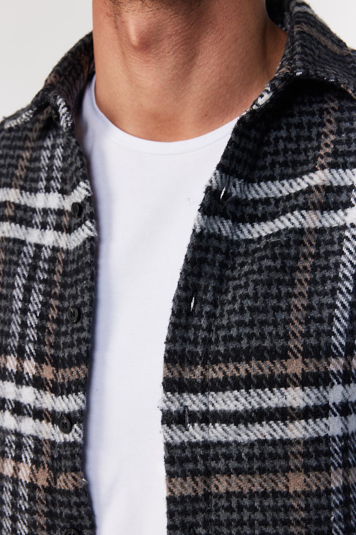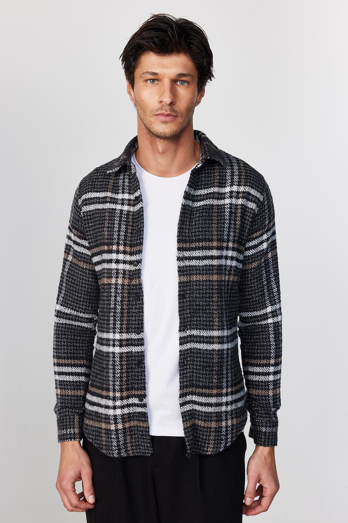 Erkek Slim Fit Dar Kesim Uzun Kollu Kareli Kışlık Oduncu Gömlek (DR240057-8400)