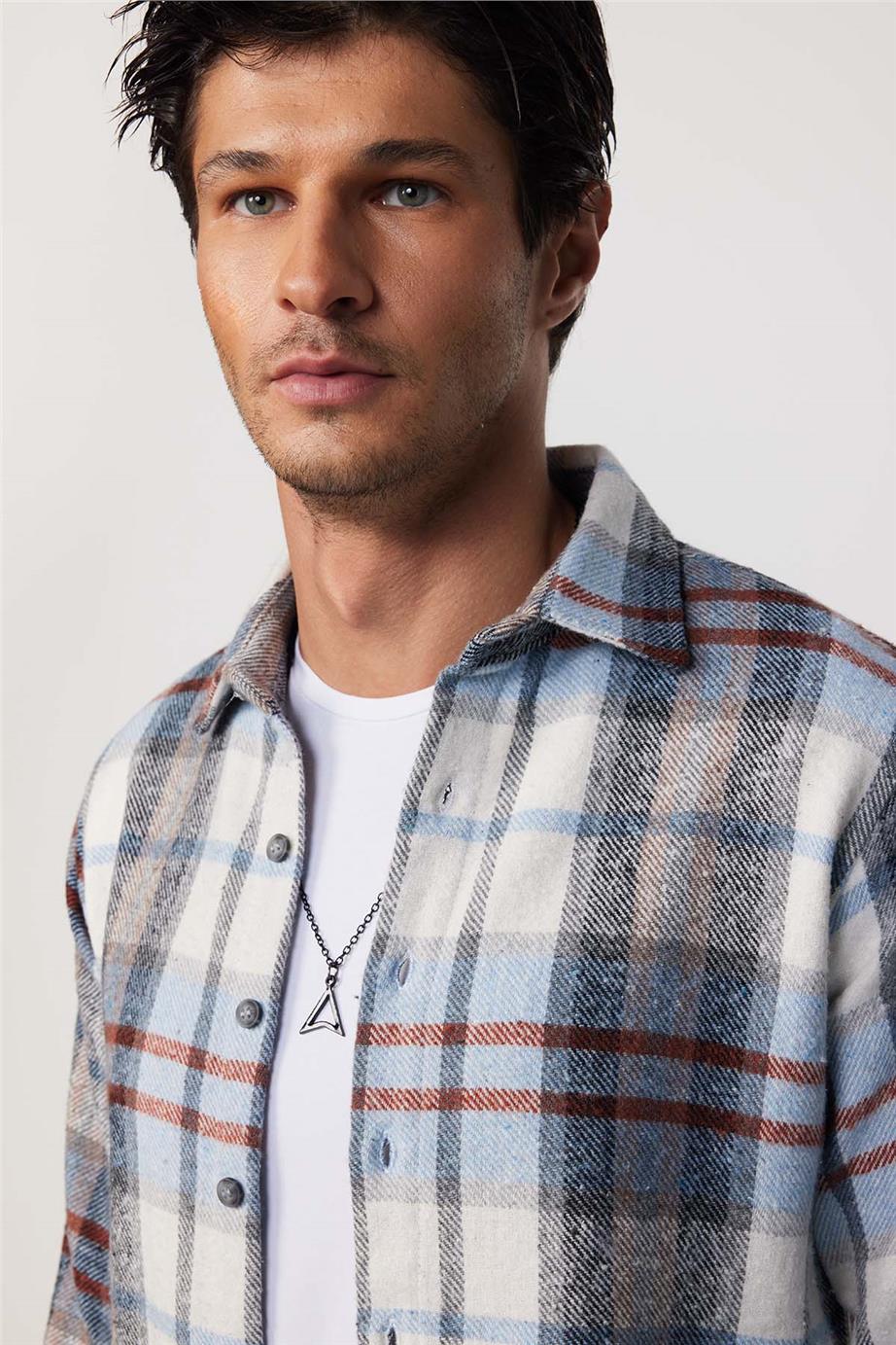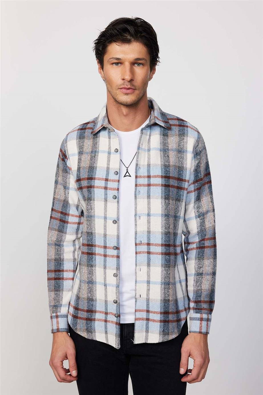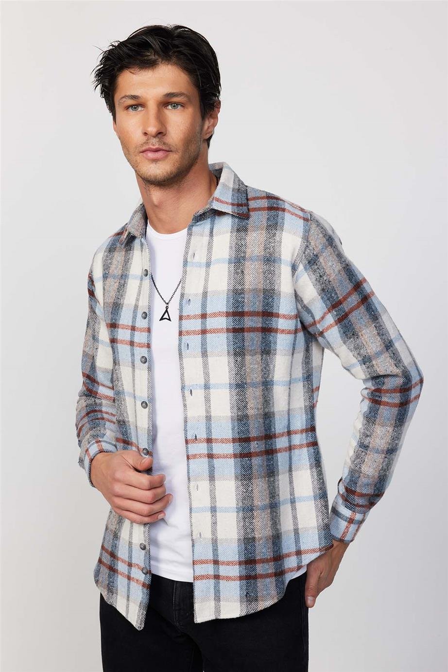 Erkek Slim Fit Dar Kesim Uzun Kollu Kareli Kışlık Oduncu Gömlek (DR240045-3114)