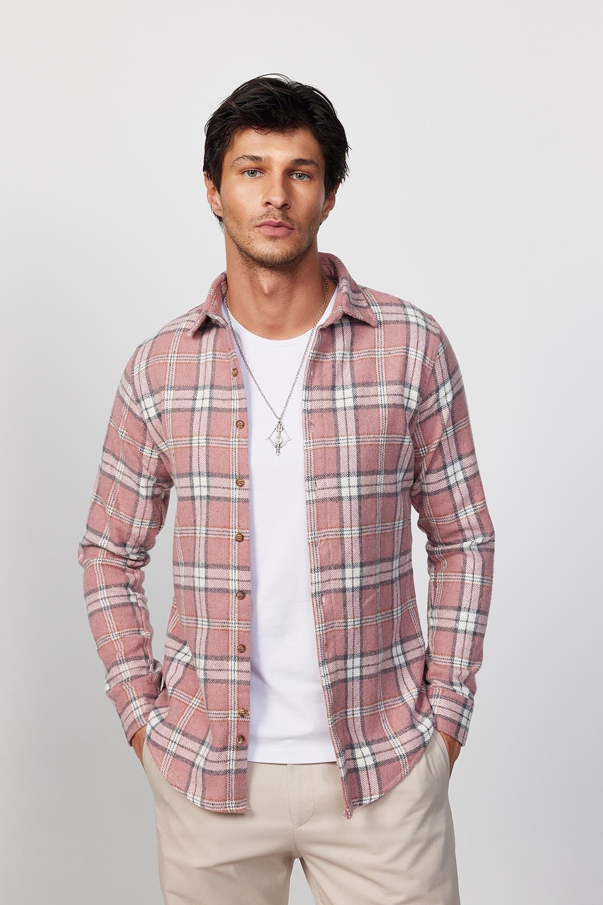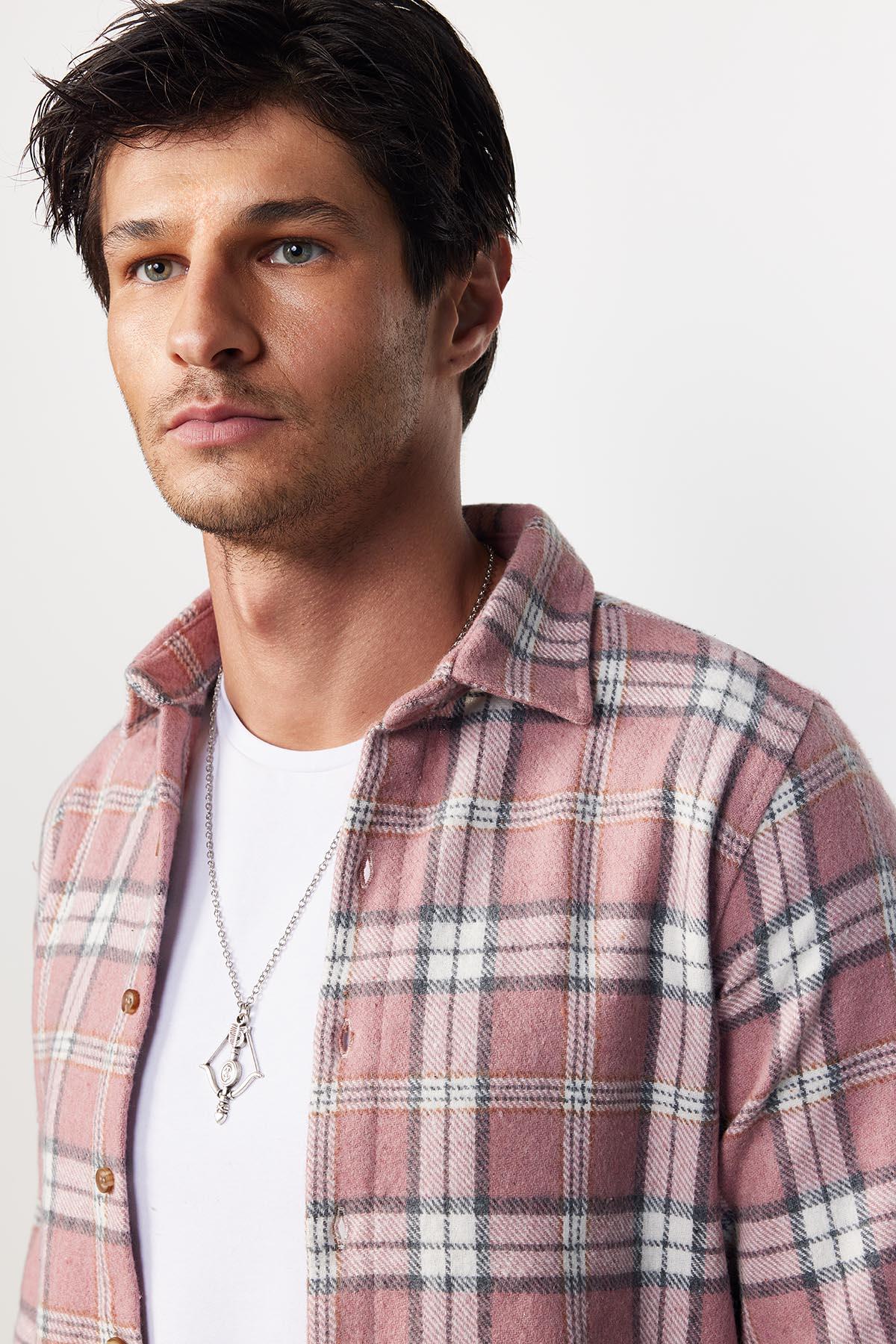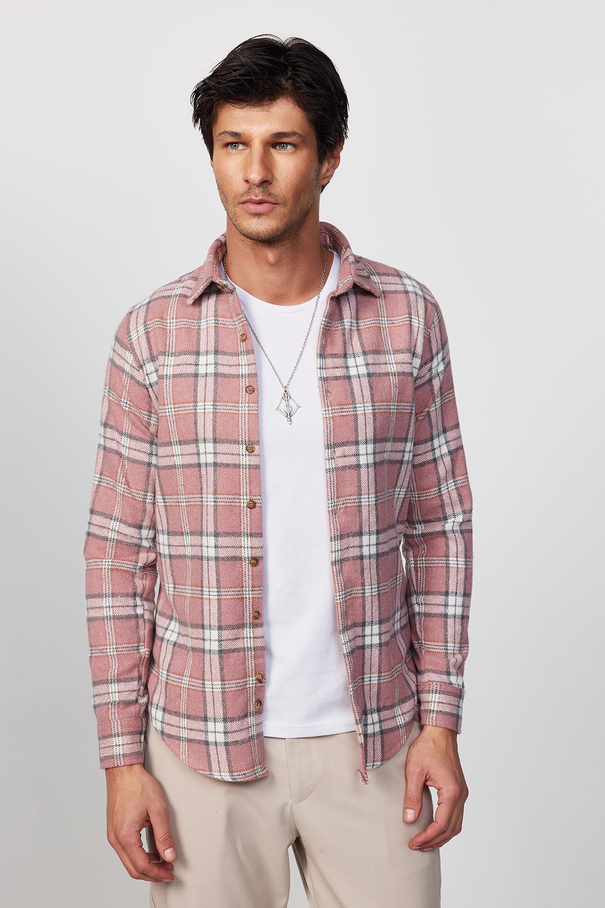 Erkek Slim Fit Dar Kesim Uzun Kollu Kareli Kışlık Oduncu Gömlek (DR240043-4253)