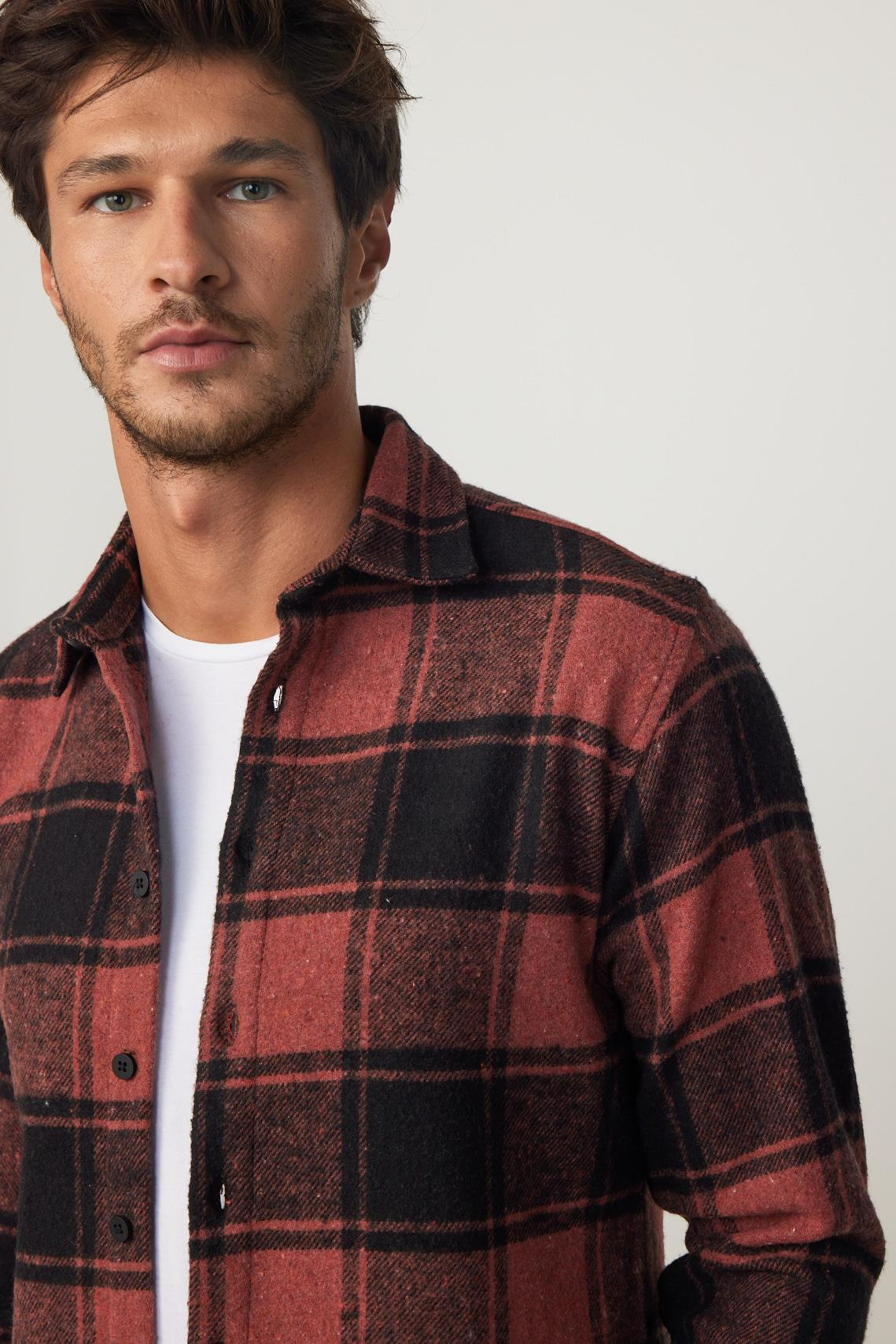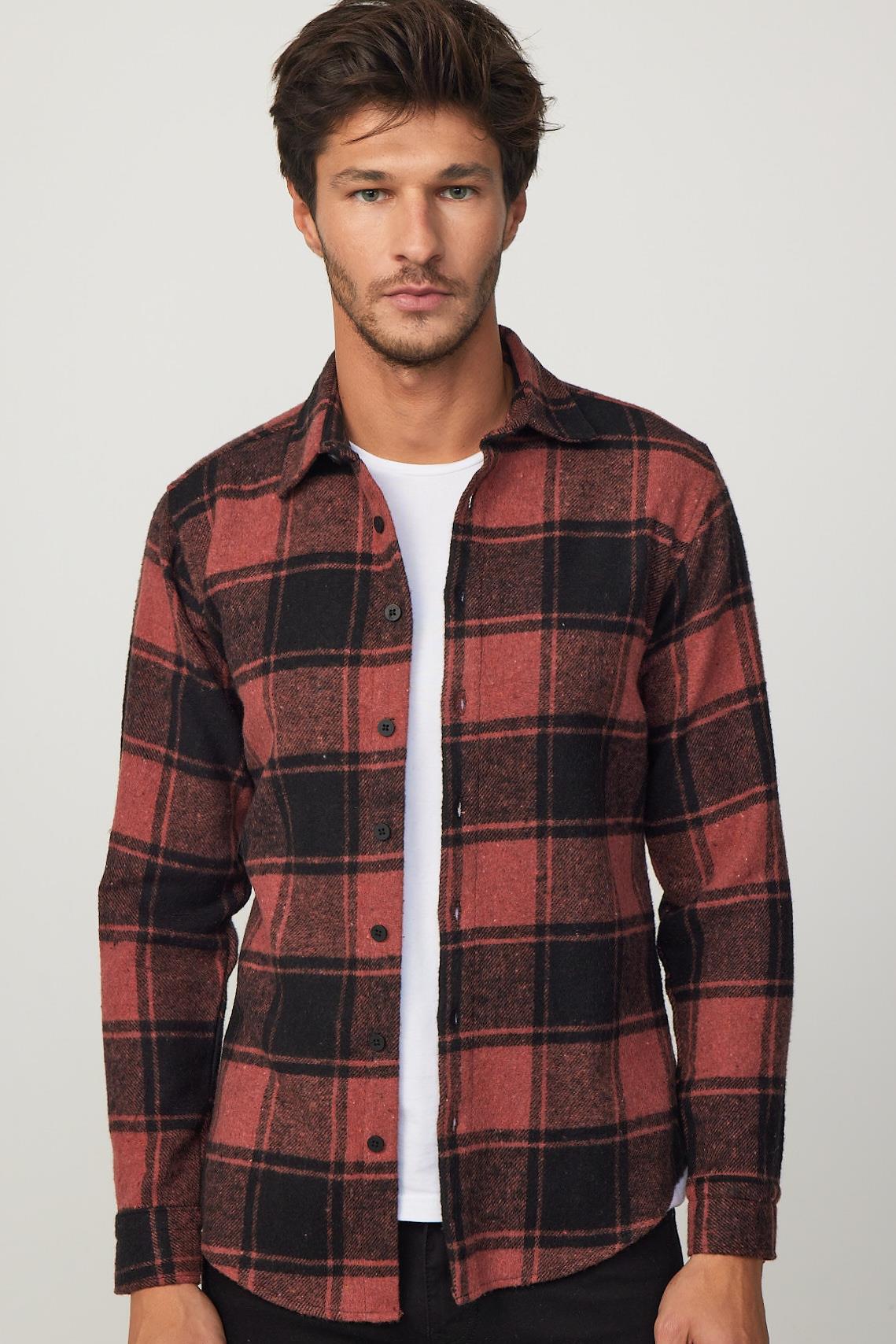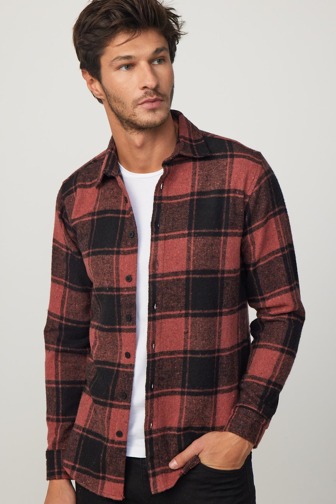 Erkek Slim Fit Dar Kesim Uzun Kollu Kareli Kışlık Oduncu Gömlek (DR240043-7500)